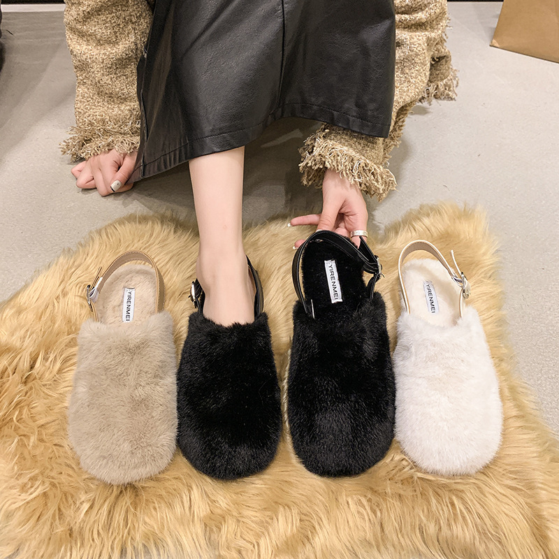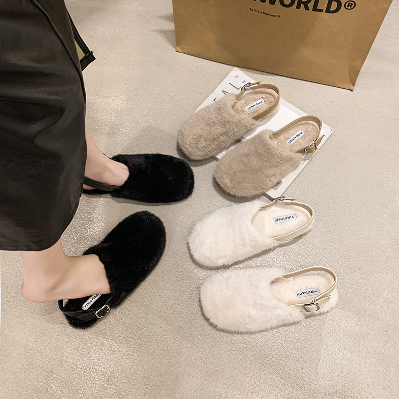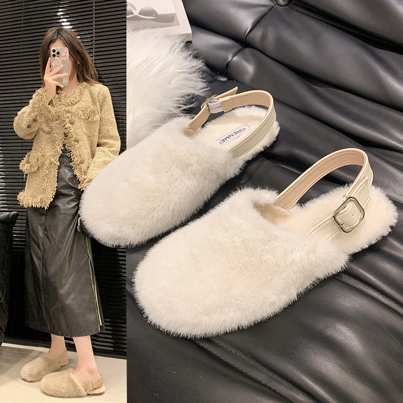 마오 마오 슬리퍼 여성 의상 가을과 겨울 2024 새로운 유행 올 매치 리어 트립 플랫 편안한 봉제 면화 슬리퍼