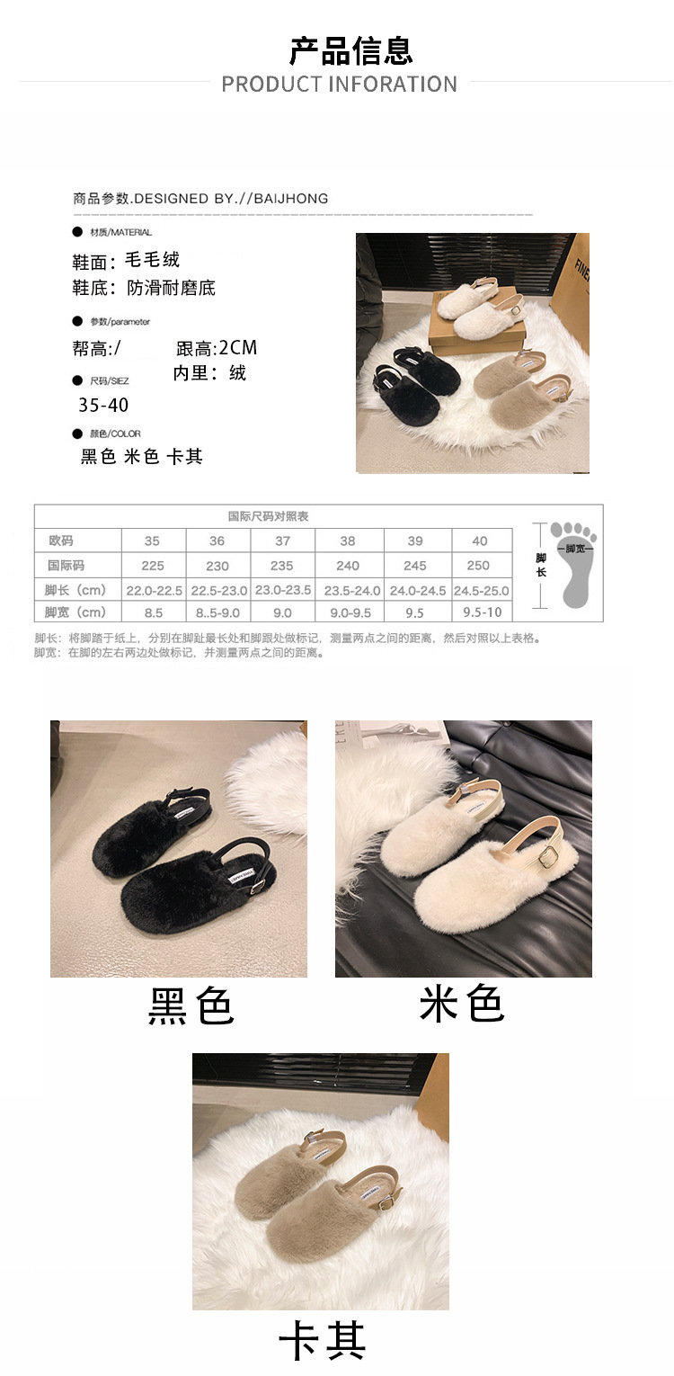 마오 마오 슬리퍼 여성 의상 가을과 겨울 2024 새로운 유행 올 매치 리어 트립 플랫 편안한 봉제 면화 슬리퍼스토어 가기
