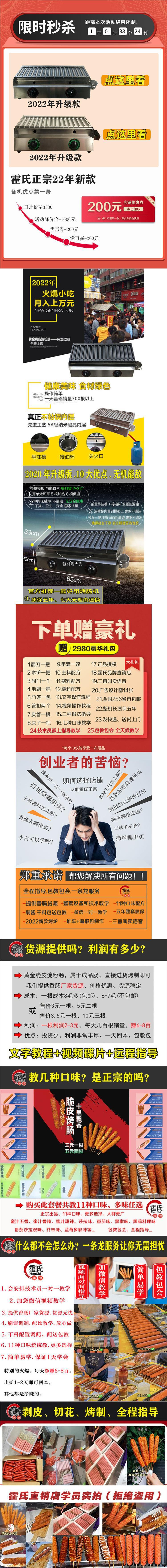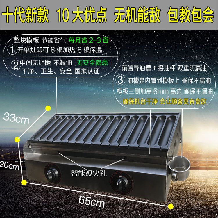 Huo의 22 년 된 새로운 10 세대 프라이드 구운 소시지 기계 상업용 스톨 넷 레드 골드 전분 햄 소시지 스토브