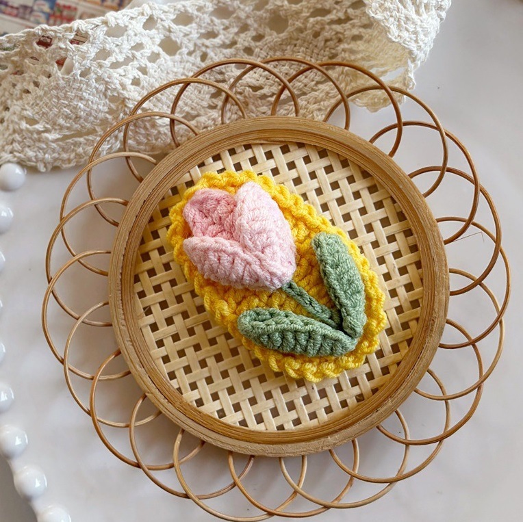 크로 셰 뜨개질 수제 양모 자수 신선한 귀여운 달콤한 컬러 꽃 헤어핀 사이드 뱅 BB 클립 헤어 액세서리