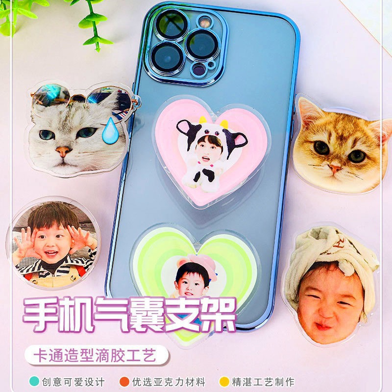 DIY 만화 귀여운 애완 동물 주위에 아크릴 휴대 전화 투명 에어백 브래킷 게으른 텔레스코픽 평면 홈