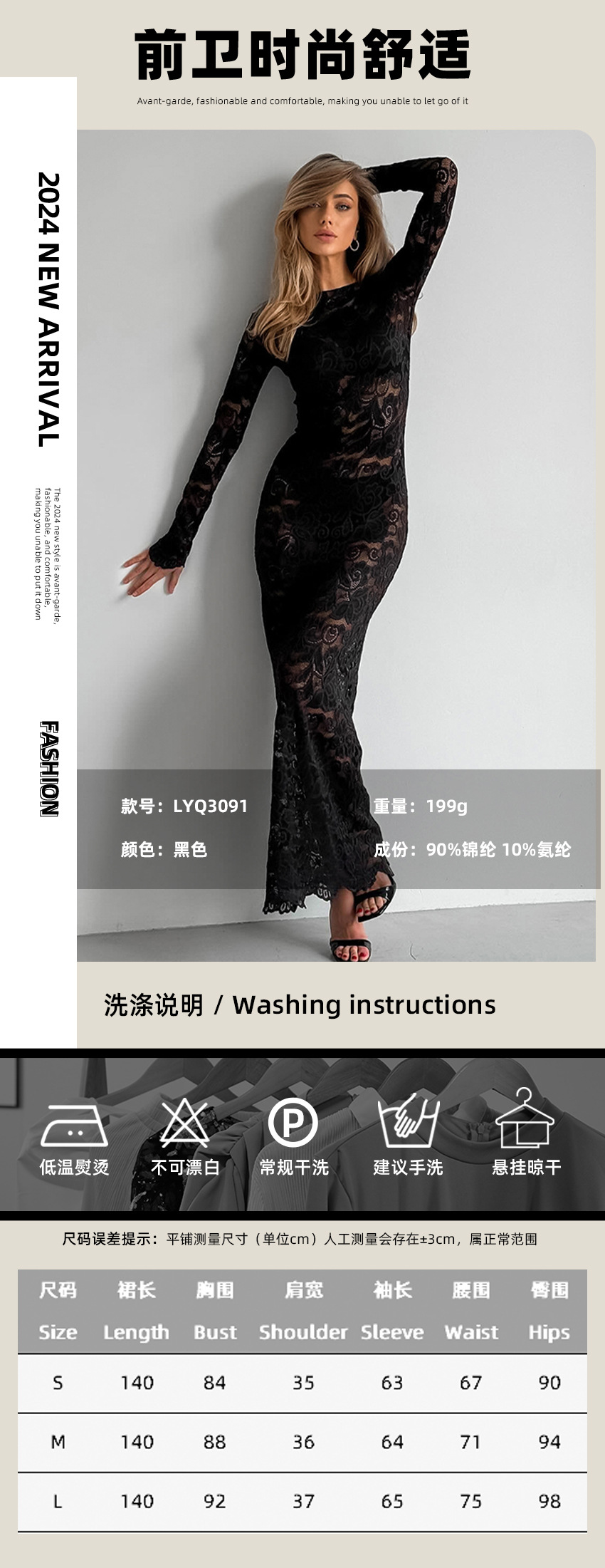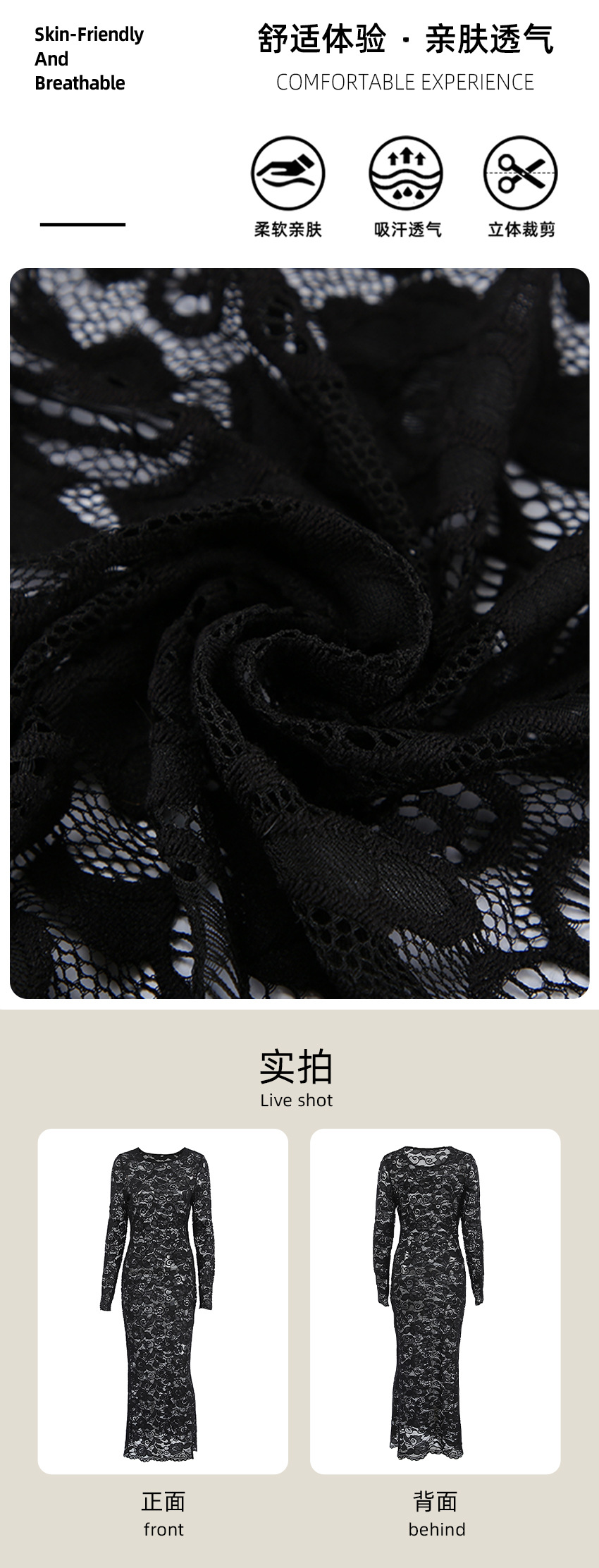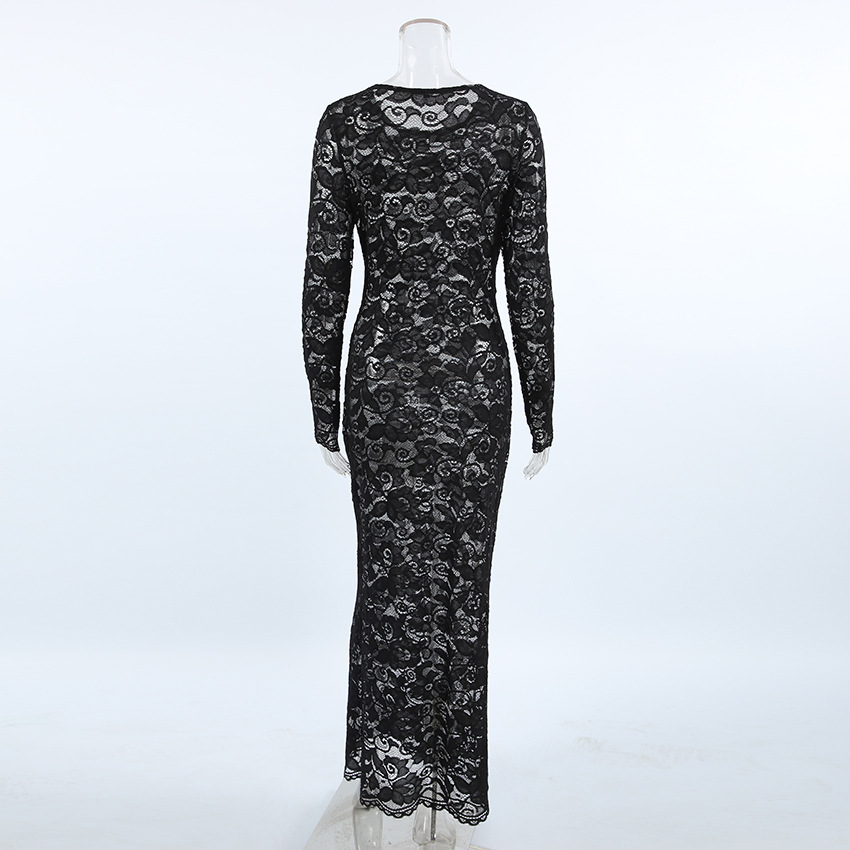 여성을위한 가볍고 성숙한 검은 색 섹시한 레이스 피쉬 테일 롱 스커트 2025 가을 유럽과 미국의 라운드 넥 힙 커버 드레스 여성 의류스토어 가기