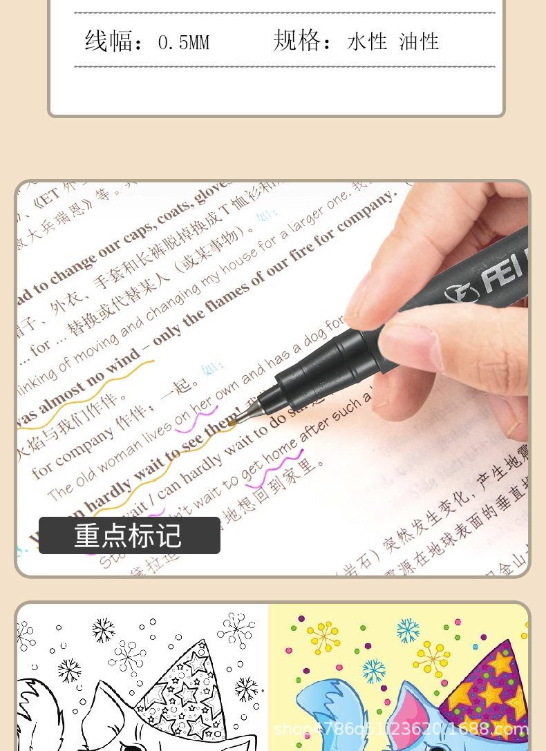 컬러 Gouxianbi 어린이 미술 물 기반 Gouxianbi 표시 오일 기반 0.5 미세 헤드 표시 펜 음성 제어 펜