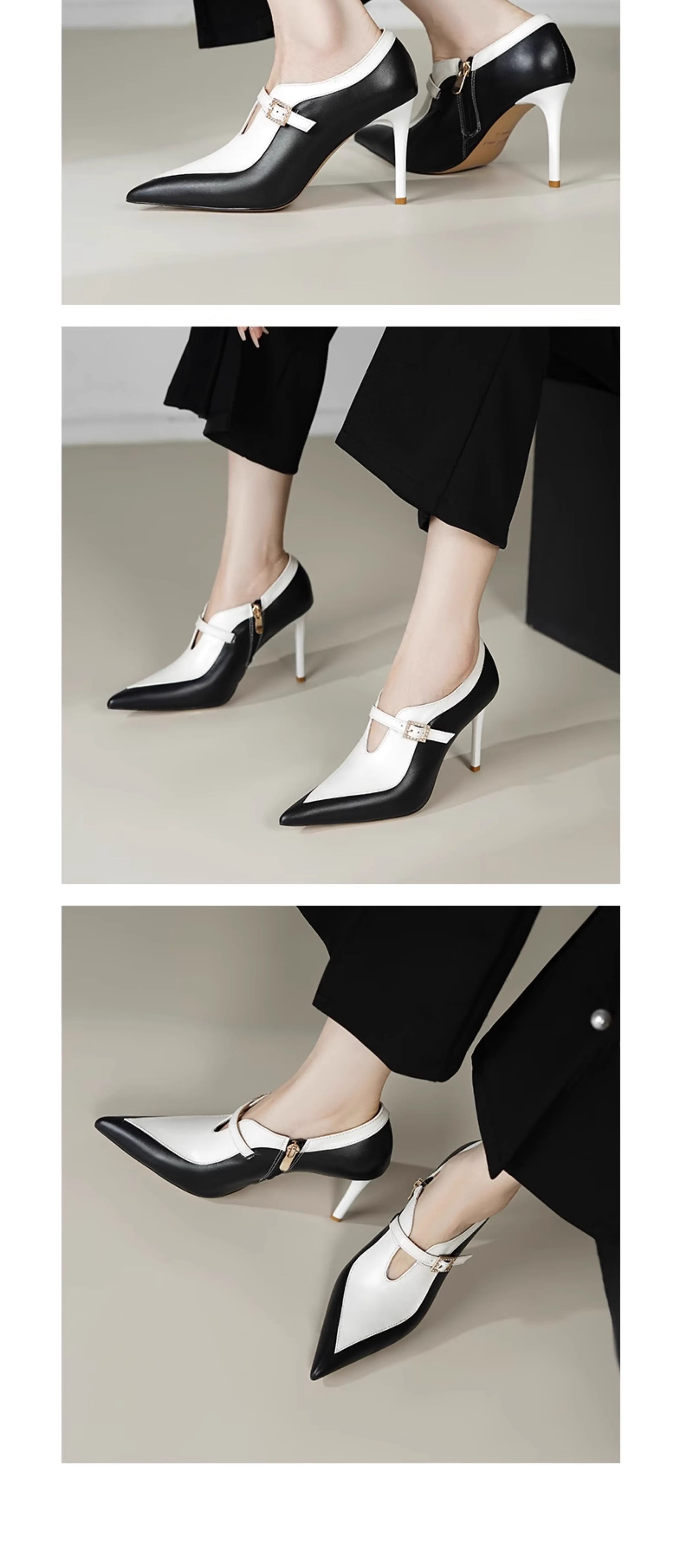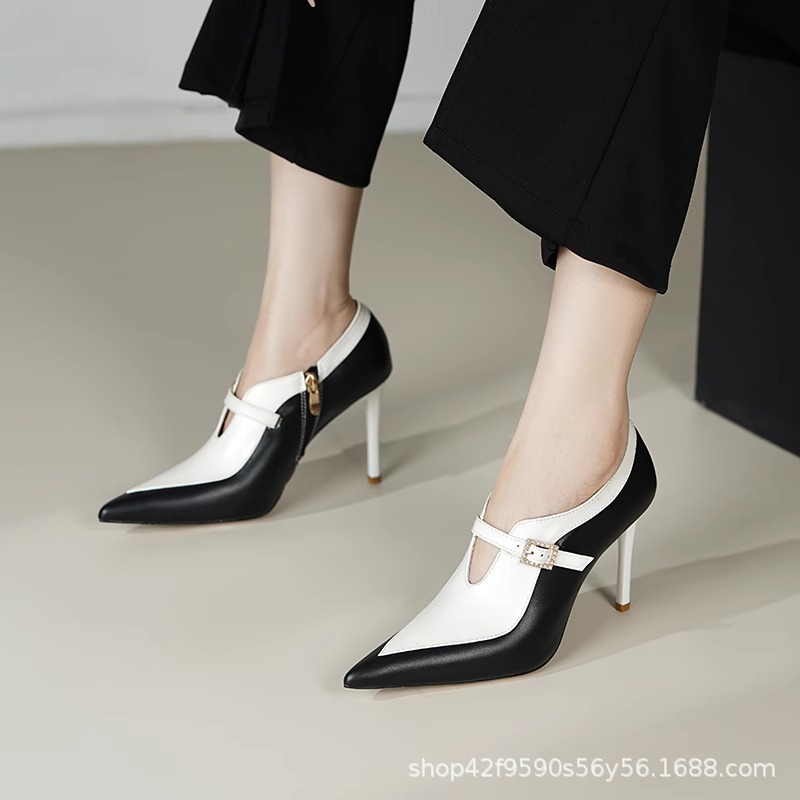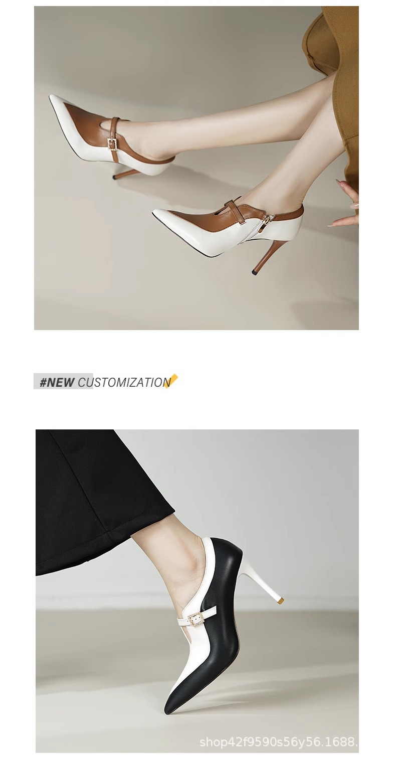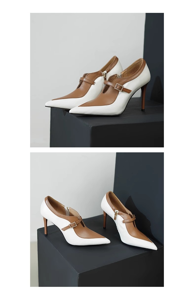플러스 사이즈 프렌치 컬러 블록 하이힐 새로운 우아한 섹시한 뾰족한 알몸 부츠 스틸레토 힐 니크 깊은 입 신발 여성 발목 부츠스토어 가기
