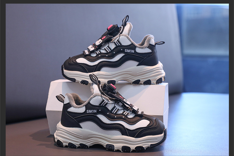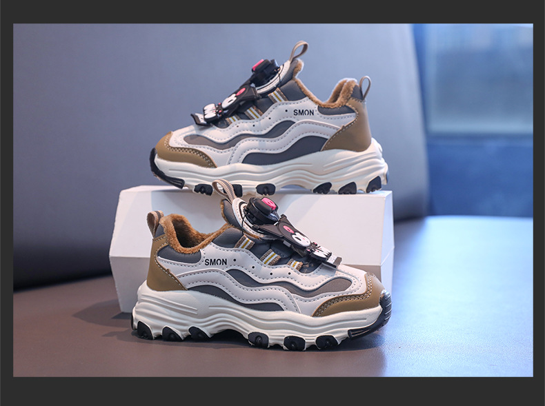 어린이 코튼 쿨로미 운동화 따뜻한 2024 여자 버튼 신발 소년 달리기 신발 미끄럼 방지 패션 트렌디스토어 가기