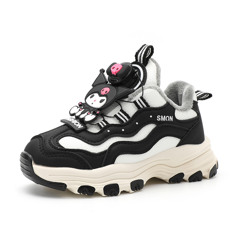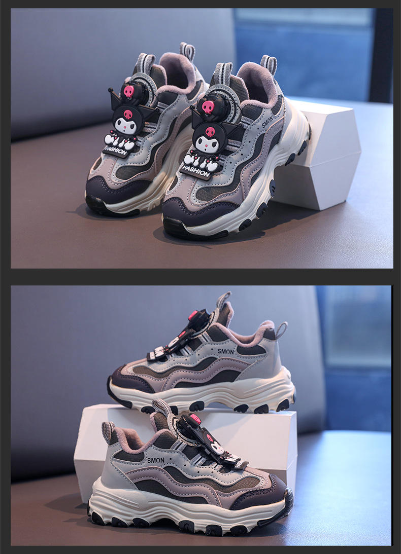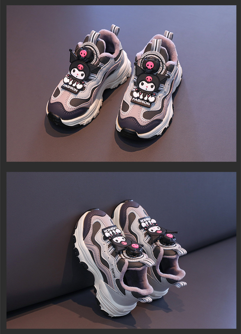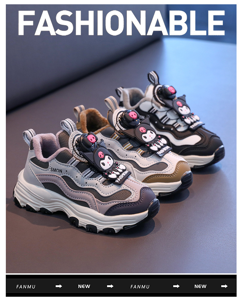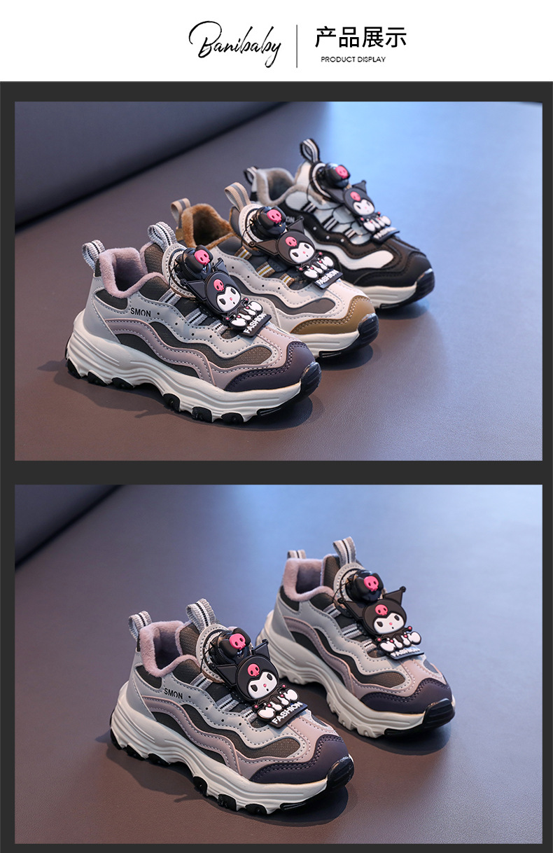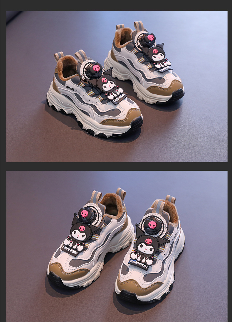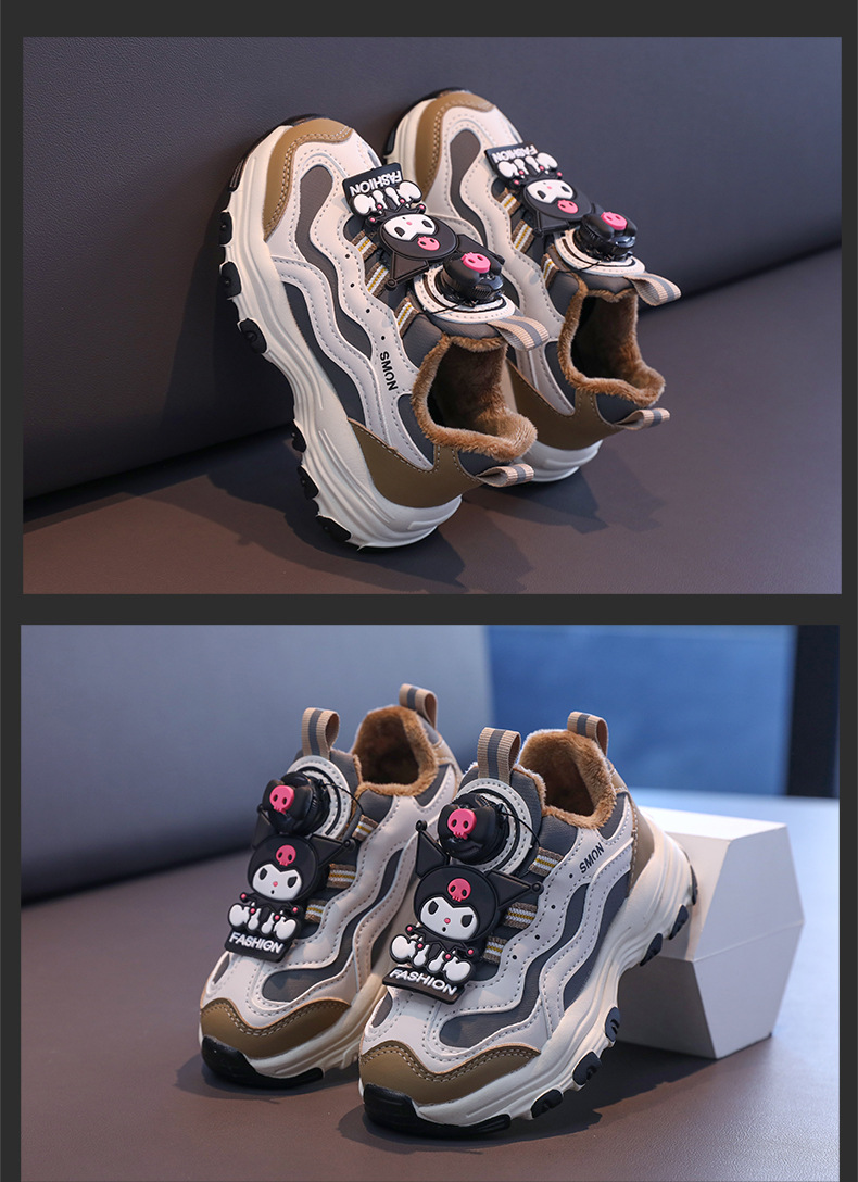 어린이 코튼 쿨로미 운동화 따뜻한 2024 여자 버튼 신발 소년 달리기 신발 미끄럼 방지 패션 트렌디