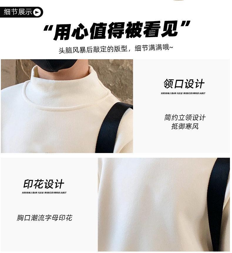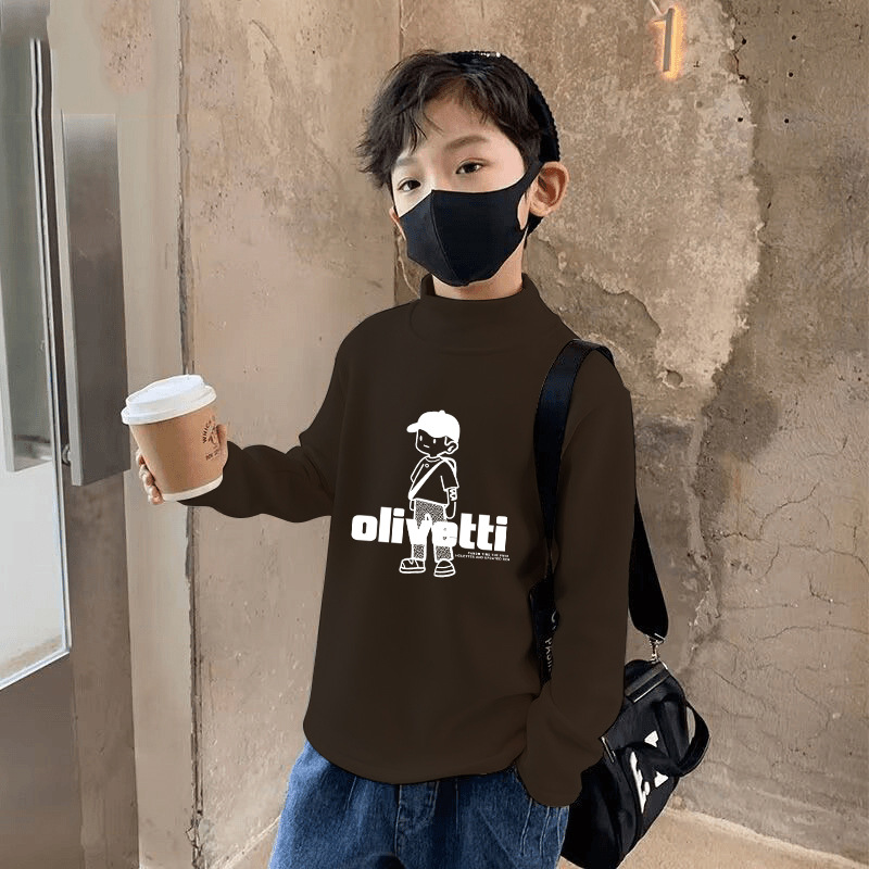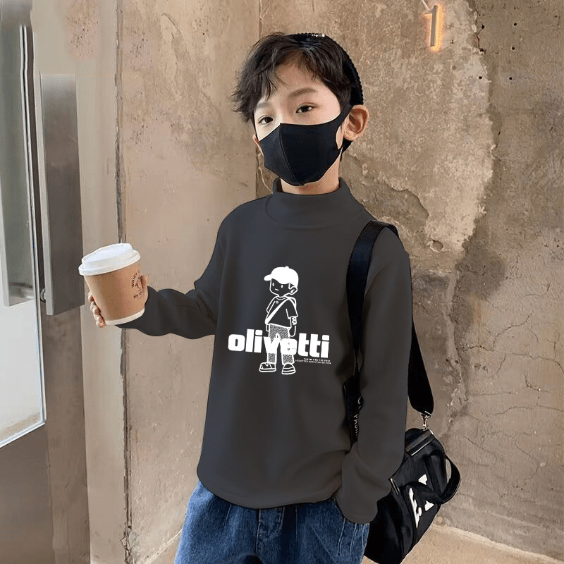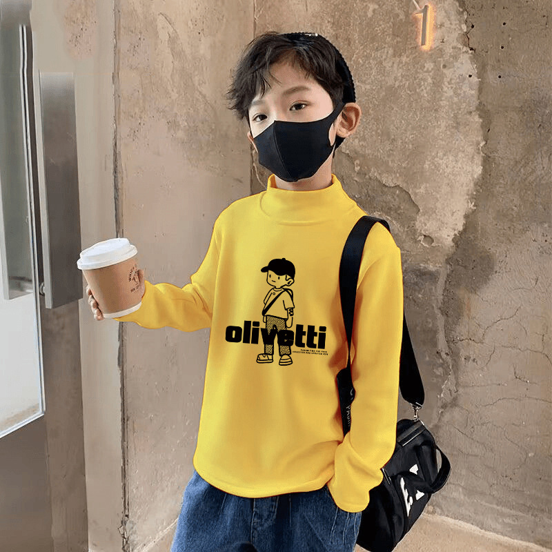 양면 벨벳 샌딩 세미 하이 칼라 소년 가을 및 겨울 중 큰 어린이 티셔츠 베이스 셔츠 캐주얼 긴팔 탑 트렌디 인스토어 가기
