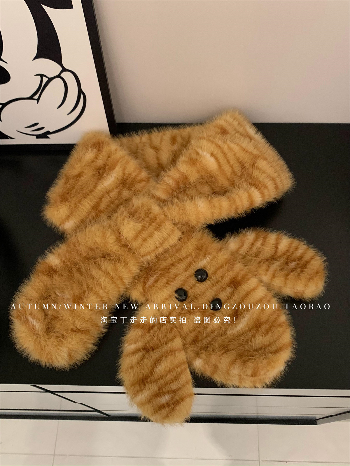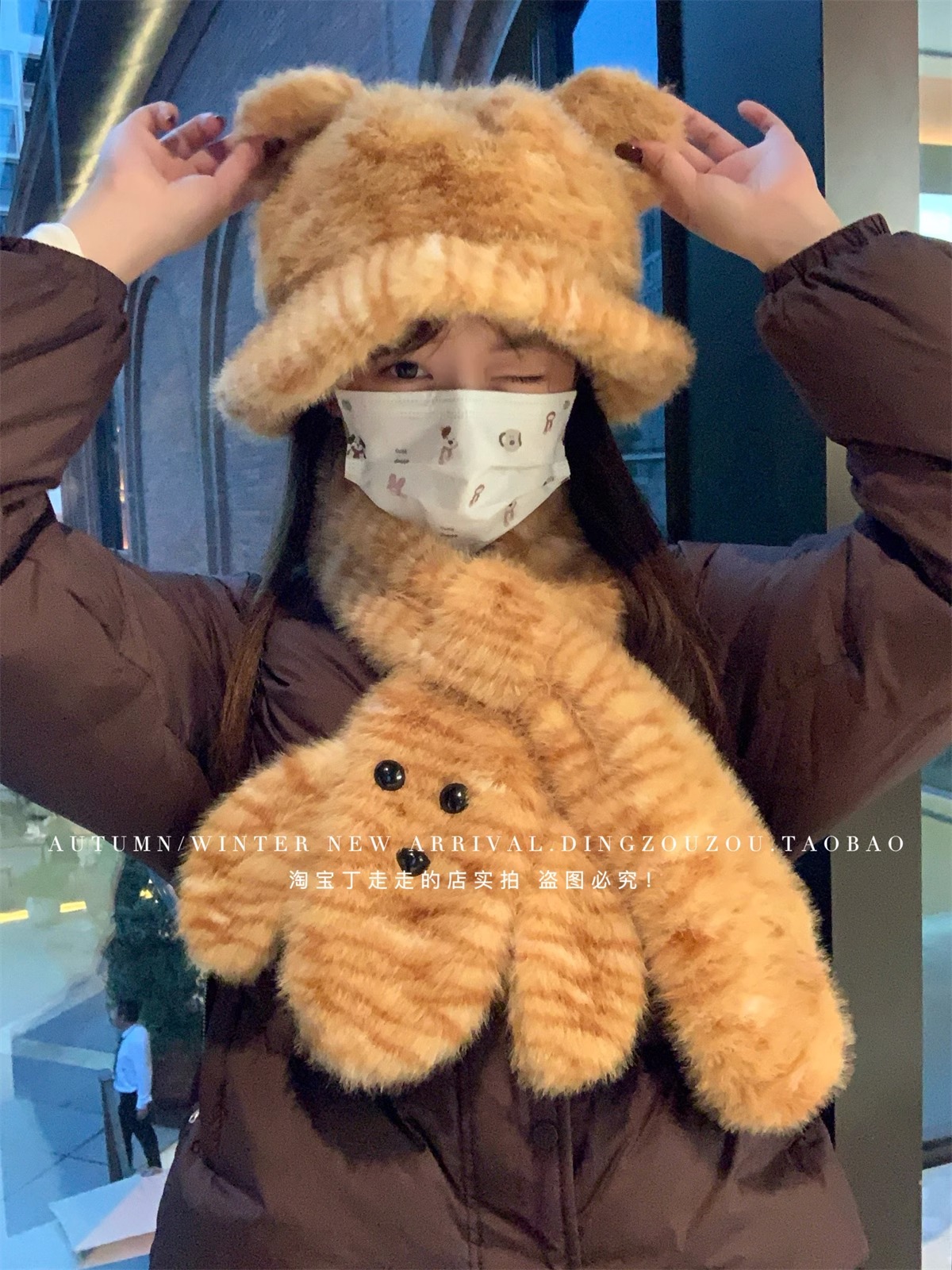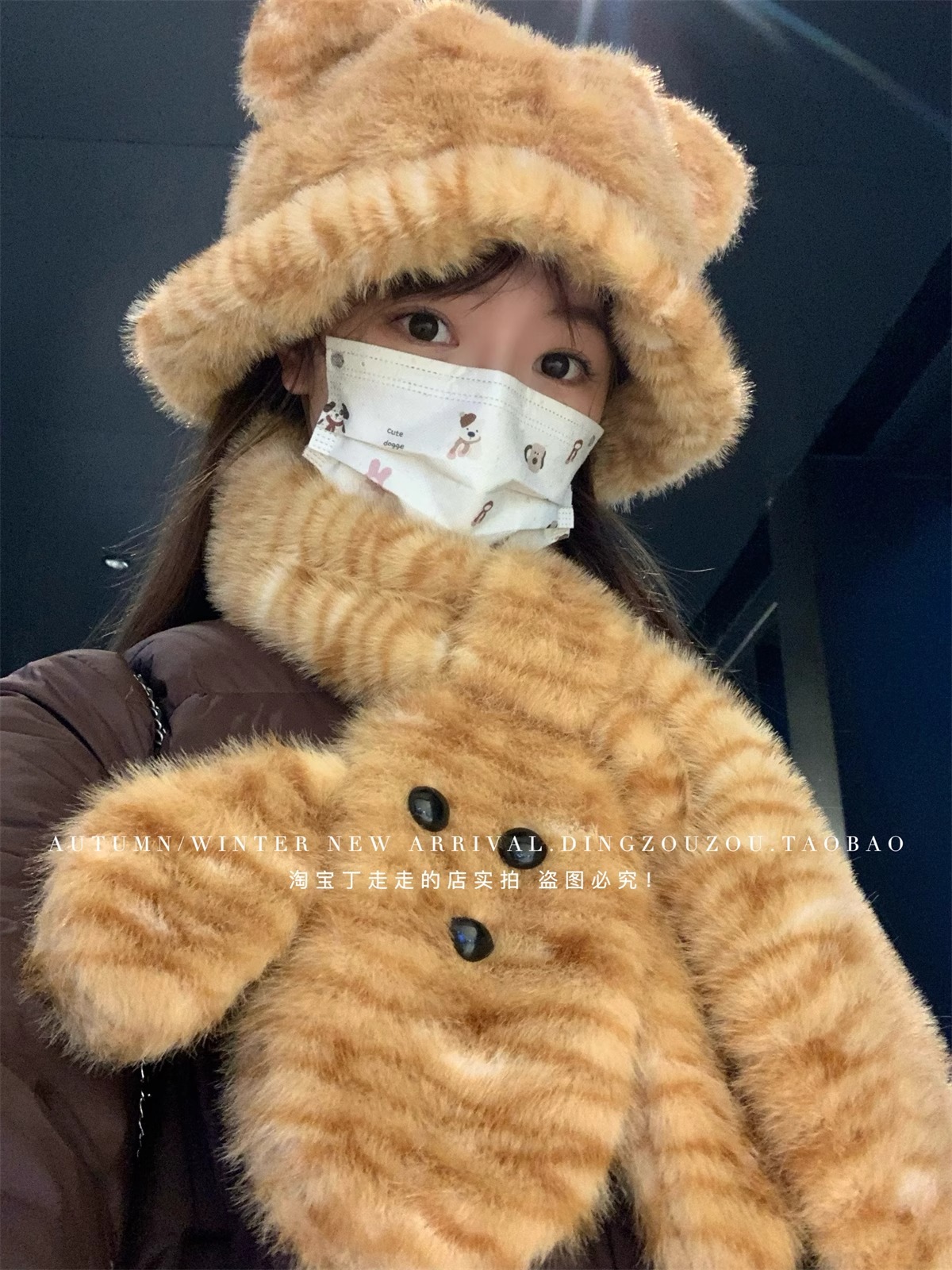 귀여운 호랑이 봉제 귀 어부 모자 여성의 겨울 목 보호 두꺼운 따뜻한 만화 스카프 투피스 유행 스카프스토어 가기