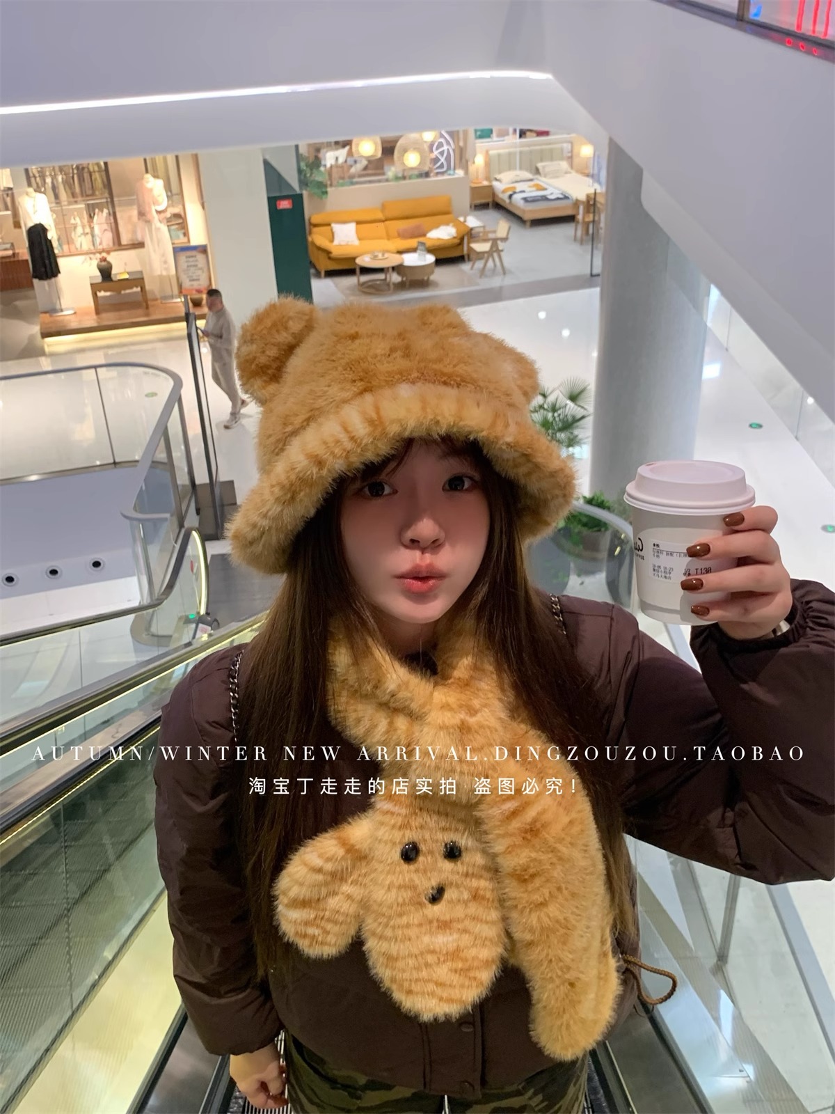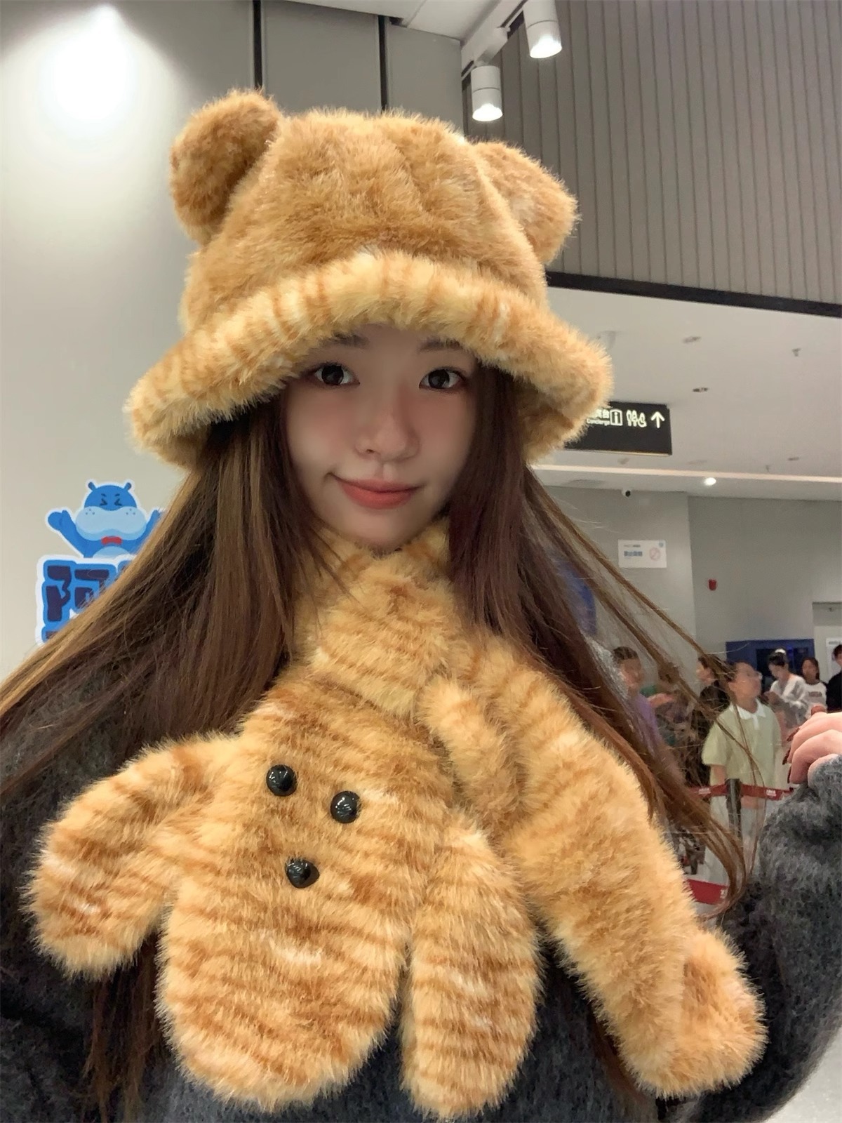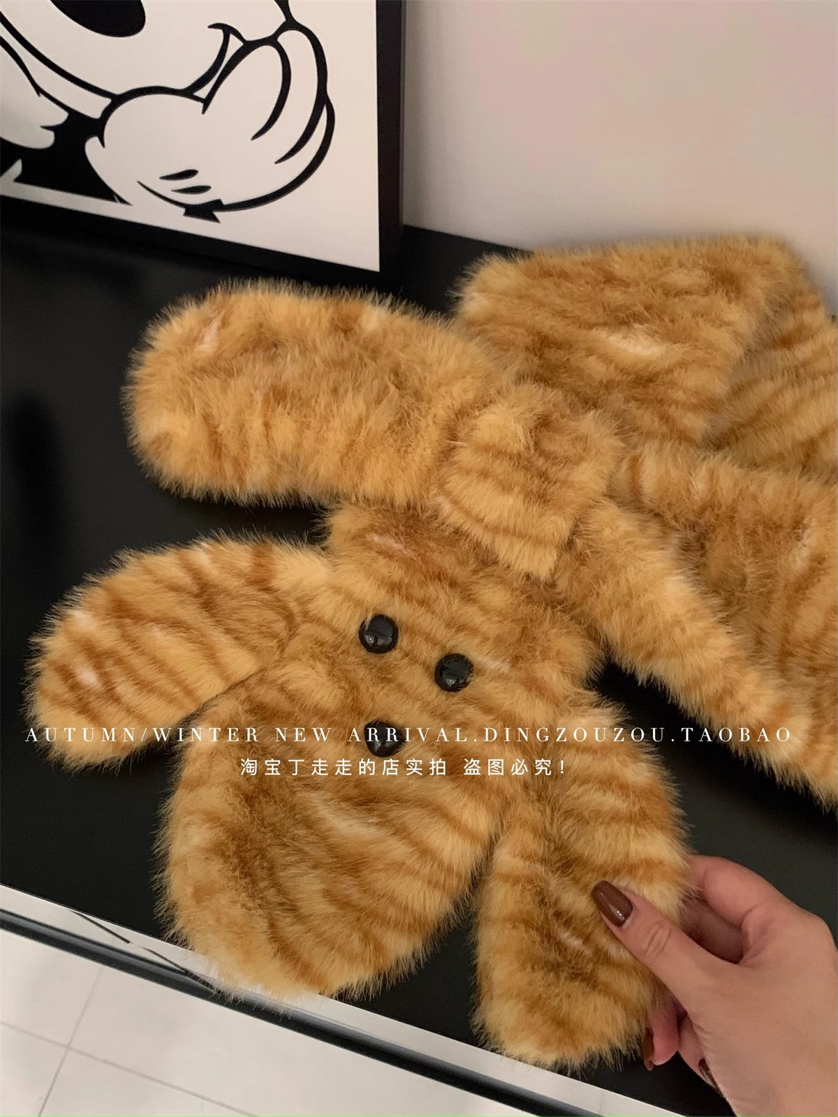 귀여운 호랑이 봉제 귀 어부 모자 여성의 겨울 목 보호 두꺼운 따뜻한 만화 스카프 투피스 유행 스카프스토어 가기