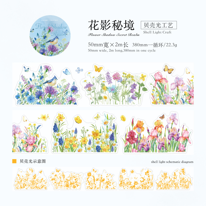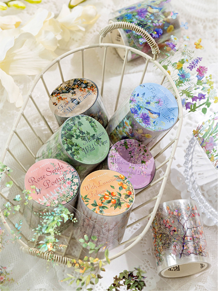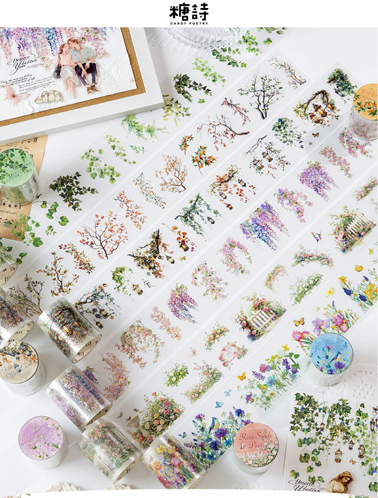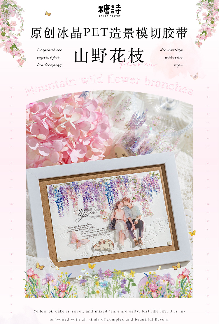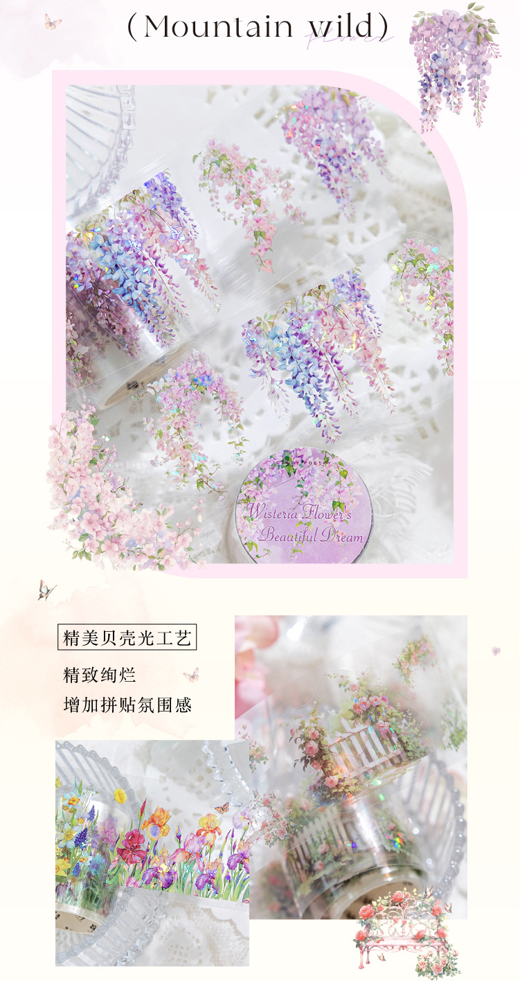 설탕시 아이스 크리스탈 PET 다이 컷 조경 테이프 산 야생 꽃 지점 시리즈 꽃 지점 조경 재료 테마 6 선택