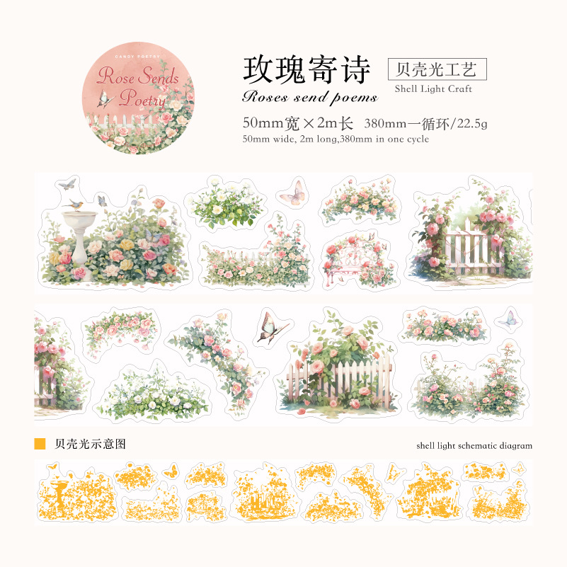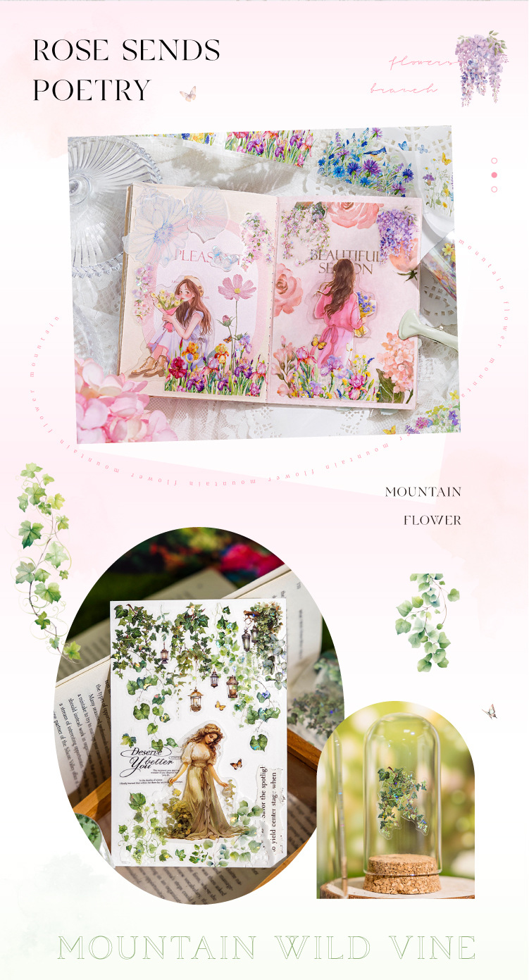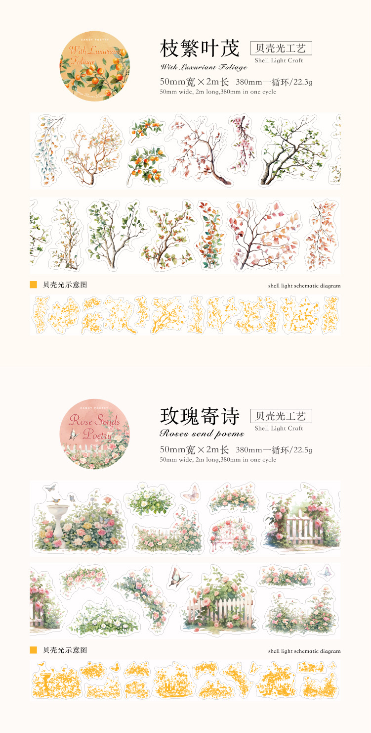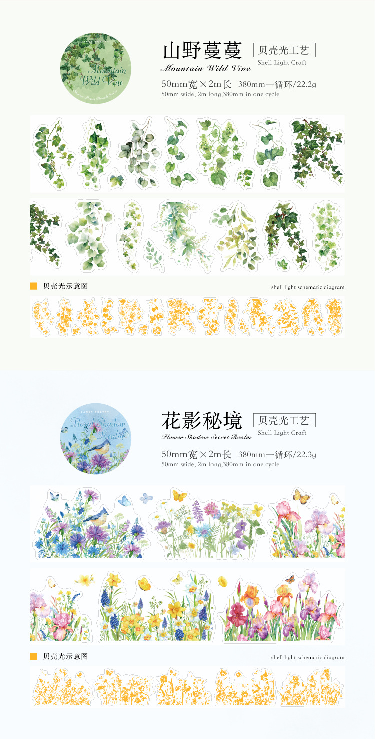 설탕시 아이스 크리스탈 PET 다이 컷 조경 테이프 산 야생 꽃 지점 시리즈 꽃 지점 조경 재료 테마 6 선택