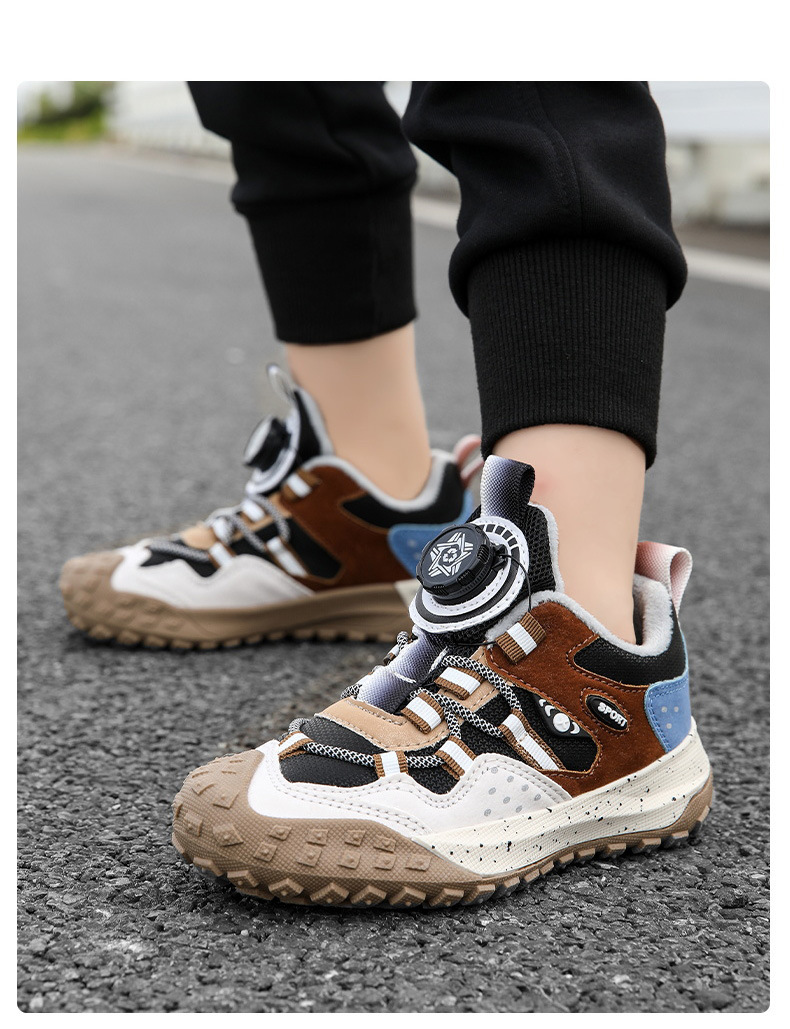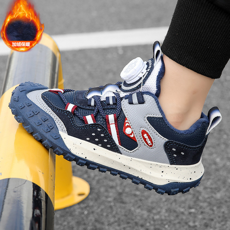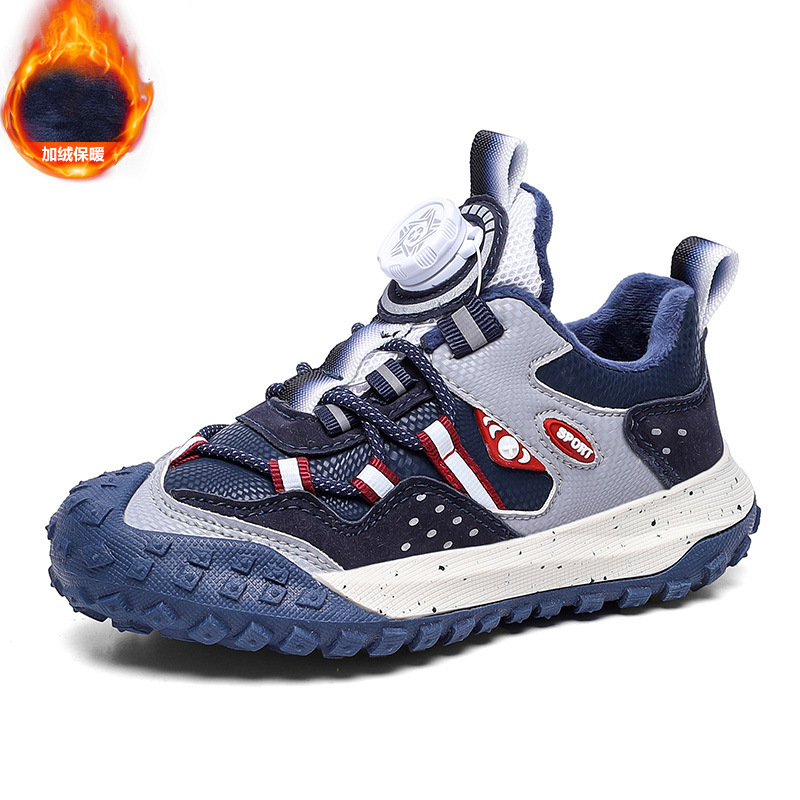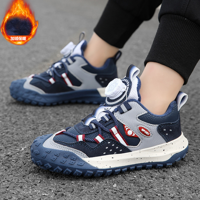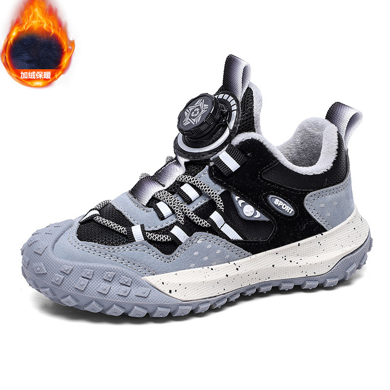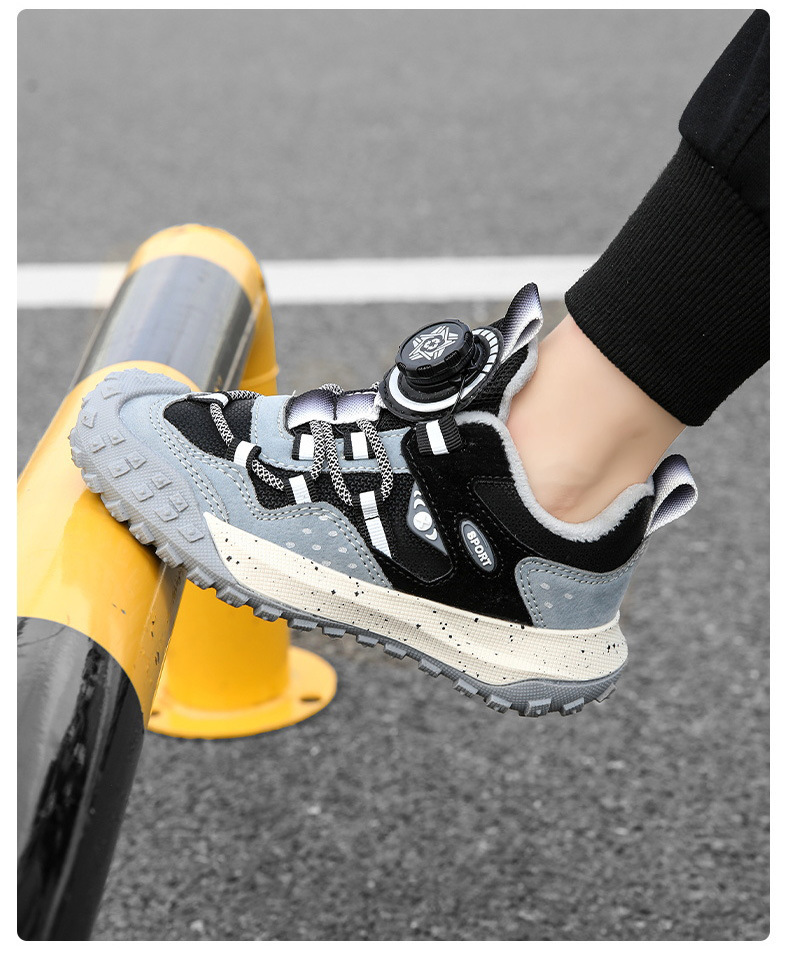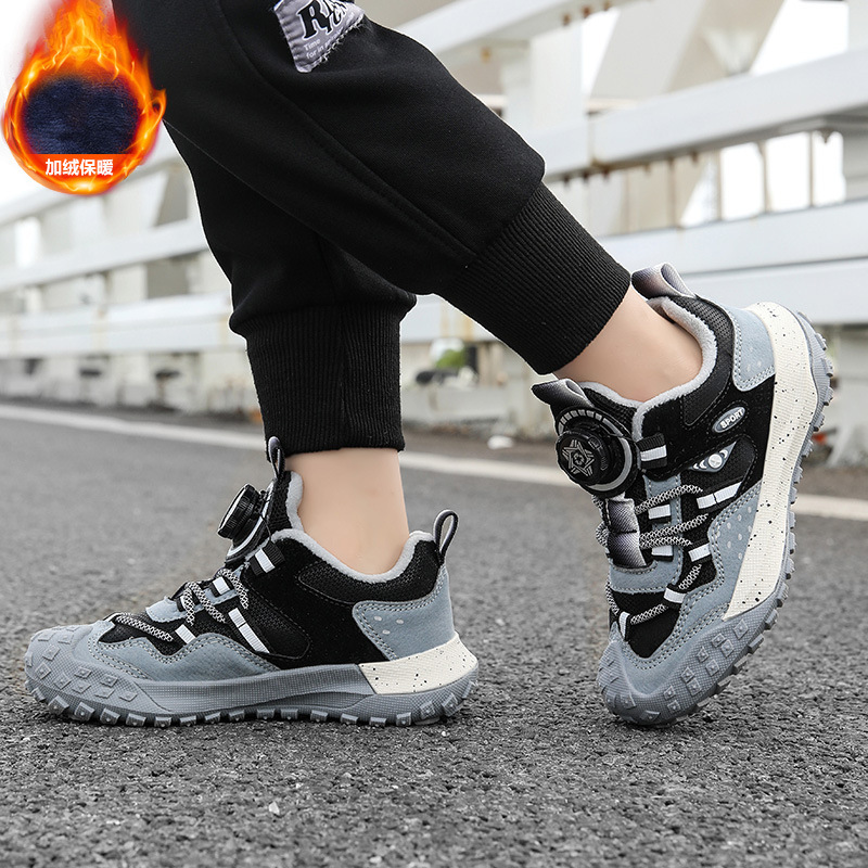 남학생 신발 운동화 2024 겨울 새로운면 따뜻한 가죽 방수 중대형 어린이 회전 버튼 미끄럼 방지스토어 가기