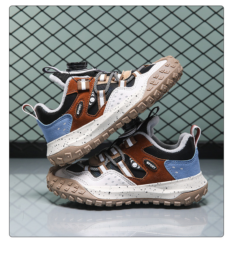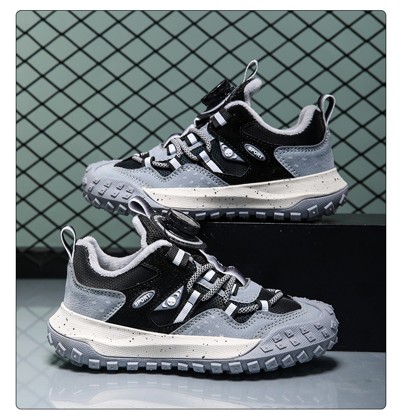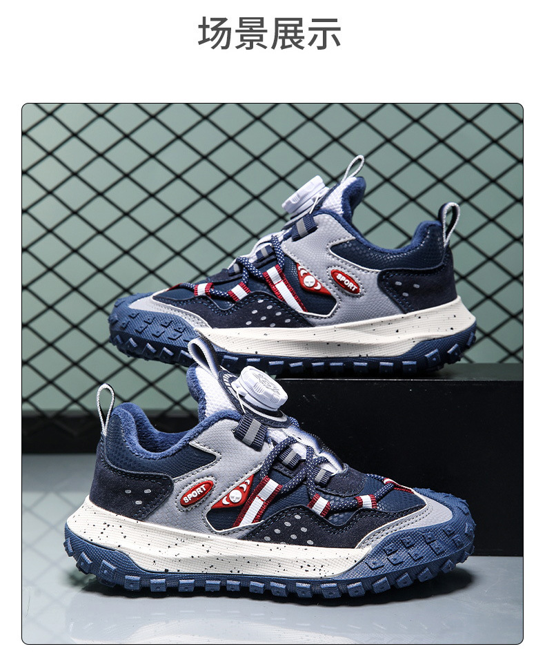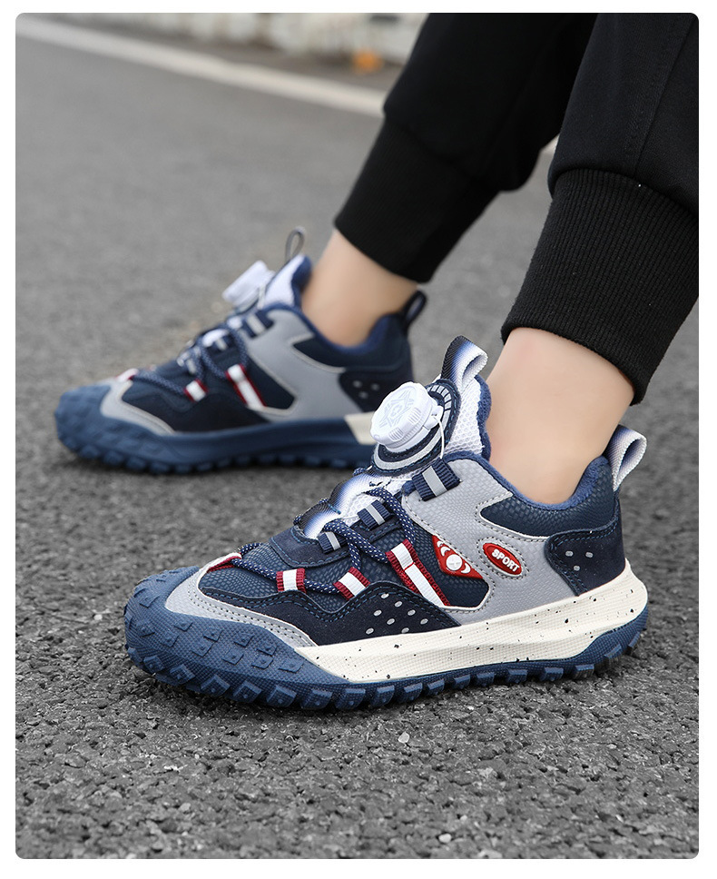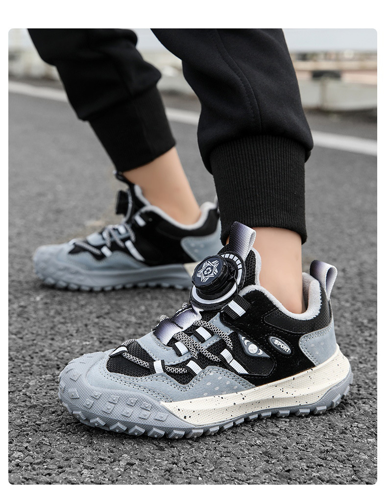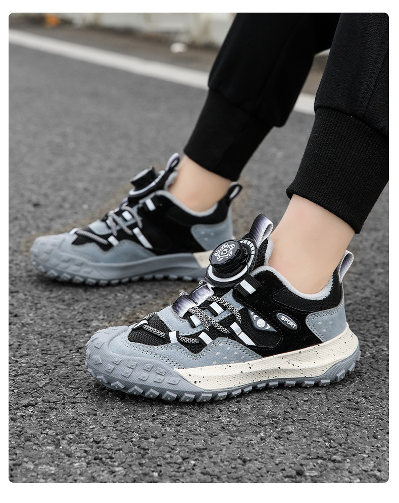 남학생 신발 운동화 2024 겨울 새로운면 따뜻한 가죽 방수 중대형 어린이 회전 버튼 미끄럼 방지스토어 가기