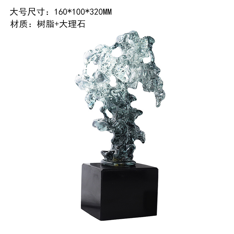 새로운 중국 스타일의 투명한 수지 태후 스톤 장식품 모델 룸 오피스 TV 캐비닛 골동품 선반 커피 테이블 부드러운 장식