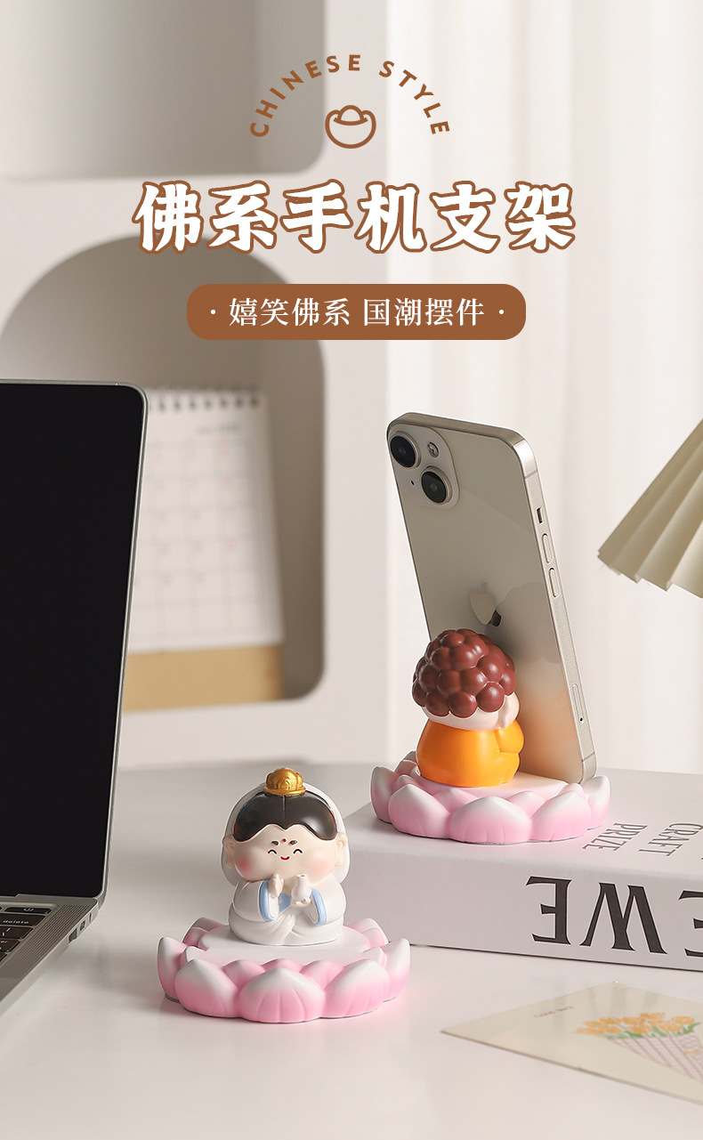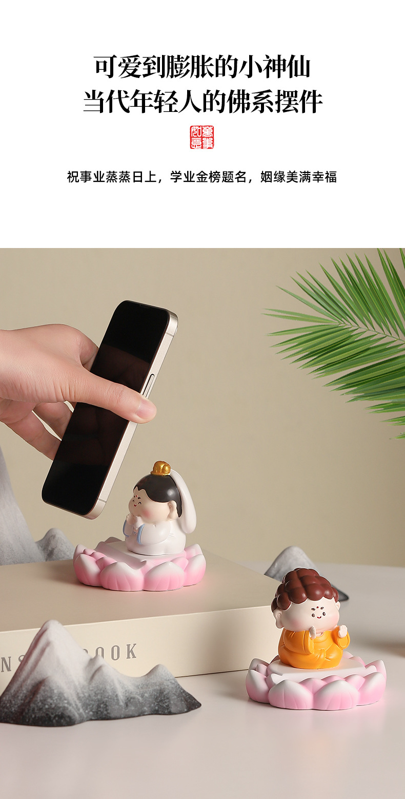 祈福好运神仙手机支架摆件 懒人平板支撑架子送闺蜜车载装饰礼物