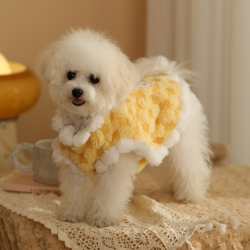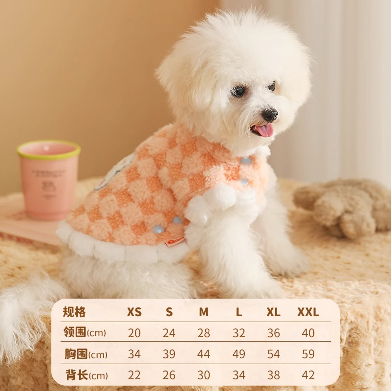 고양이 가을과 겨울 봉제 조끼 귀여운 격자 무늬 애완 동물 조끼 작은 개 새끼 고양이 따뜻한 옷