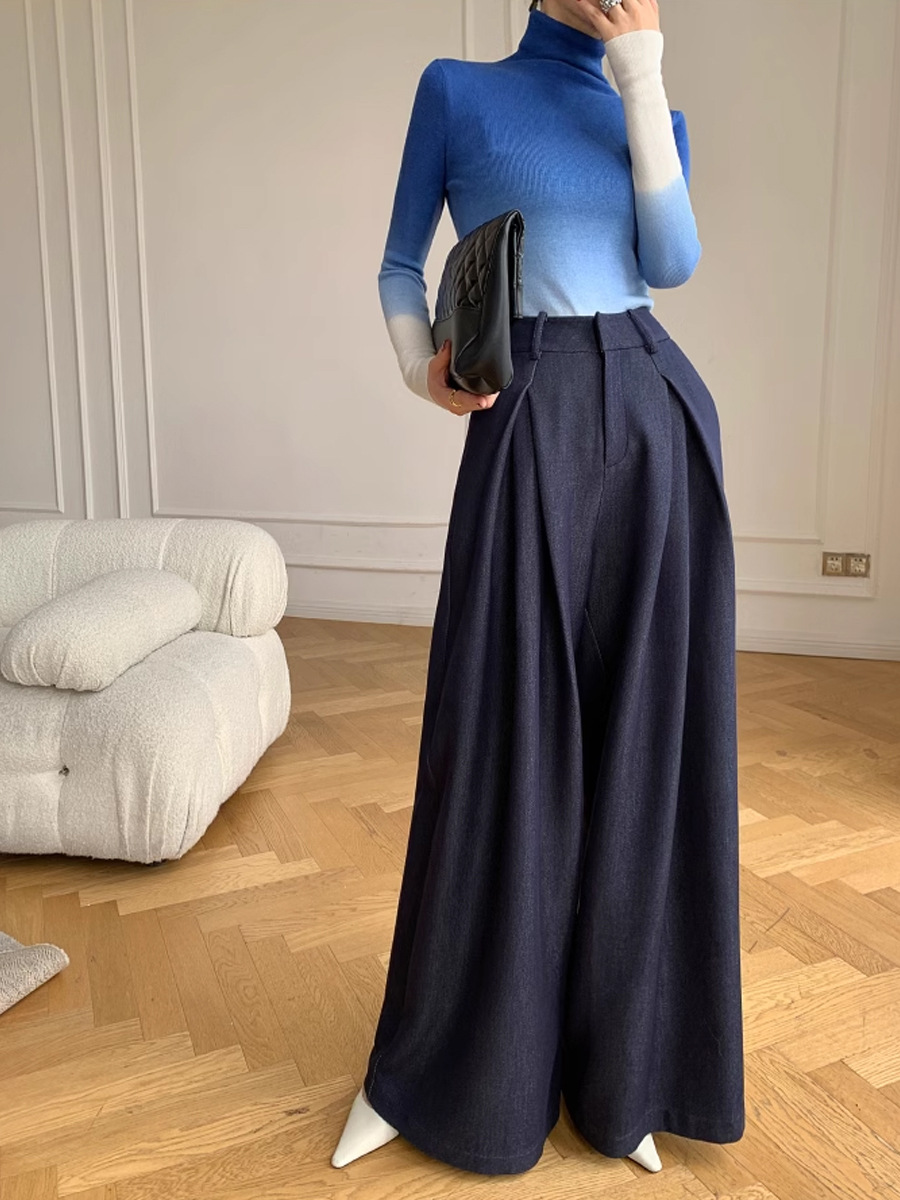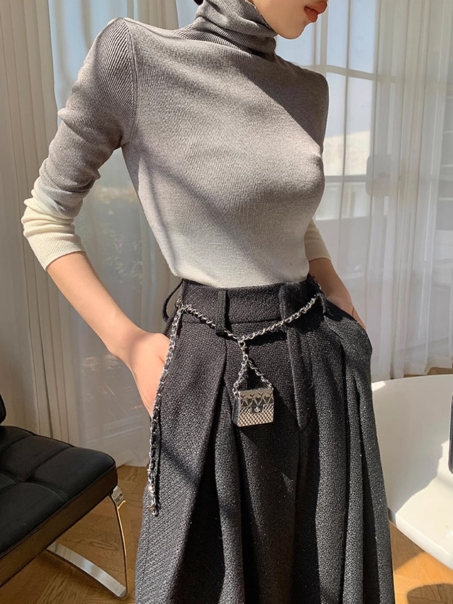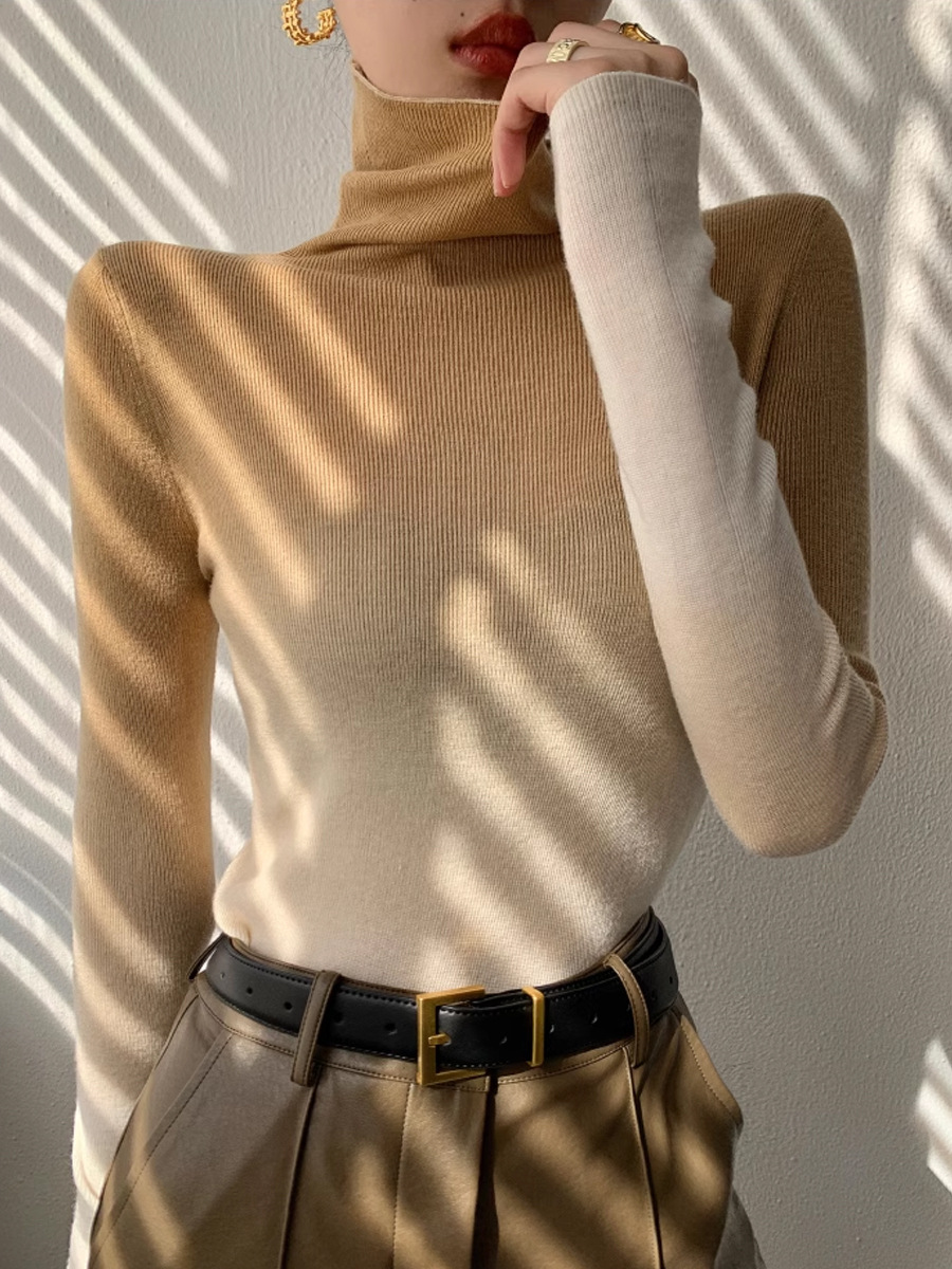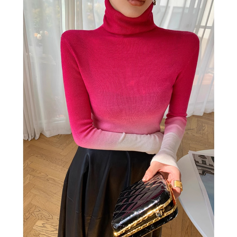 그라디언트 컬러 터틀넥 스웨터 여성의 가을과 겨울 2024 새로운 꽉 슬림 하이 엔드 소프트 왁스 니트 탑
