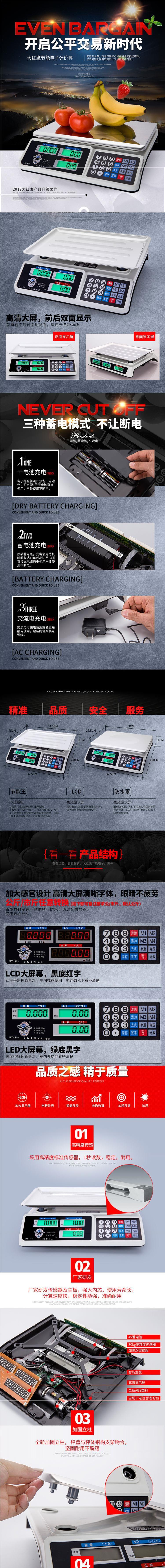 Dahongying 상업용 전자 규모 30kg 가격 충전 플랫폼 규모 야채 및 과일 전자 규모 정밀 시장 안정스토어 가기