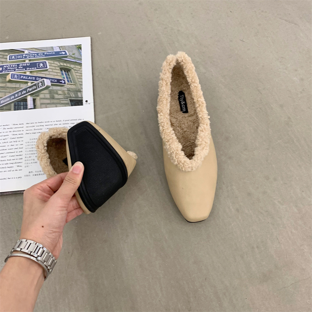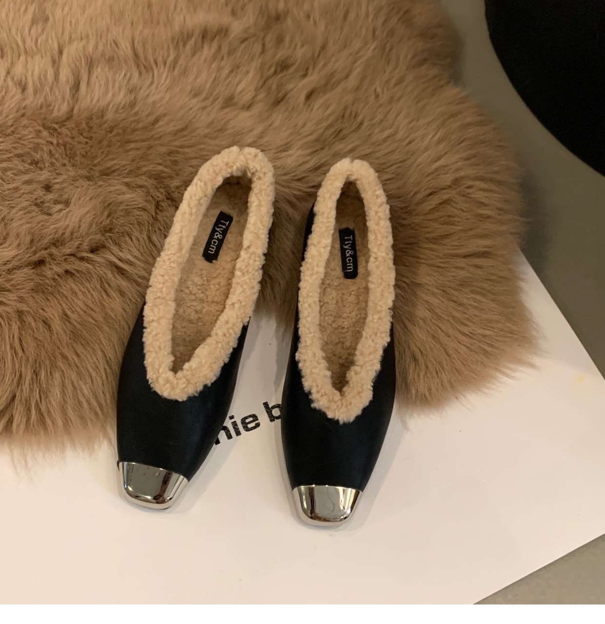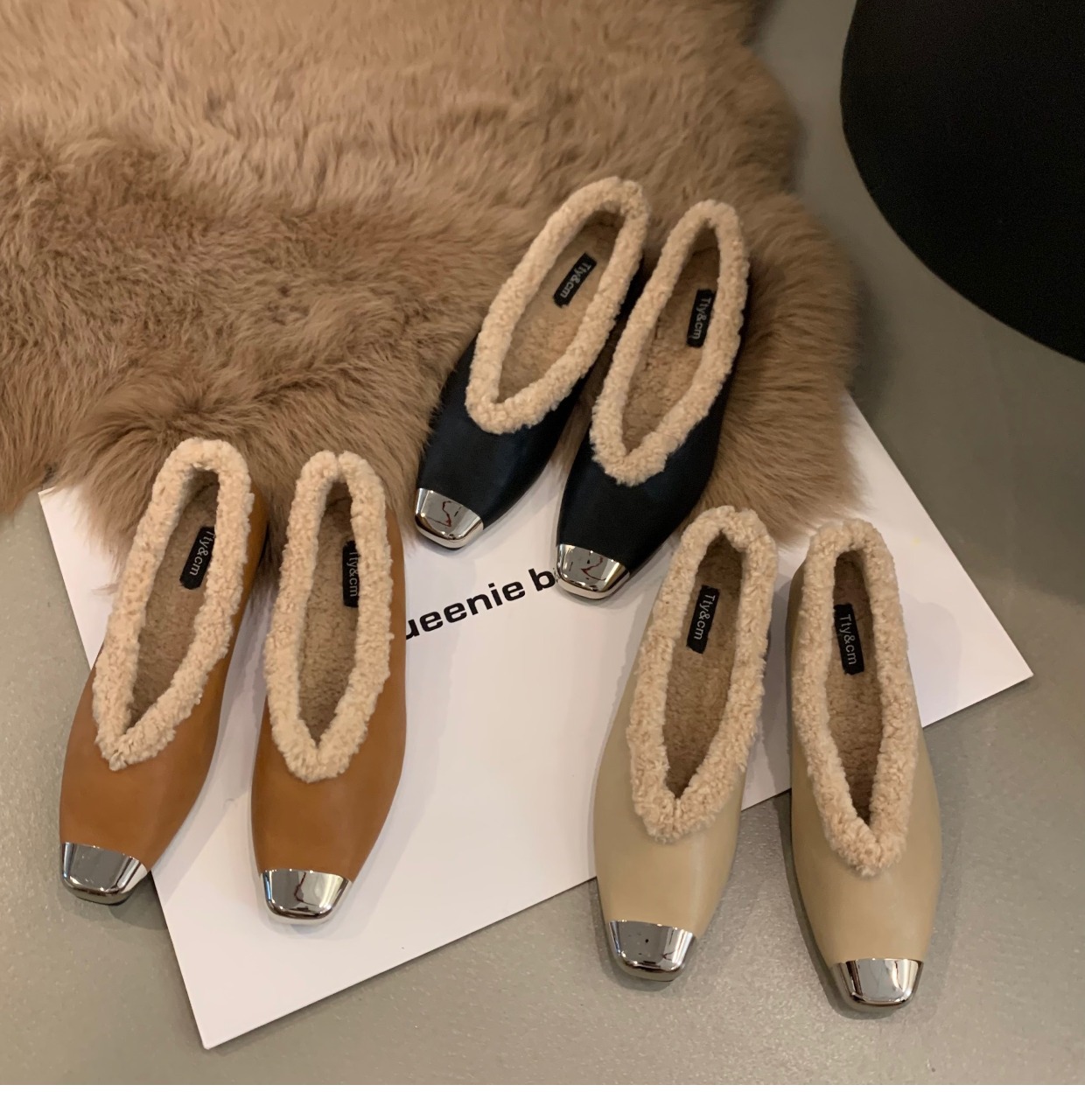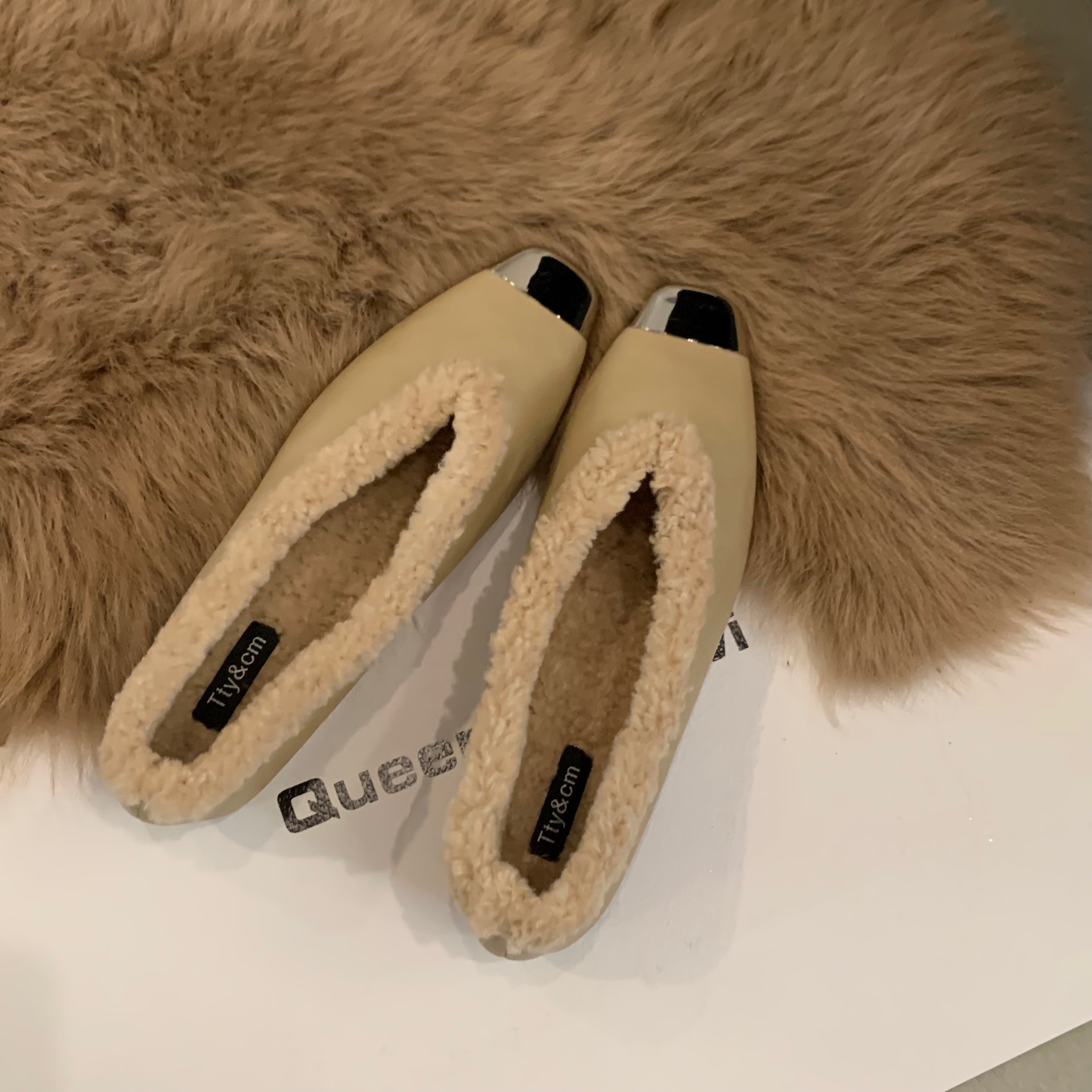 프랑스 광장 머리 기모 따뜻한 마오 마오 면화 여성 신발 2024 새로운 가을 및 겨울 착용 기질 착용 외신 싱글 신발스토어 가기