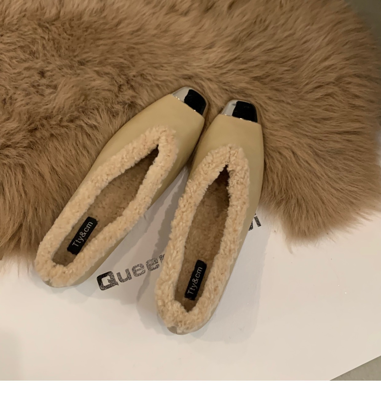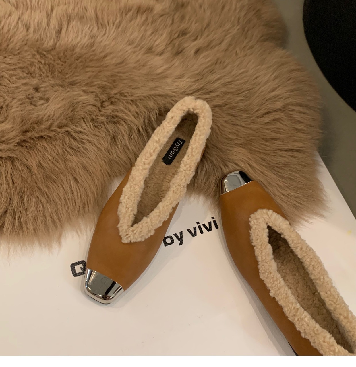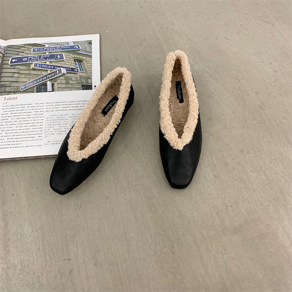 프랑스 광장 머리 기모 따뜻한 마오 마오 면화 여성 신발 2024 새로운 가을 및 겨울 착용 기질 착용 외신 싱글 신발스토어 가기