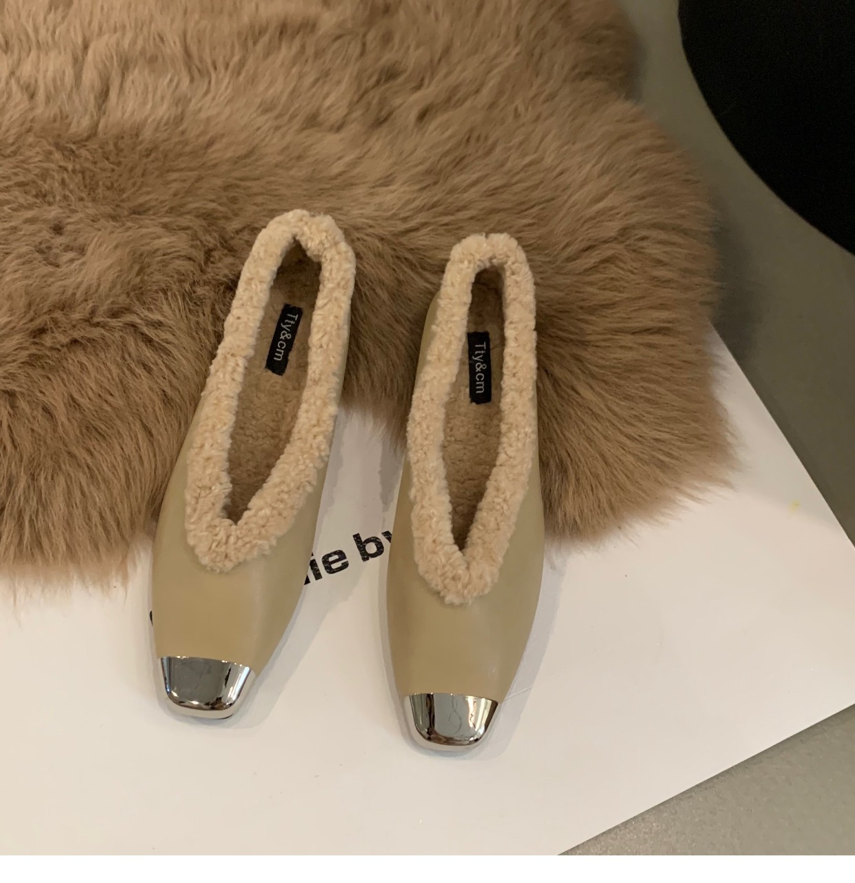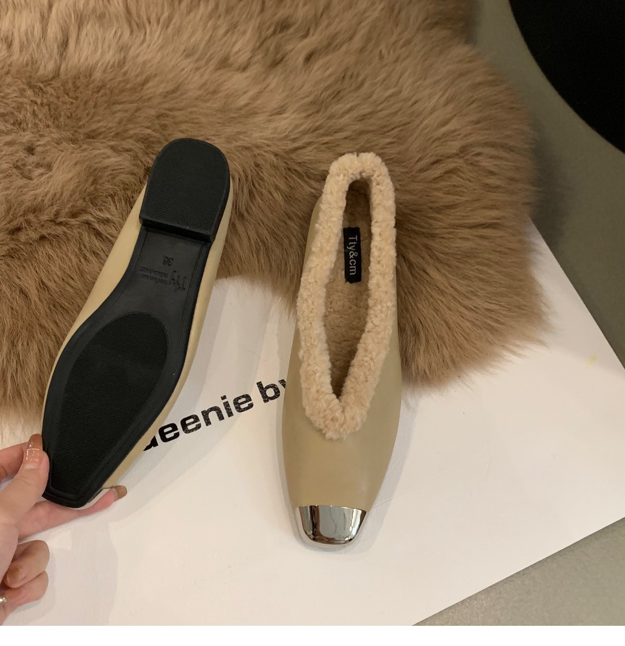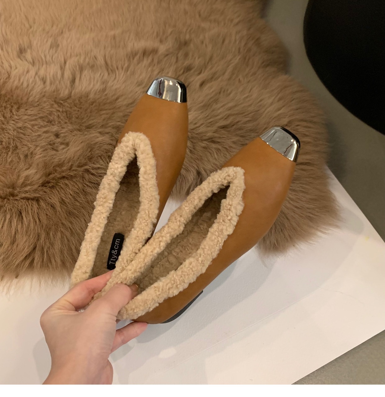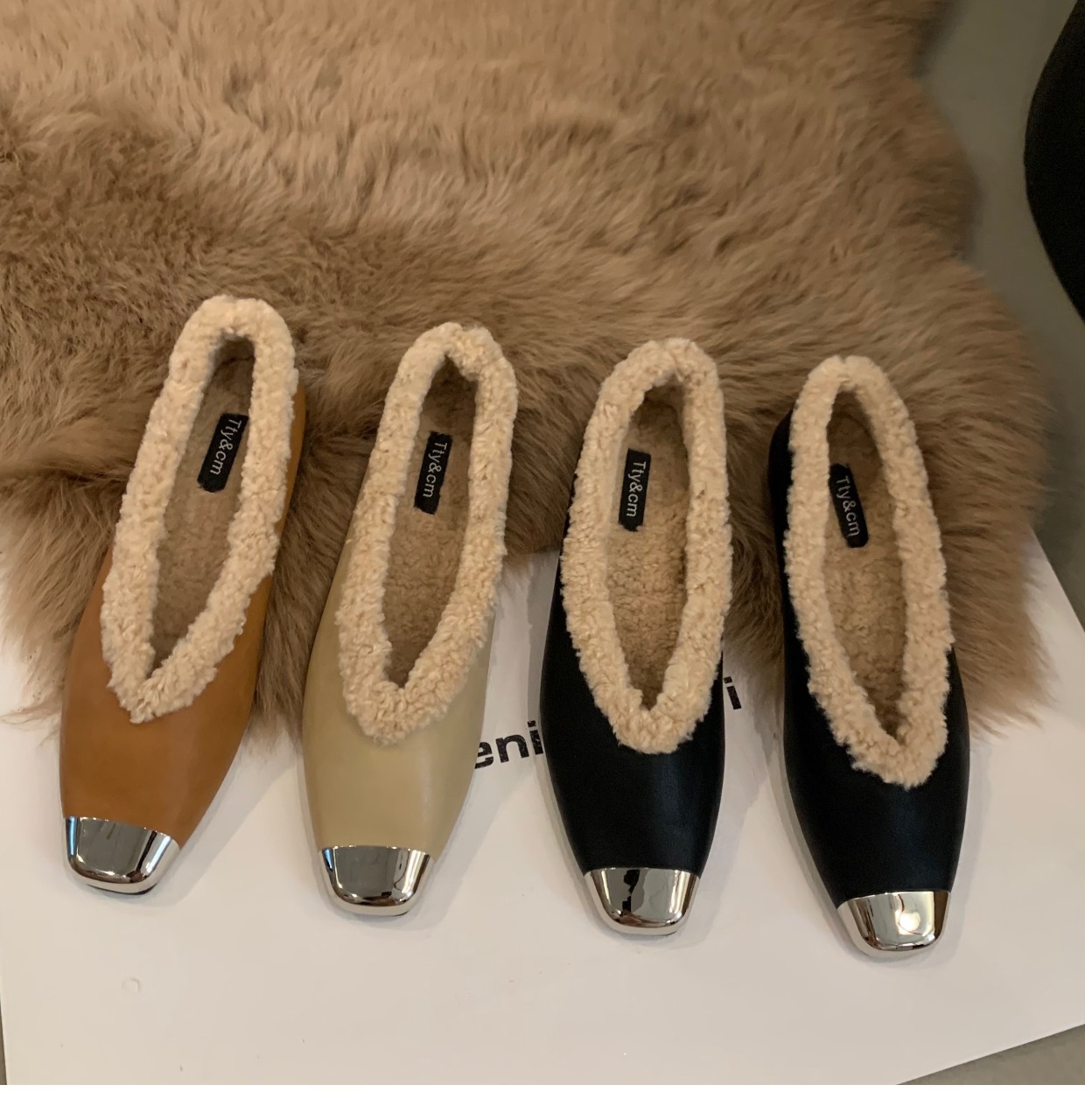 프랑스 광장 머리 기모 따뜻한 마오 마오 면화 여성 신발 2024 새로운 가을 및 겨울 착용 기질 착용 외신 싱글 신발스토어 가기