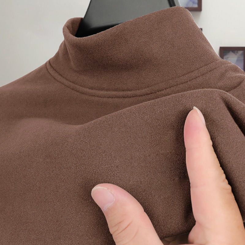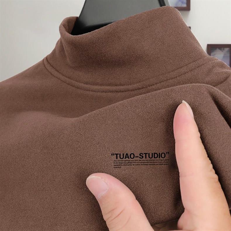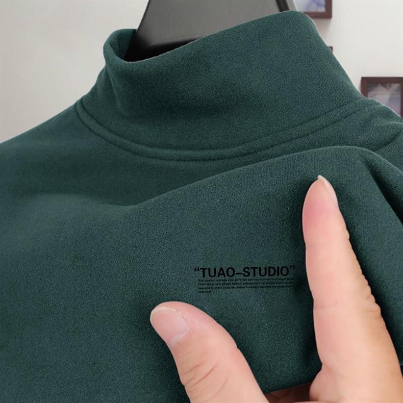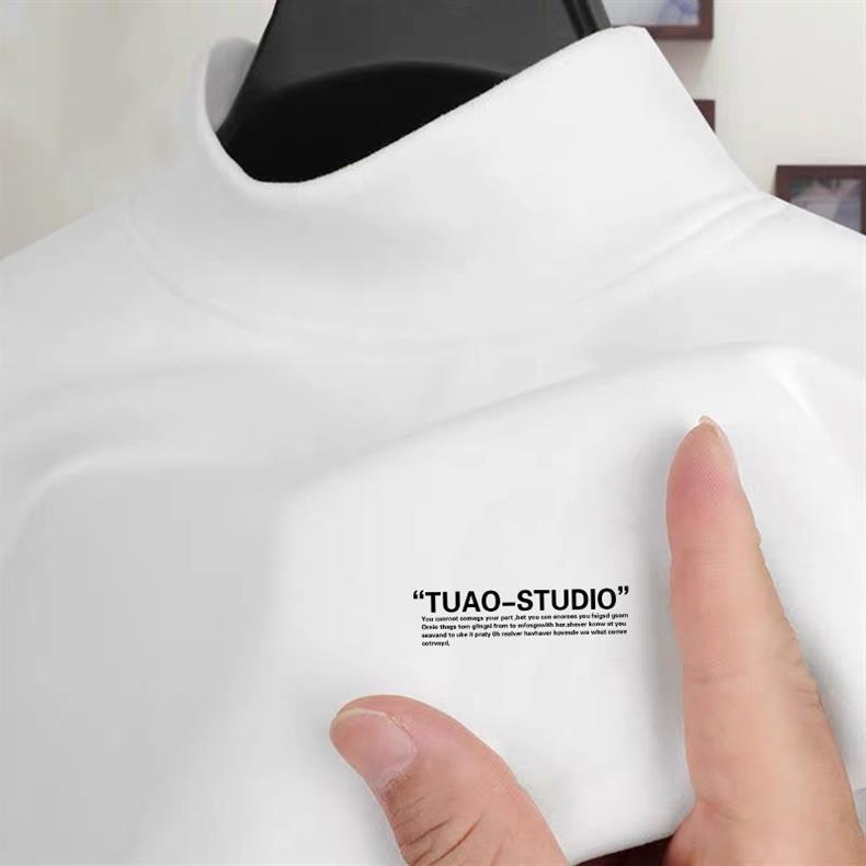 독일 벨벳 바닥 셔츠 남성 가을과 겨울 패션 프린트 긴 소매 티셔츠 따뜻한 자기 가열 내부 절반 높은 칼라 탑 t스토어 가기