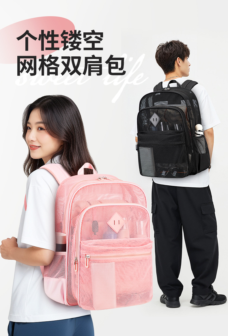 Amazon 베스트셀러 메쉬 중공 배낭 어깨 대용량 헤비 듀티 메쉬 통기성 보관 가방 크로스 보더스토어 가기