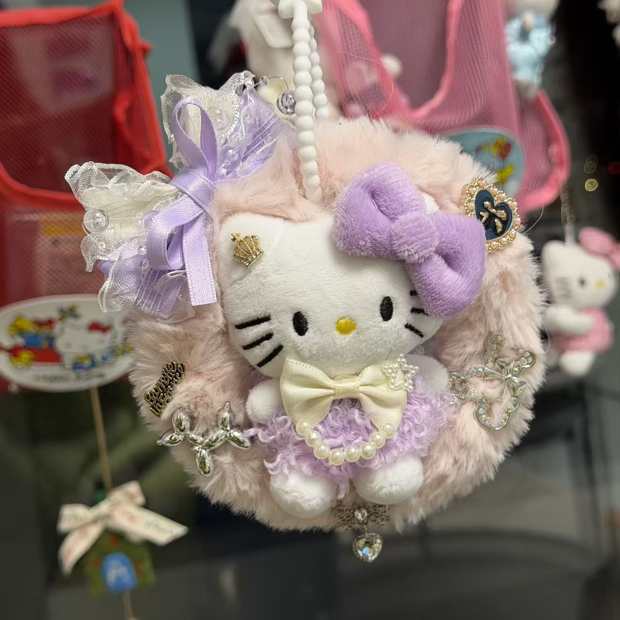 • 샤오란 kt [보라색 리본 + 핑크 털실 꽃 화관 스타일] - 10cm