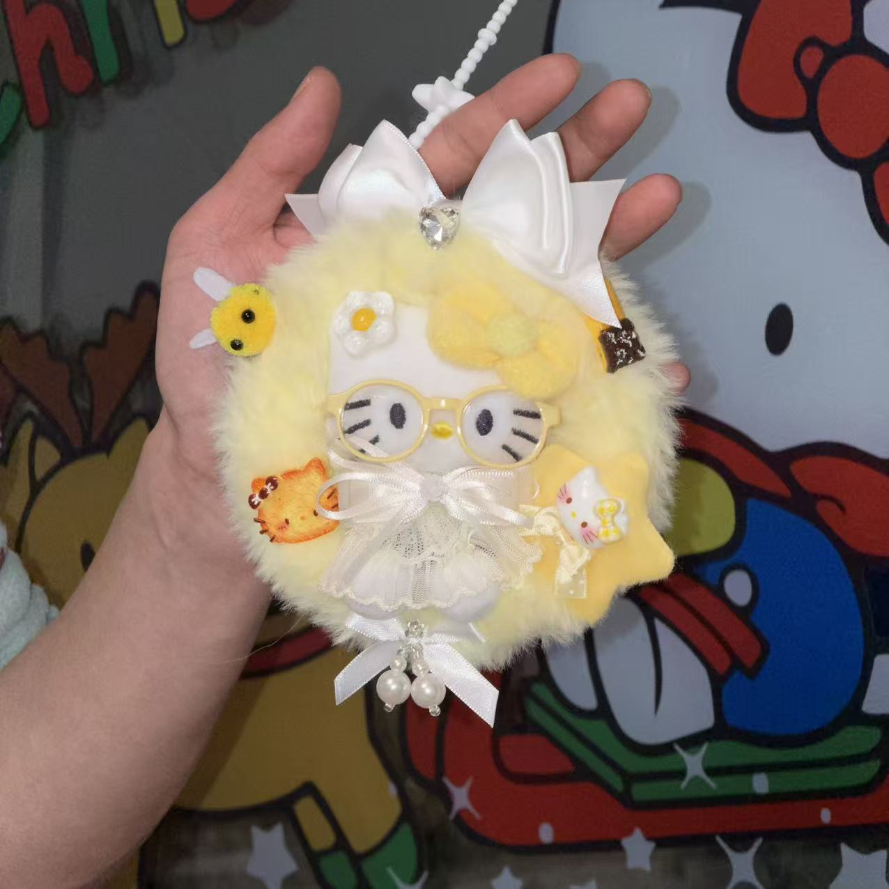 • 작은 파란색 kt [노란 리본 + 노란 모피 화환 스타일] -10cm