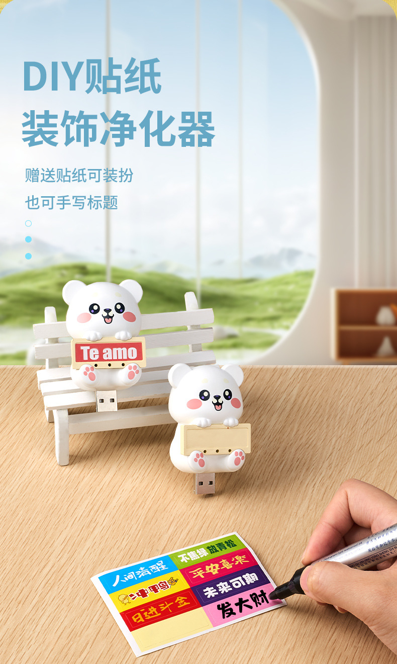 레드 팬더 오피스 데스크탑 귀여운 애완 동물 귀여운 소녀 사무실 선물 부정적인 이온 공기 청정기 플러그 앤 플레이스토어 가기