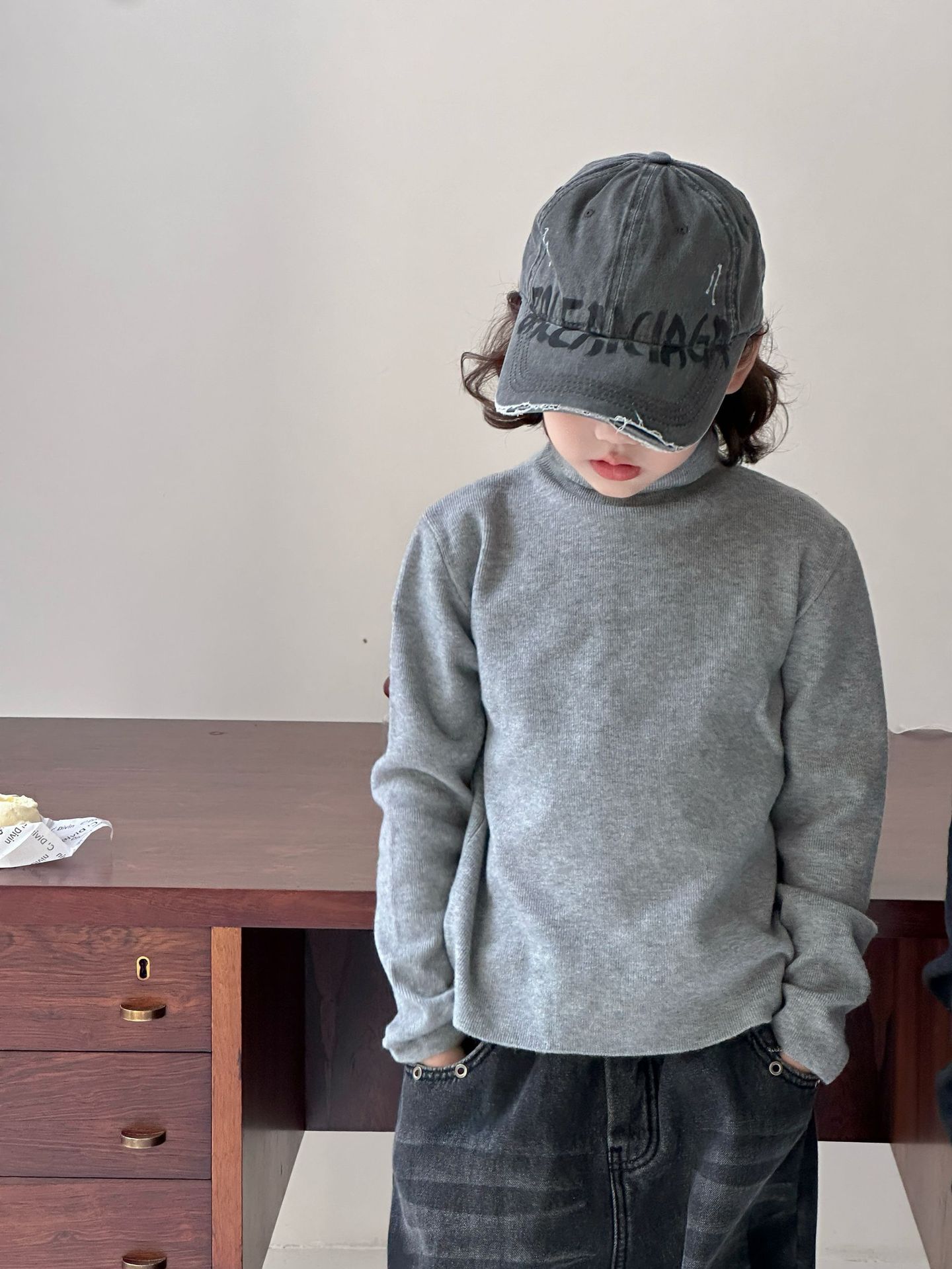 2025 가을 겨울 신상 한국 스타일 아동용 단색 다용도 하이넥 스웨터 남녀 아동용 니트 이너웨어스토어 가기