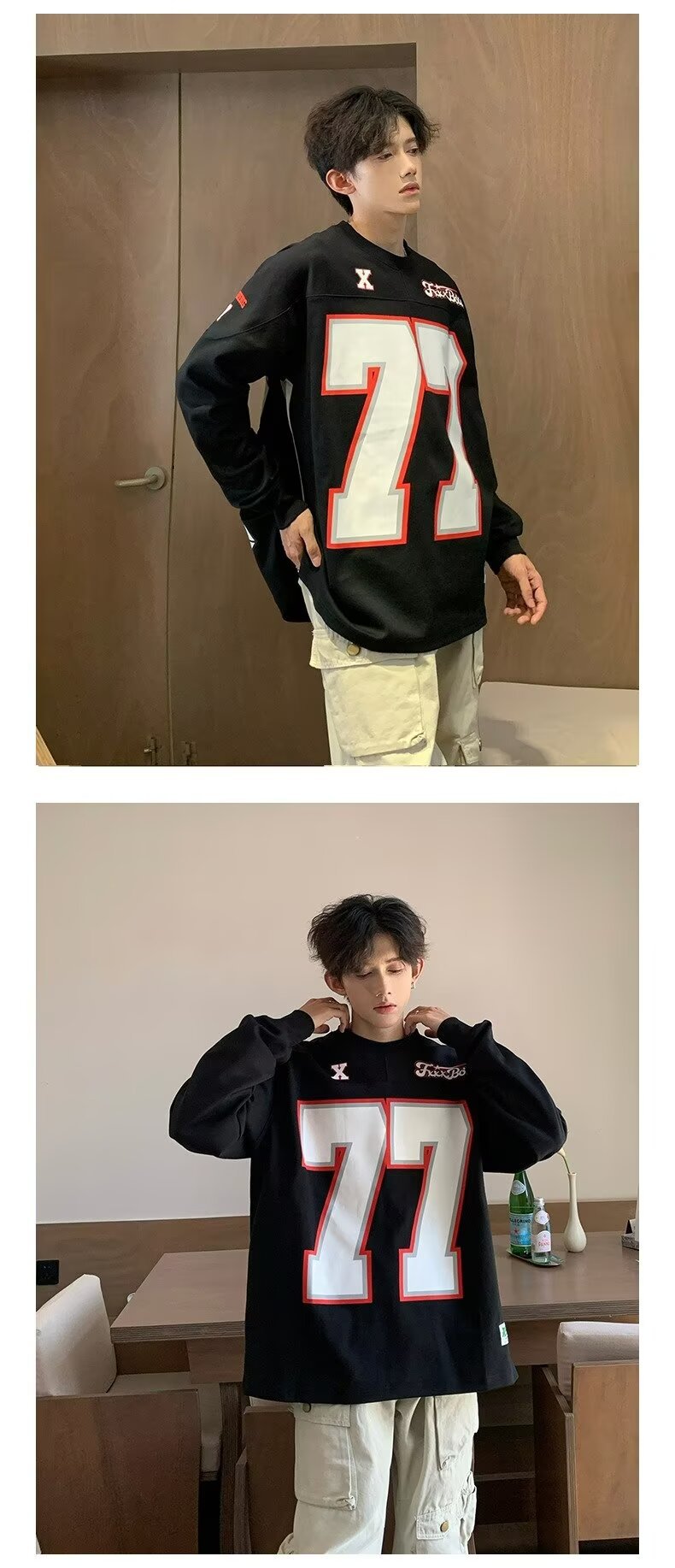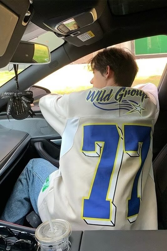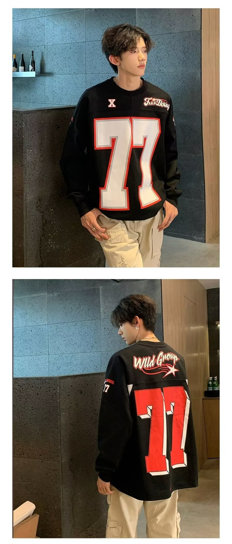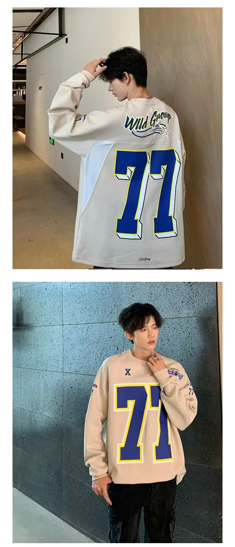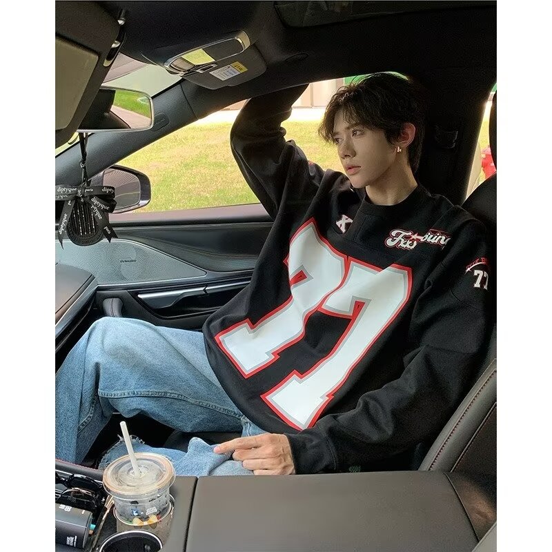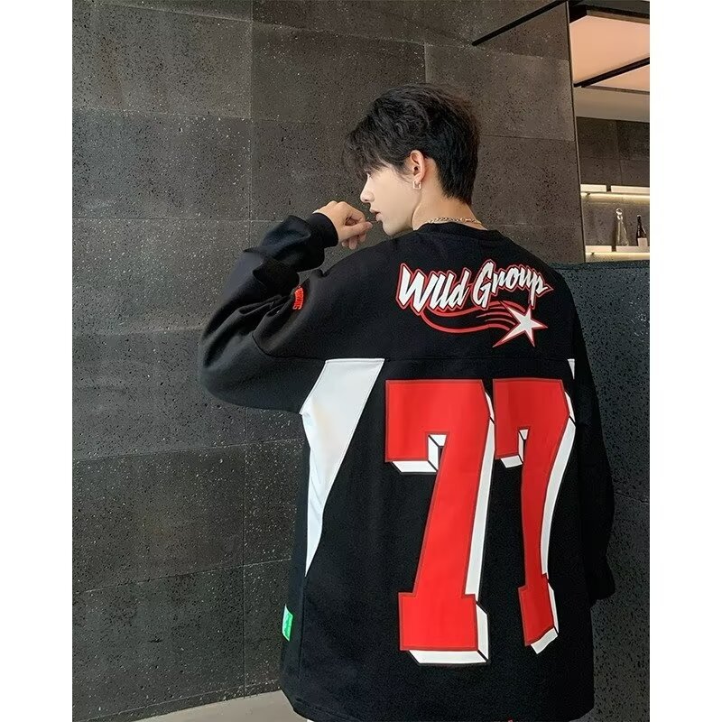 미국식 헤비 야구 크루 넥 스웨터 남자 트렌디 브랜드 레트로 77 번 아이스 하키웨어 스포츠 커플의 긴 소매베이스 셔츠스토어 가기
