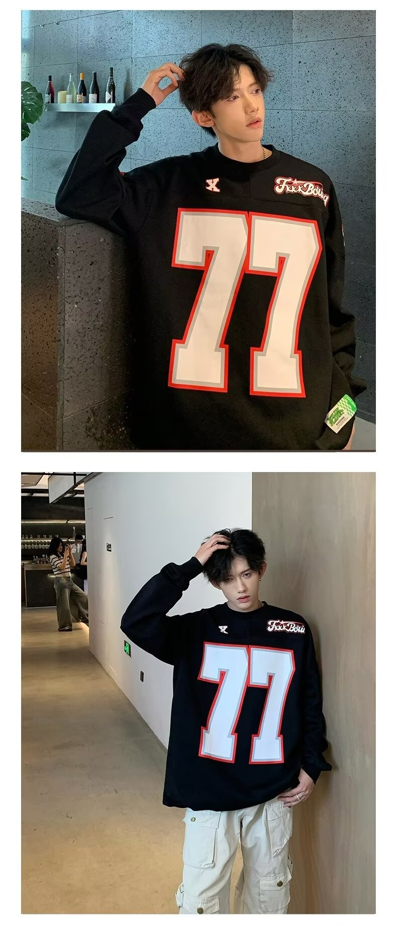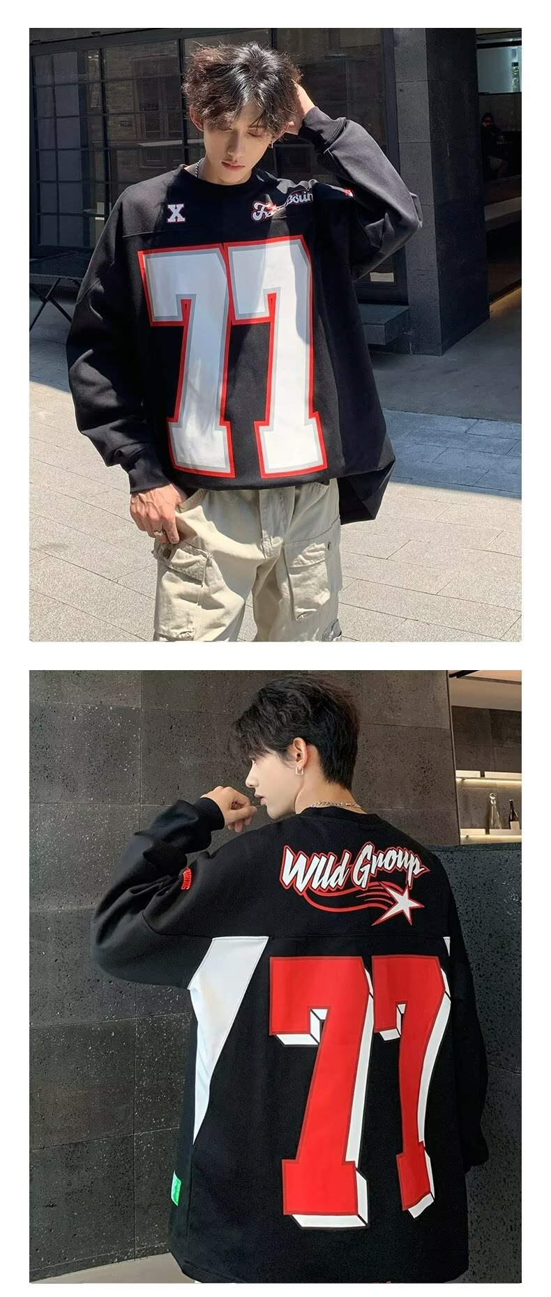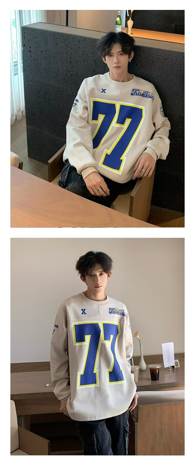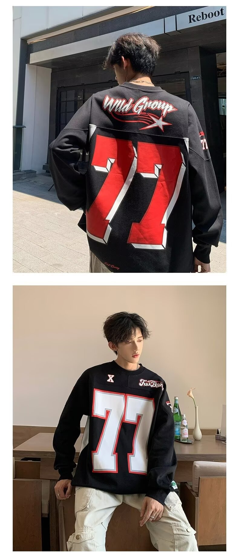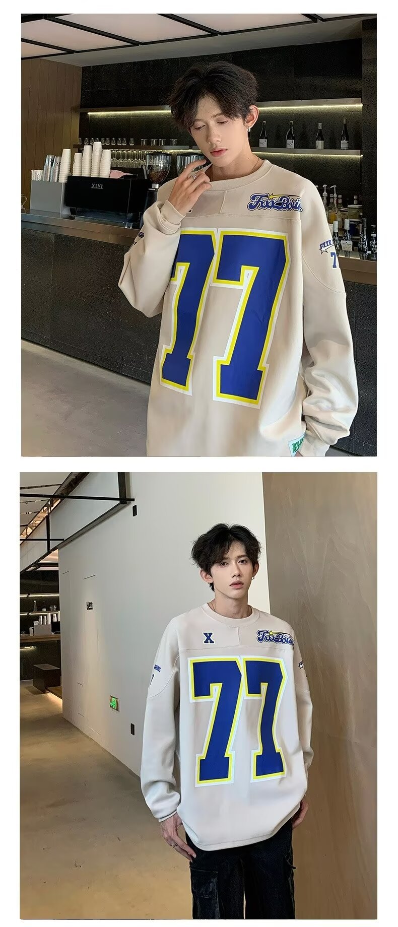미국식 헤비 야구 크루 넥 스웨터 남자 트렌디 브랜드 레트로 77 번 아이스 하키웨어 스포츠 커플의 긴 소매베이스 셔츠스토어 가기