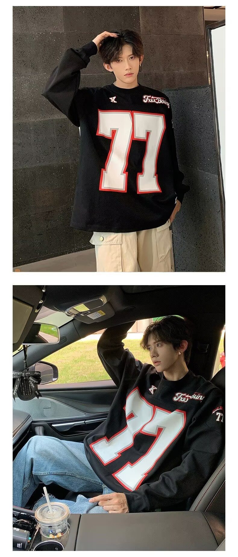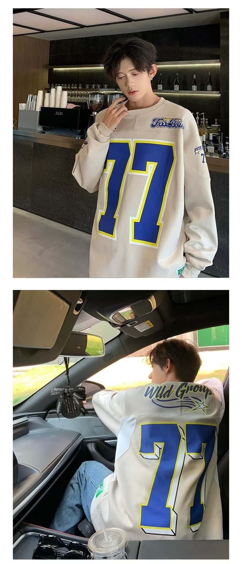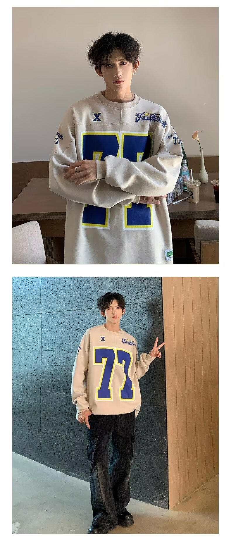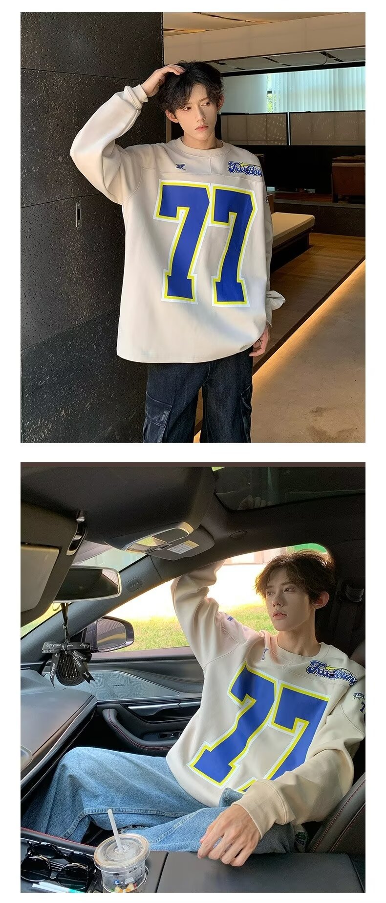 미국식 헤비 야구 크루 넥 스웨터 남자 트렌디 브랜드 레트로 77 번 아이스 하키웨어 스포츠 커플의 긴 소매베이스 셔츠스토어 가기