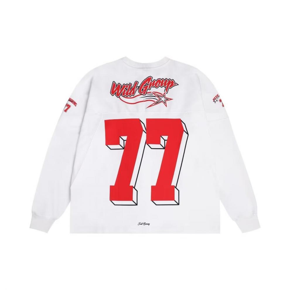 미국식 헤비 야구 크루 넥 스웨터 남자 트렌디 브랜드 레트로 77 번 아이스 하키웨어 스포츠 커플의 긴 소매베이스 셔츠