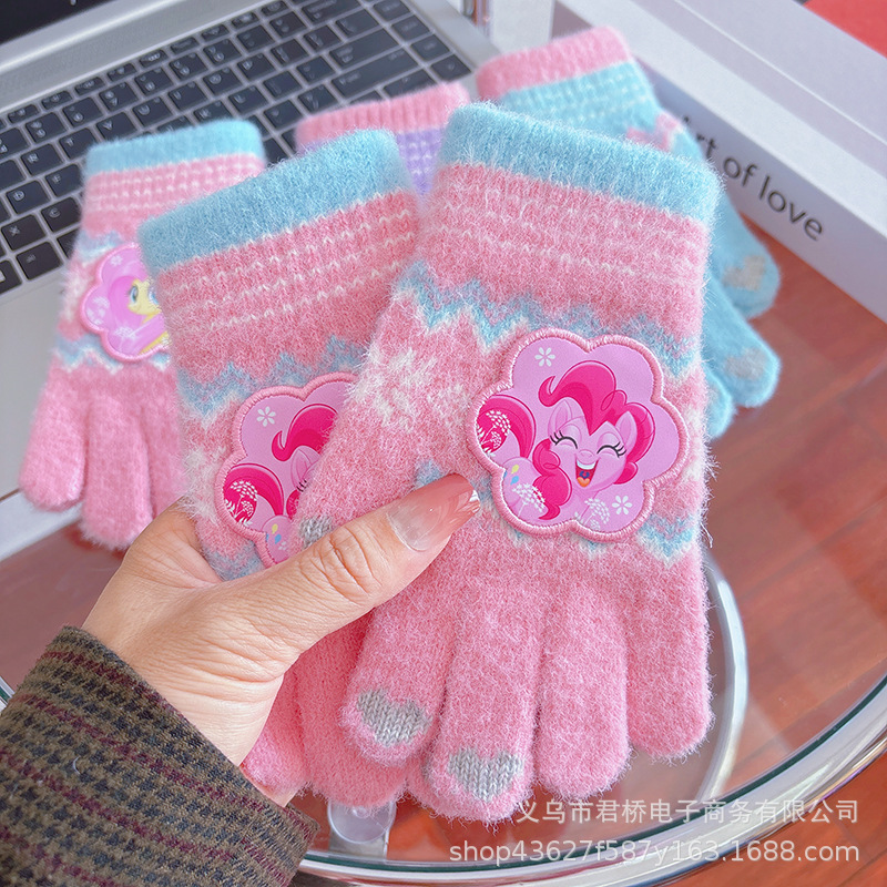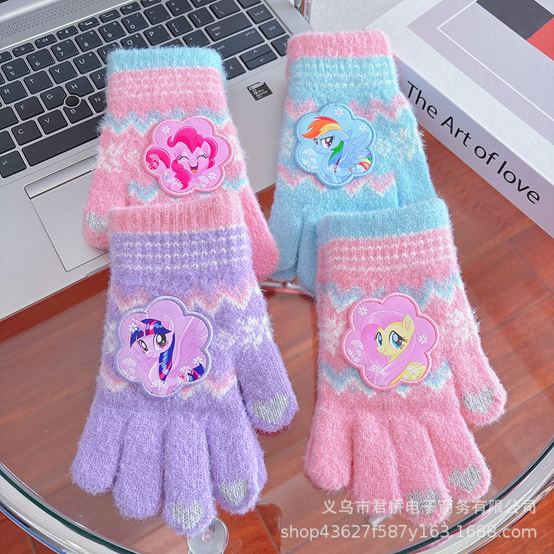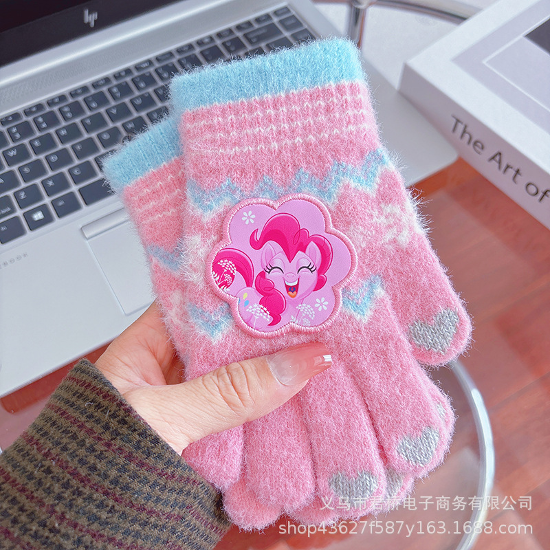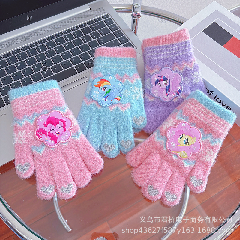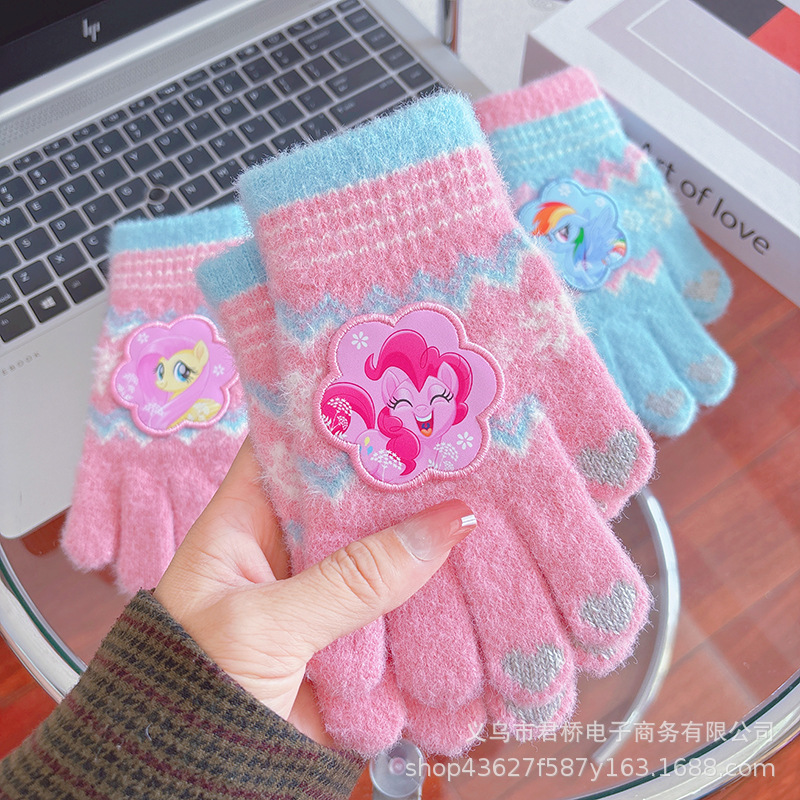 정품 조랑말 조랑말 어린이 장갑 겨울 따뜻한 방한 소녀 귀여운 만화 다섯 손가락 학생 새로운 손가락
