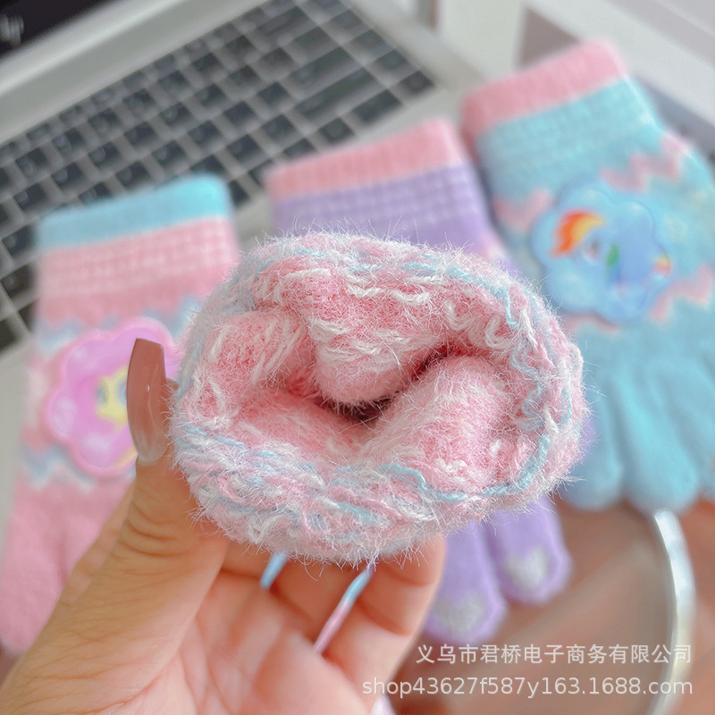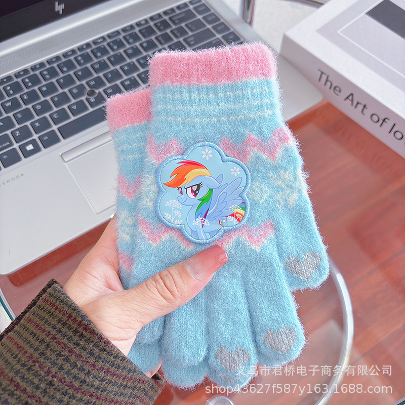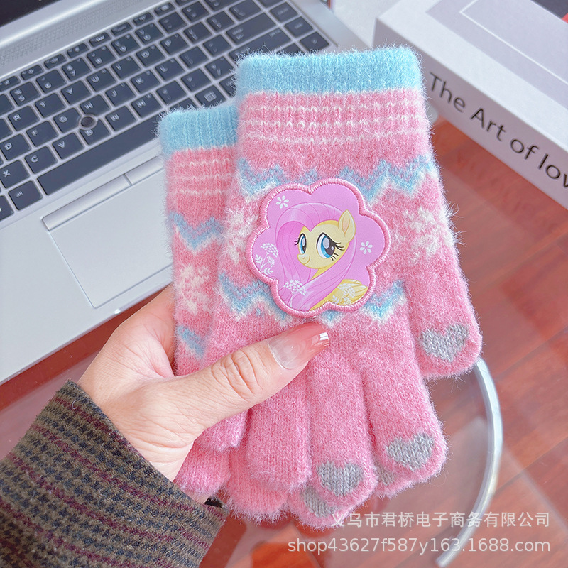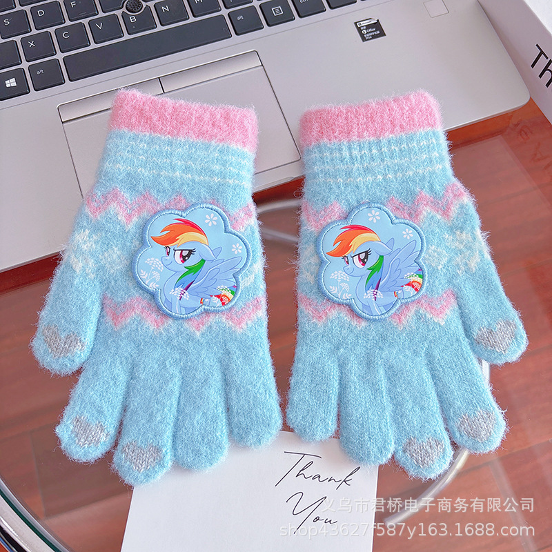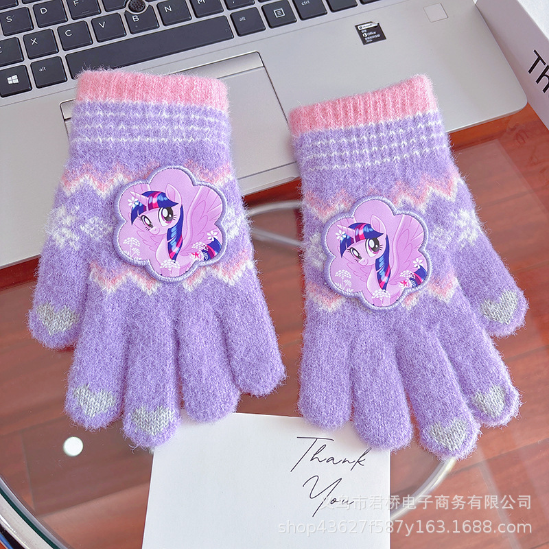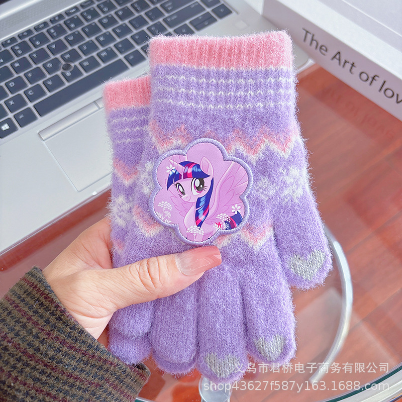 정품 조랑말 조랑말 어린이 장갑 겨울 따뜻한 방한 소녀 귀여운 만화 다섯 손가락 학생 새로운 손가락
