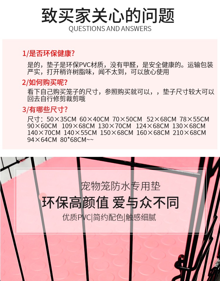 애완 동물 잠자는 매트 고양이 케이지 매트 개 케이지 매트 안티 카드 발 방수 번식 케이지 PVC 풋 플레이트 이동식 및 세척 할 수없는 끈적 끈적한 머리카락스토어 가기