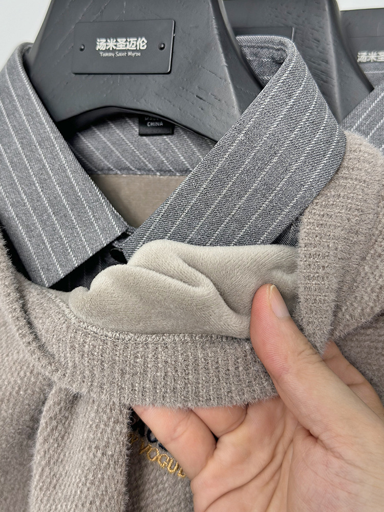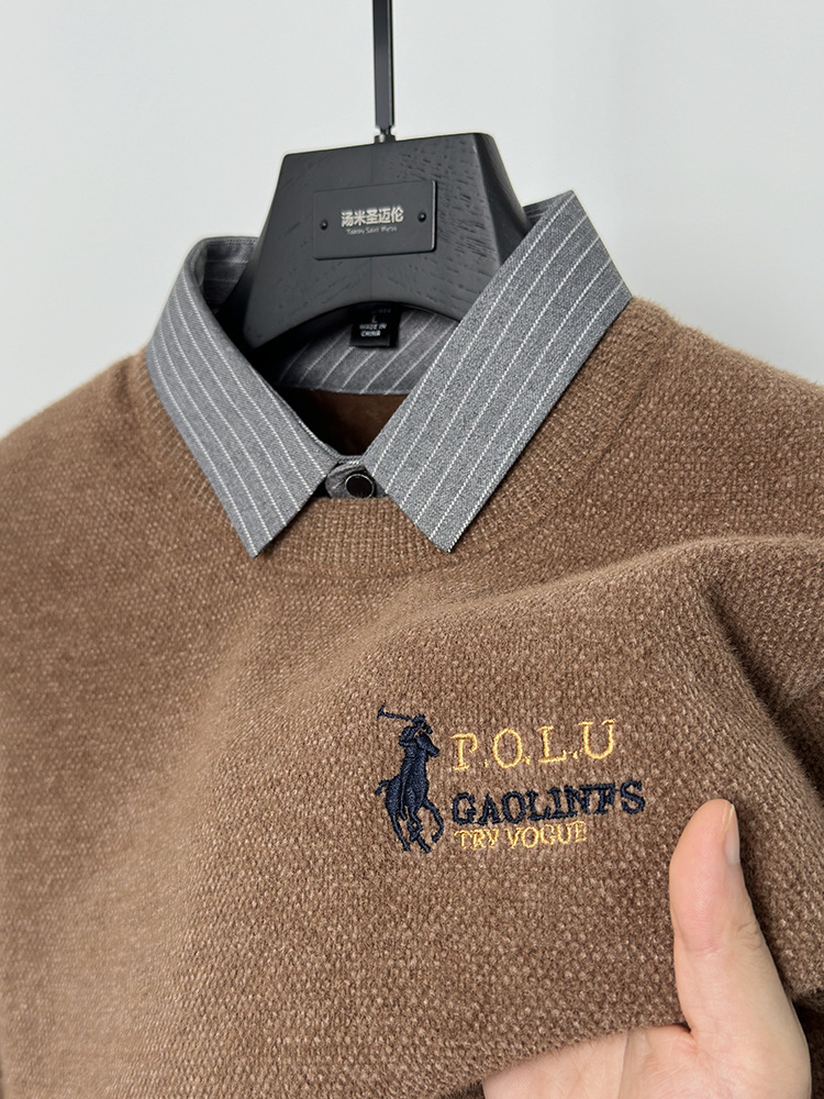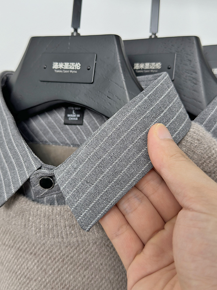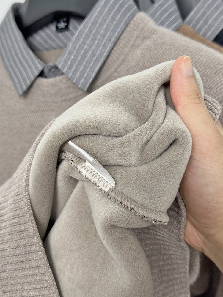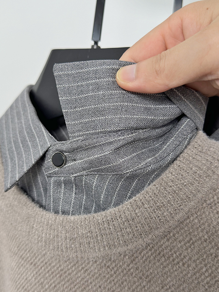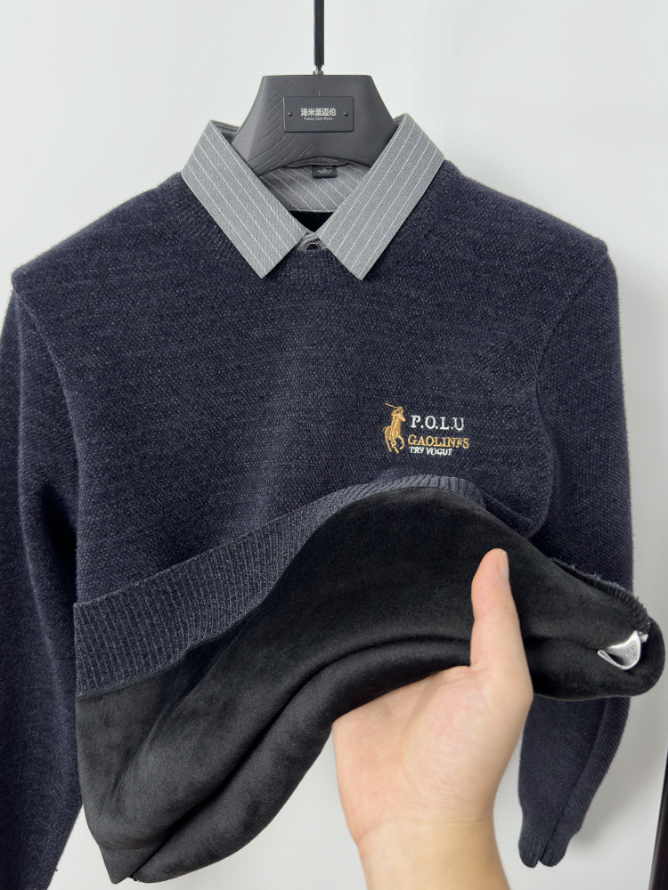 원피스 벨벳 기모 두꺼운 남성용 스웨터 새 남성용 셔츠 칼라 가짜 투피스 겨울 따뜻한 니트 베이스 셔츠스토어 가기