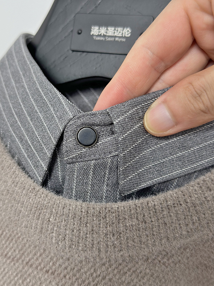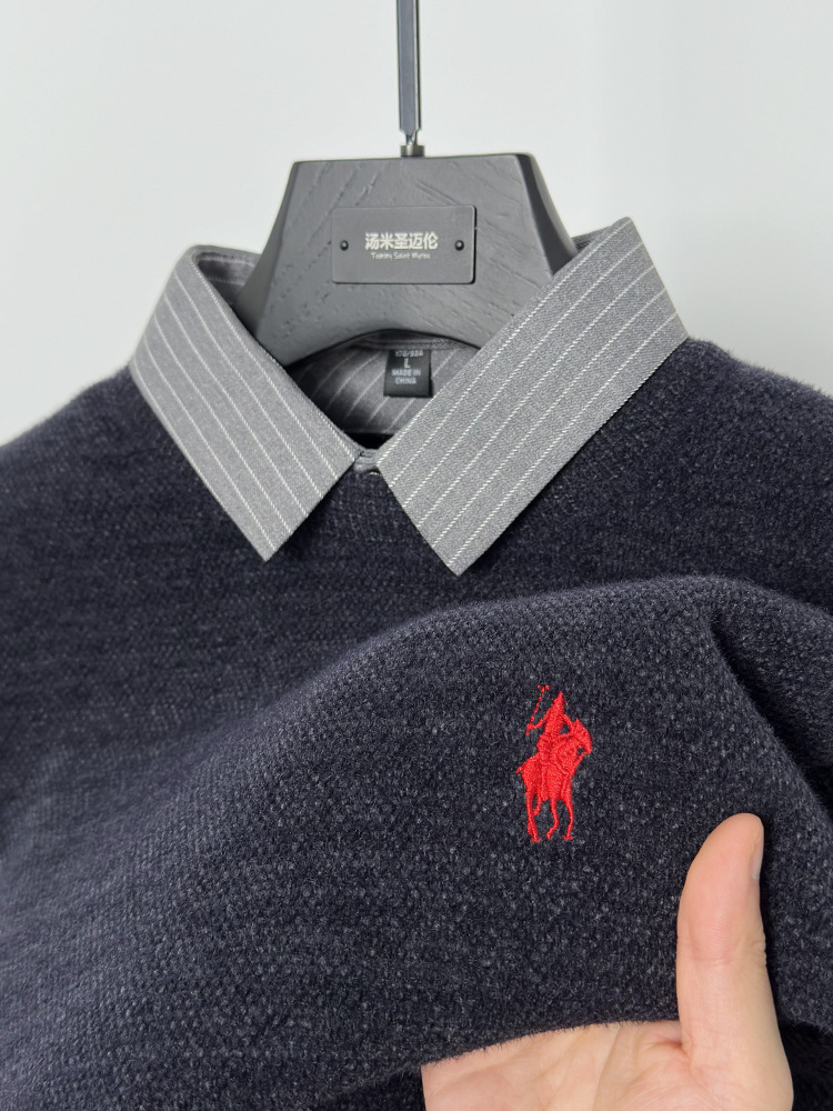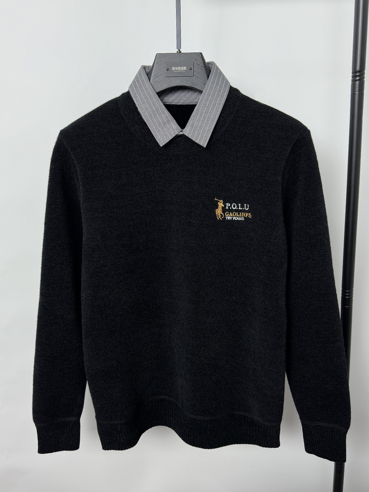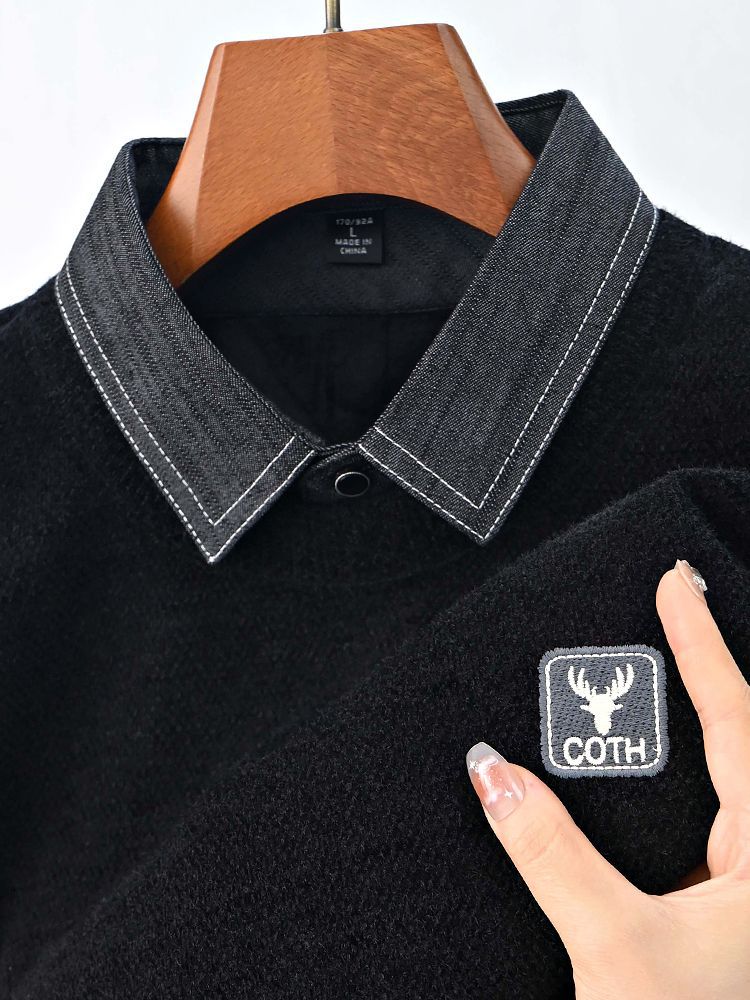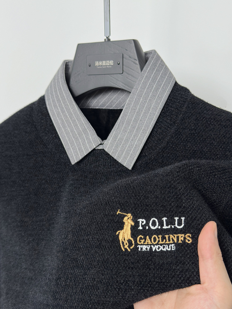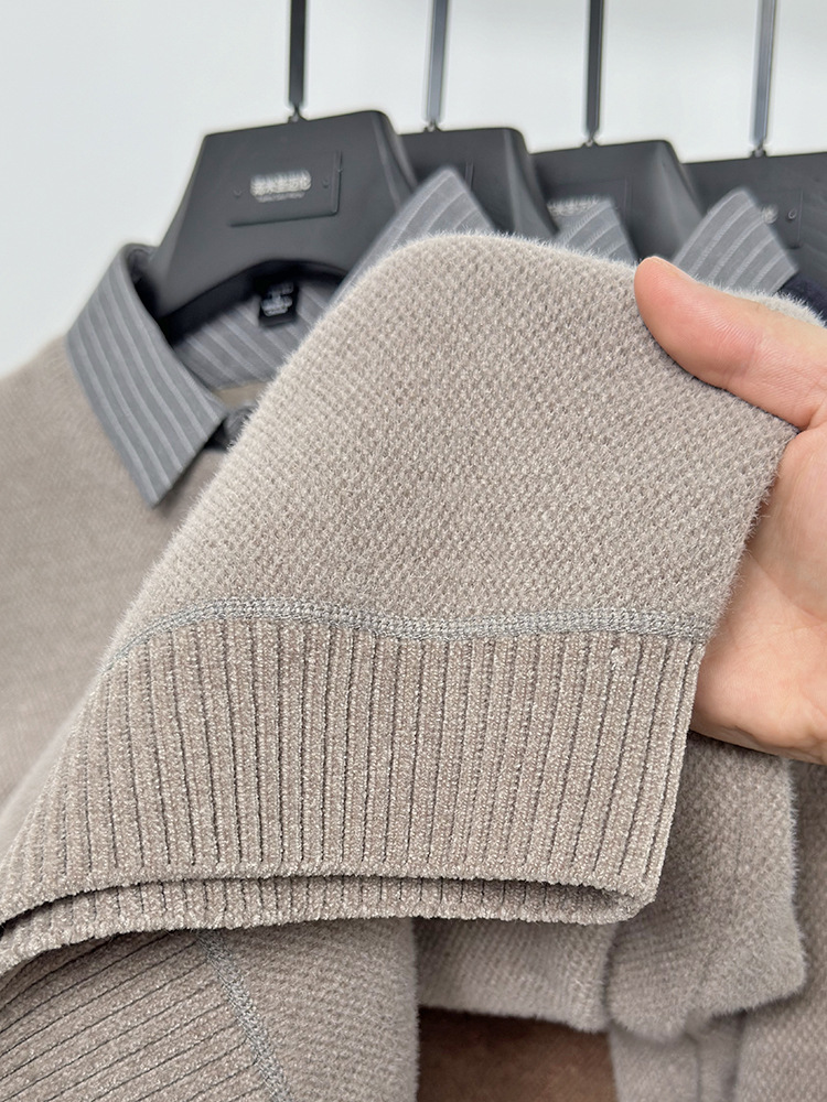 원피스 벨벳 기모 두꺼운 남성용 스웨터 새 남성용 셔츠 칼라 가짜 투피스 겨울 따뜻한 니트 베이스 셔츠스토어 가기