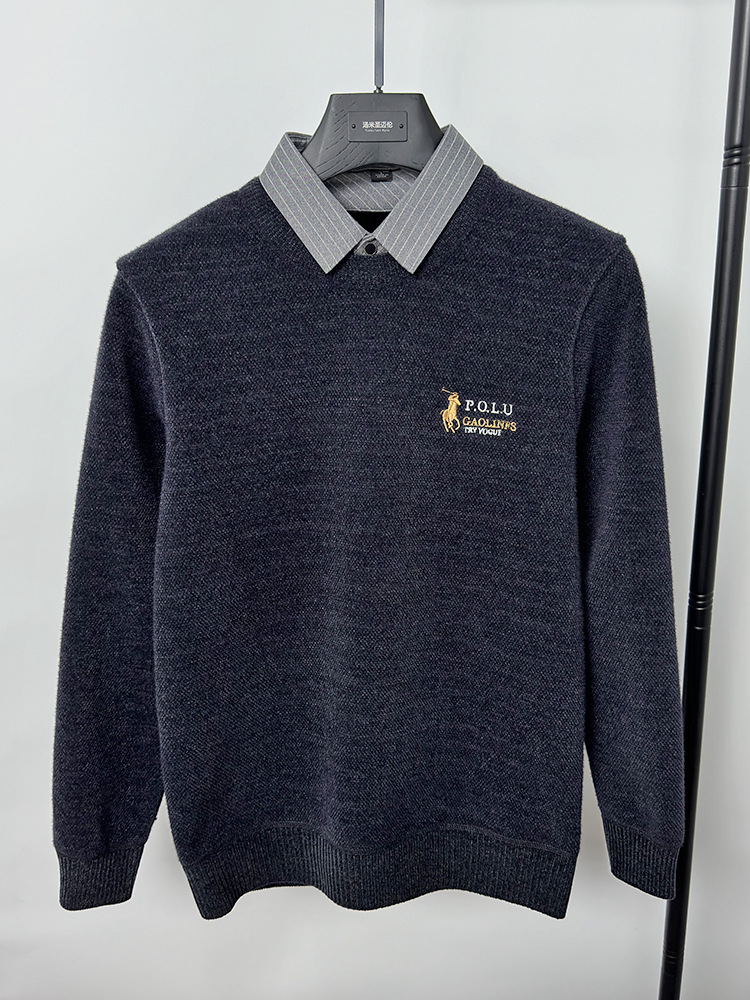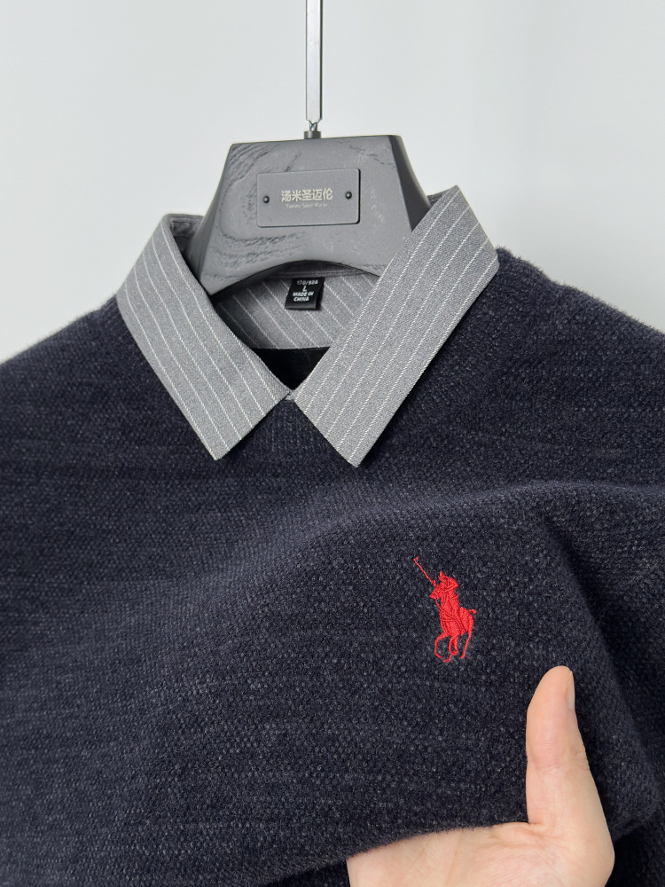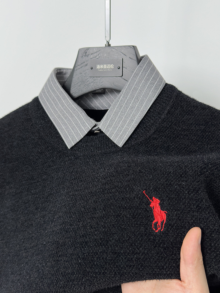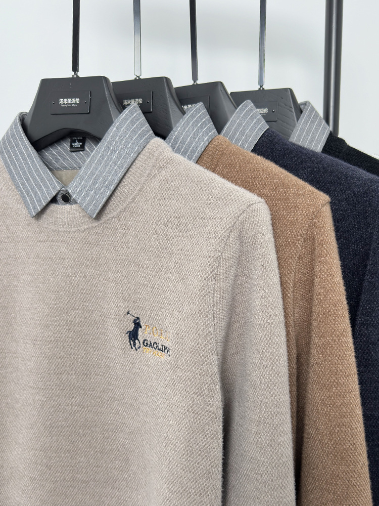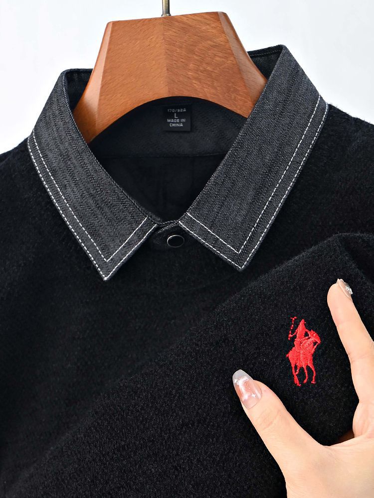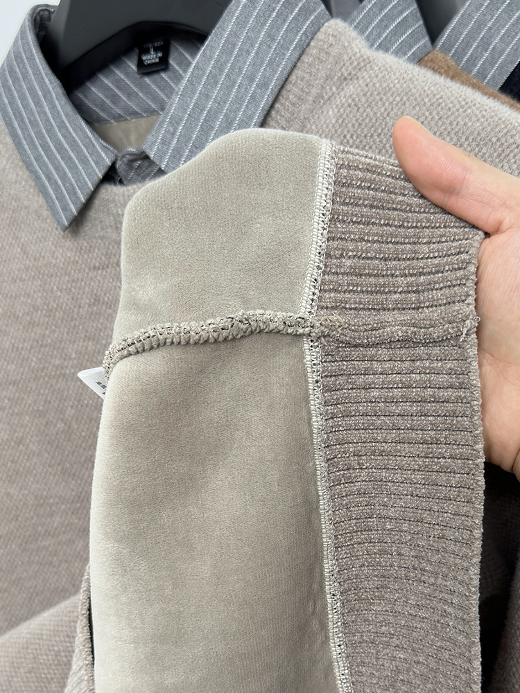 원피스 벨벳 기모 두꺼운 남성용 스웨터 새 남성용 셔츠 칼라 가짜 투피스 겨울 따뜻한 니트 베이스 셔츠스토어 가기