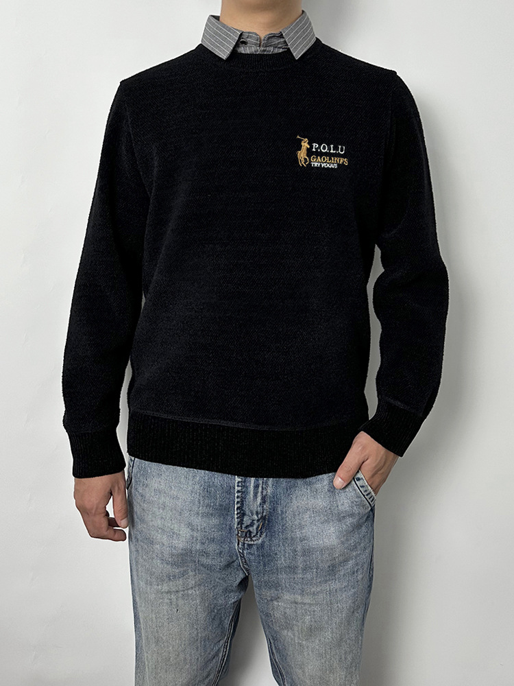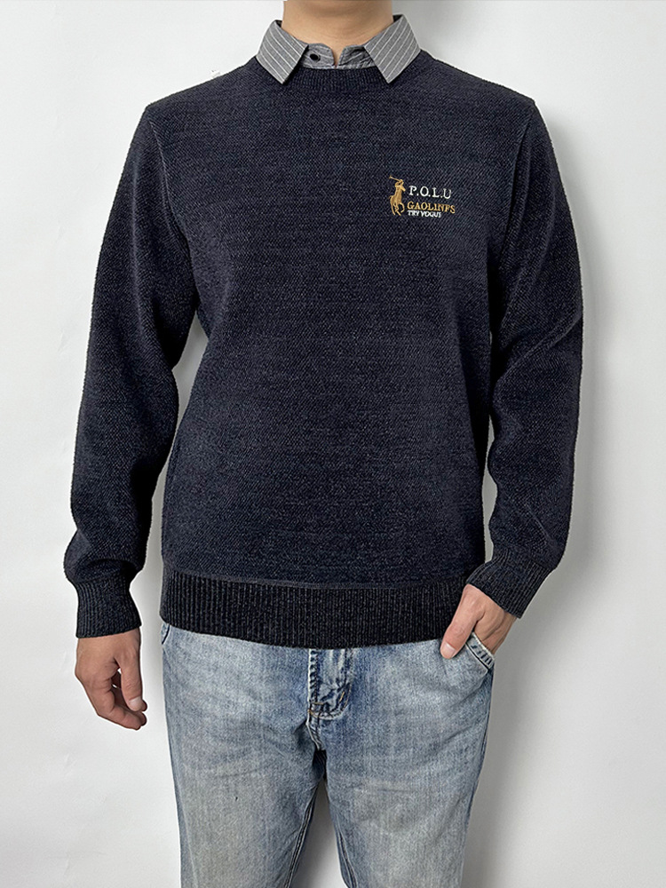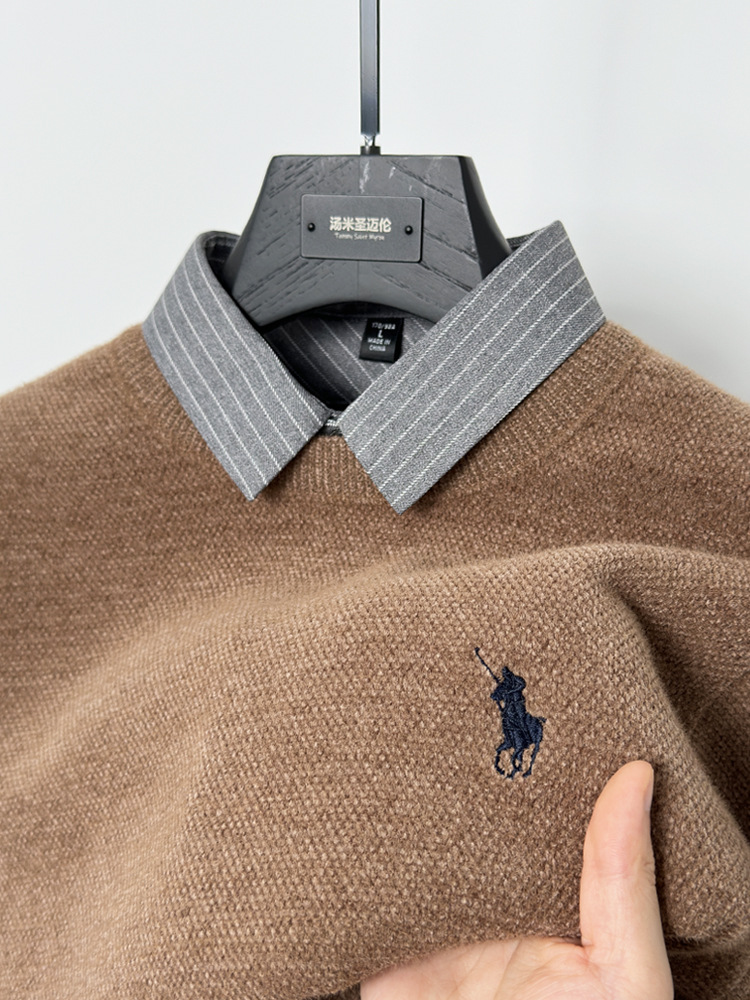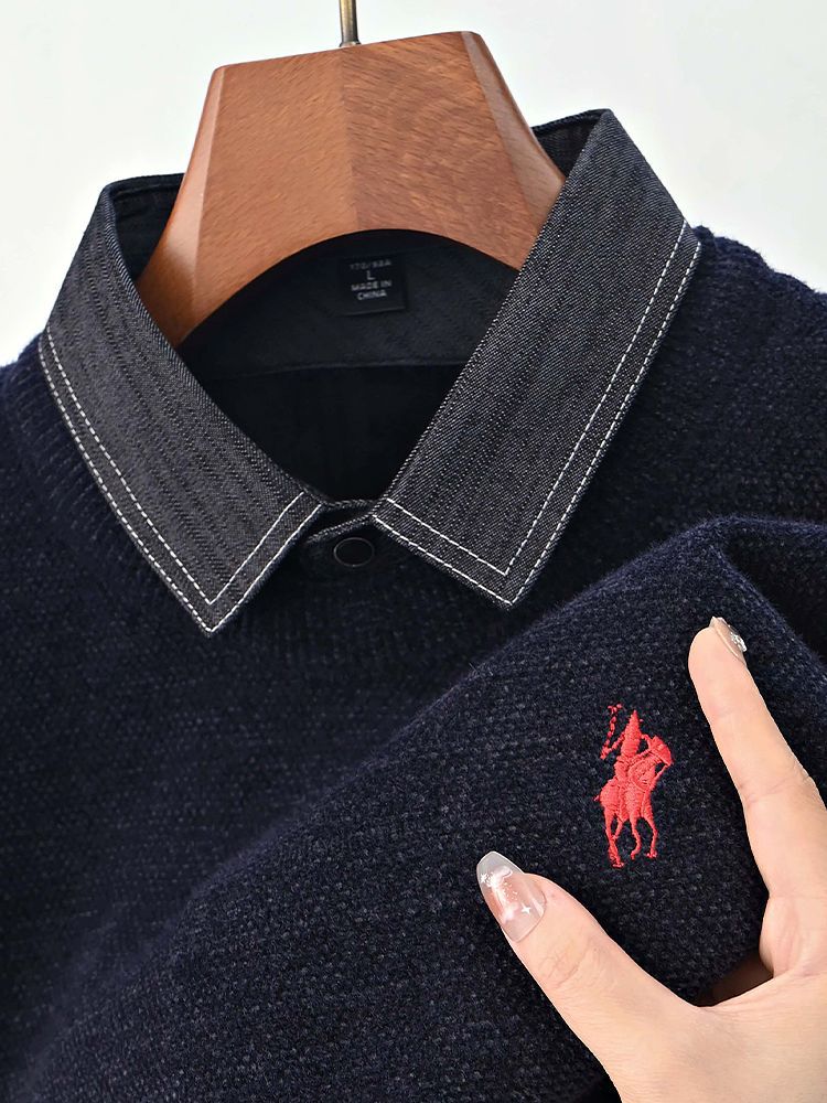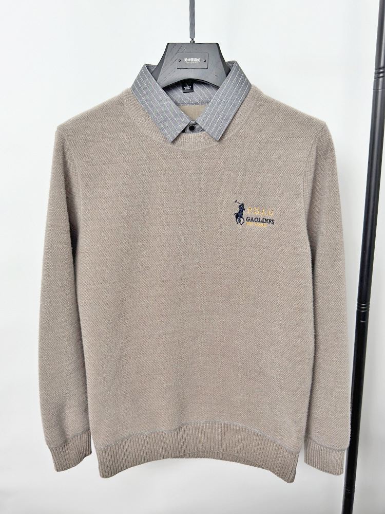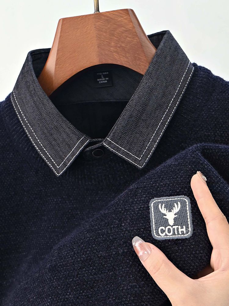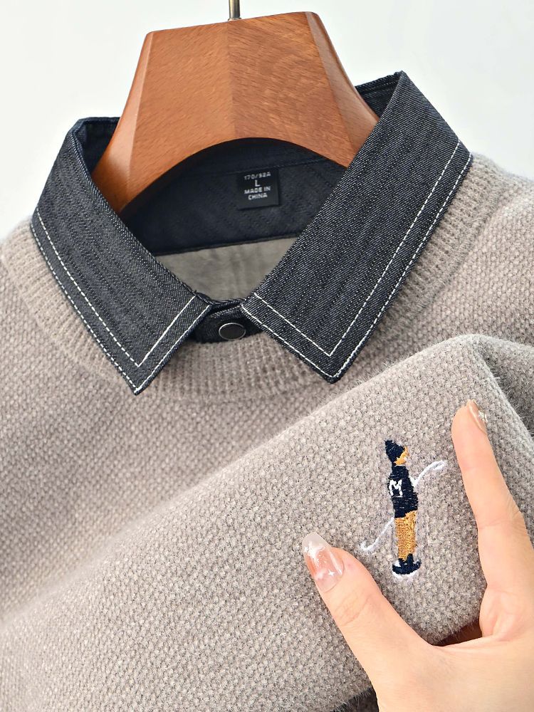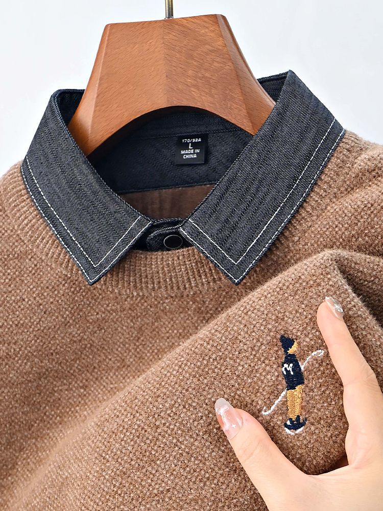 원피스 벨벳 기모 두꺼운 남성용 스웨터 새 남성용 셔츠 칼라 가짜 투피스 겨울 따뜻한 니트 베이스 셔츠