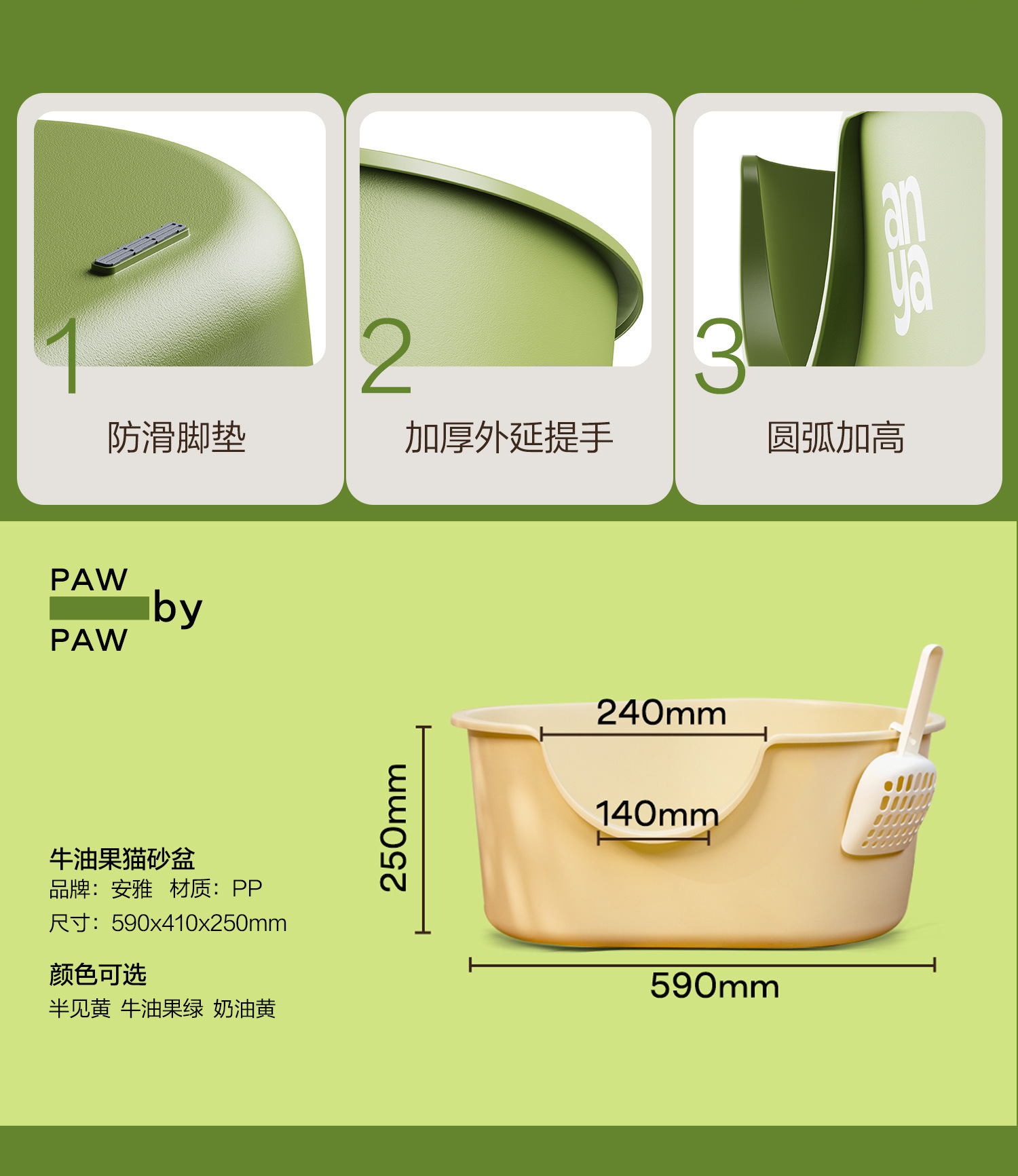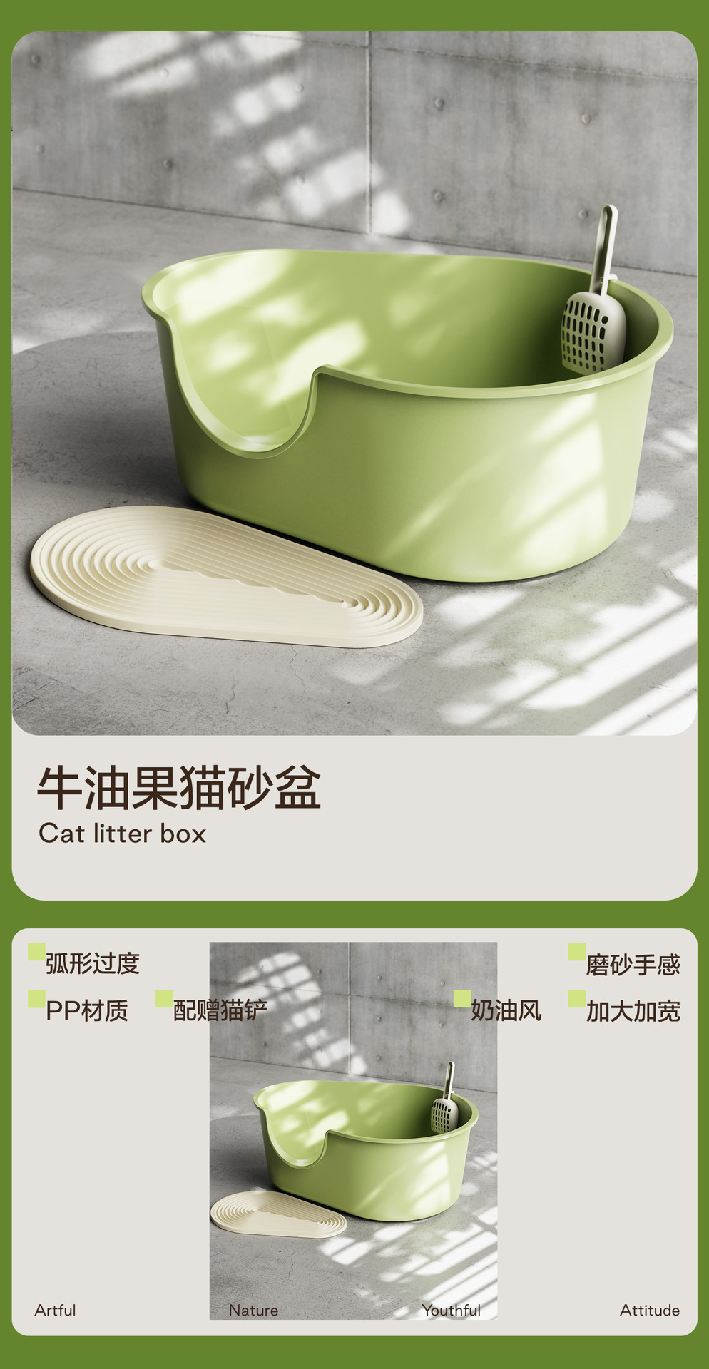 • 아보카도 그린 고양이 배변 상자 [고양이 배변 매트 없음]