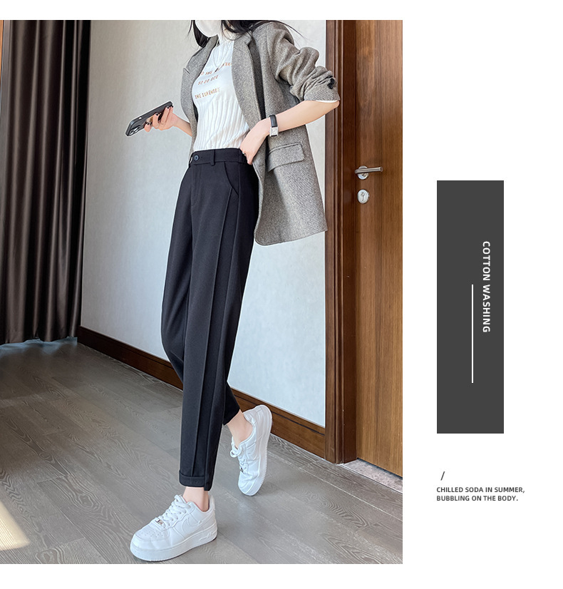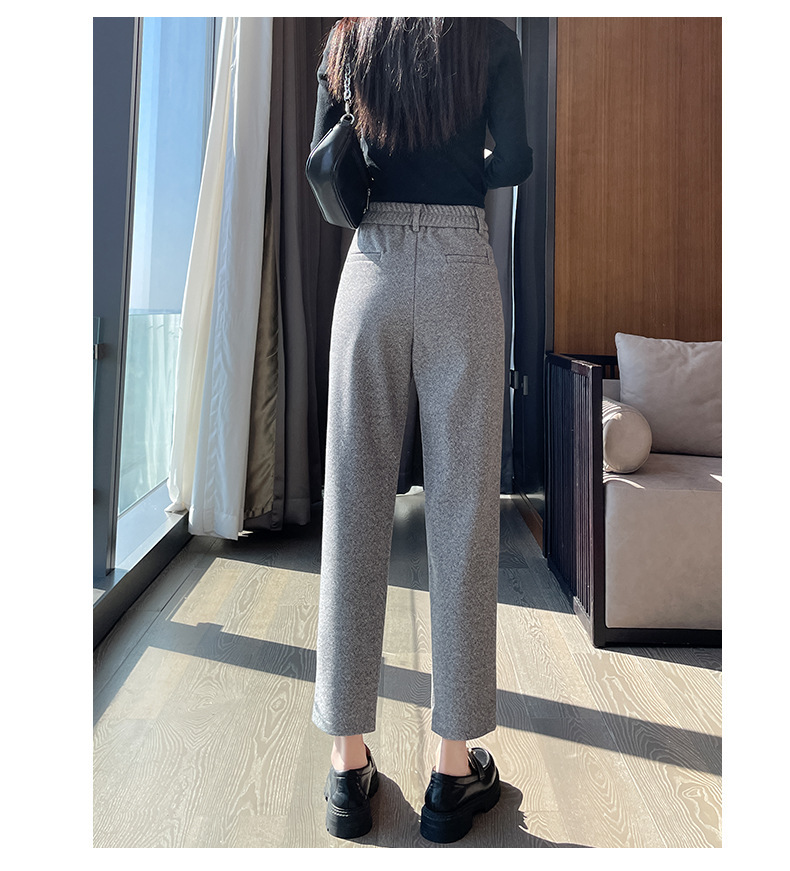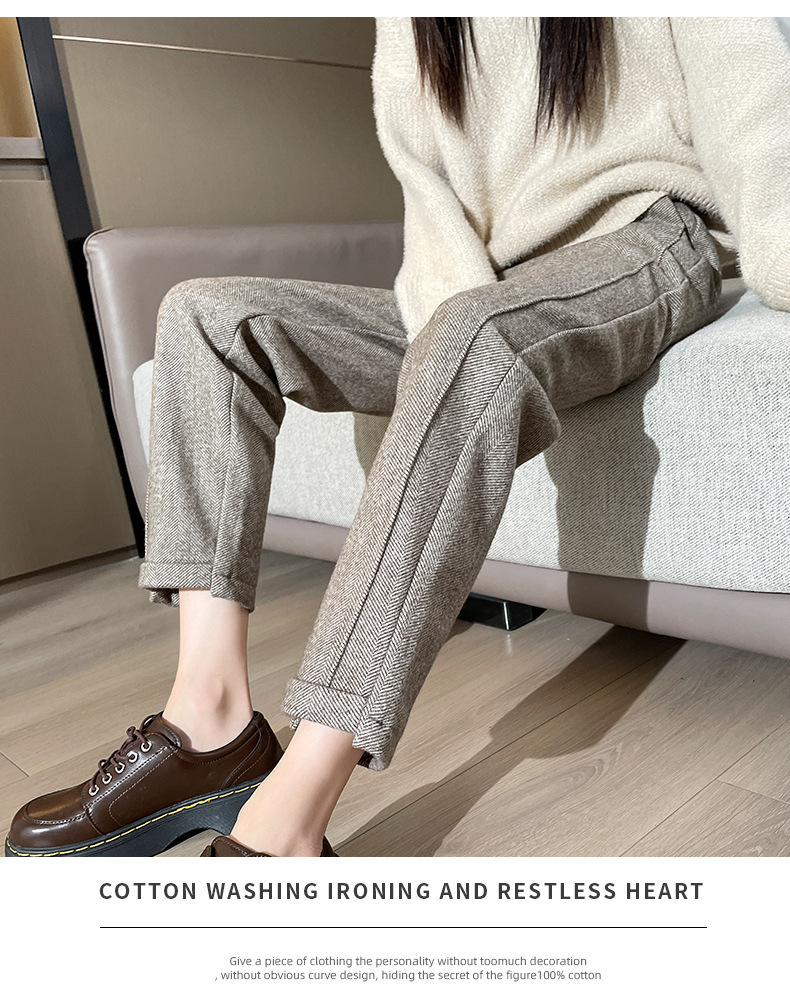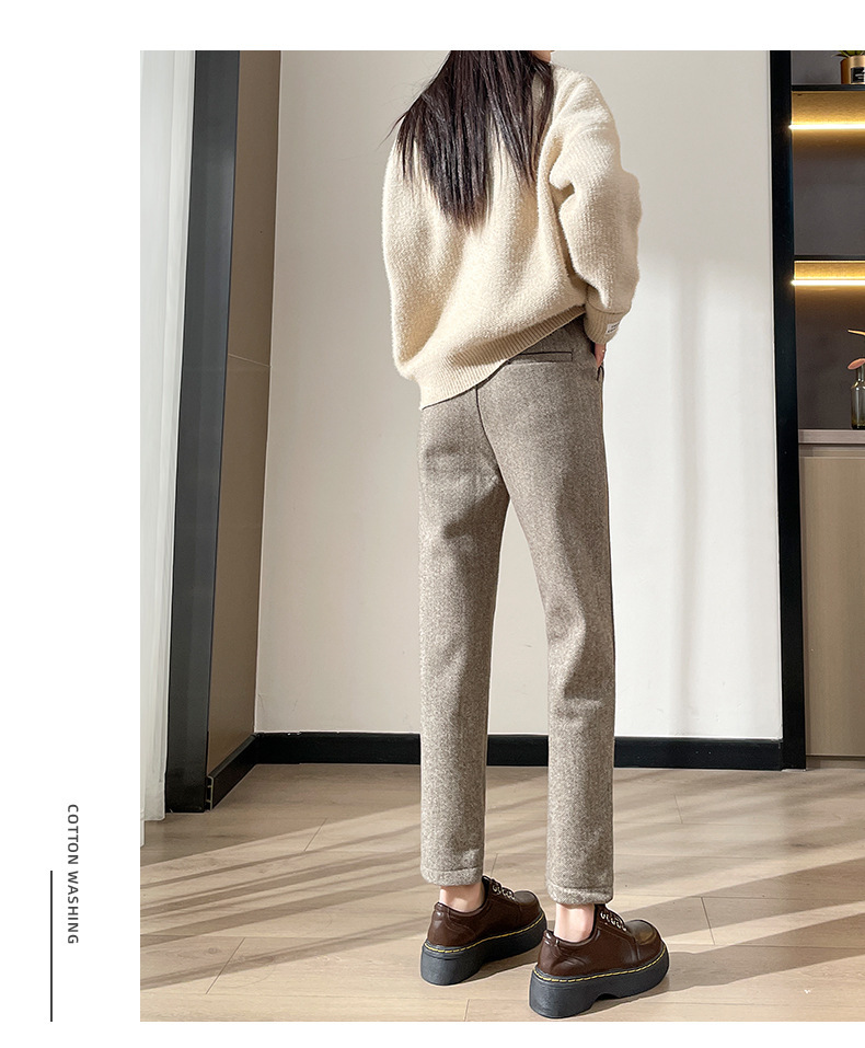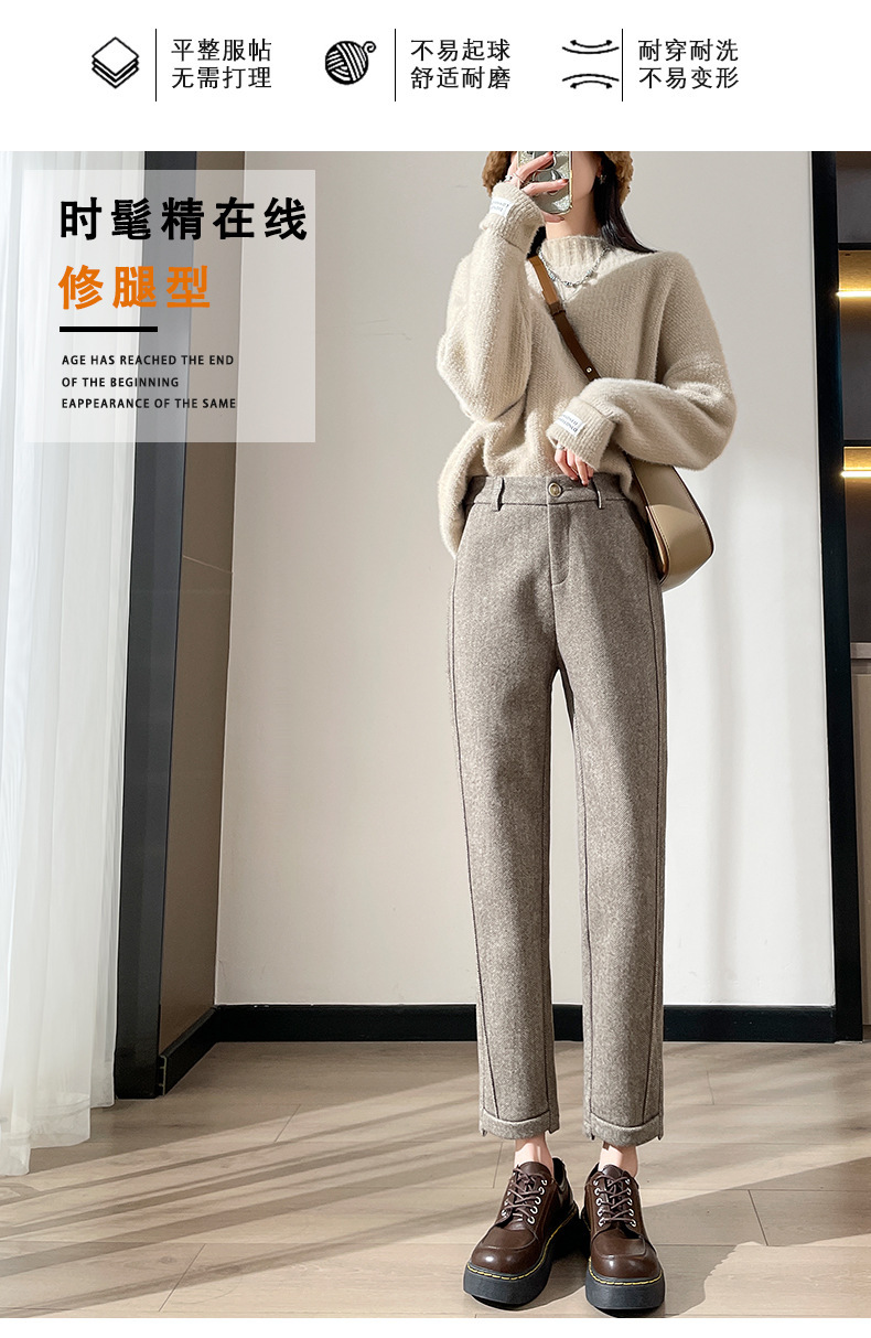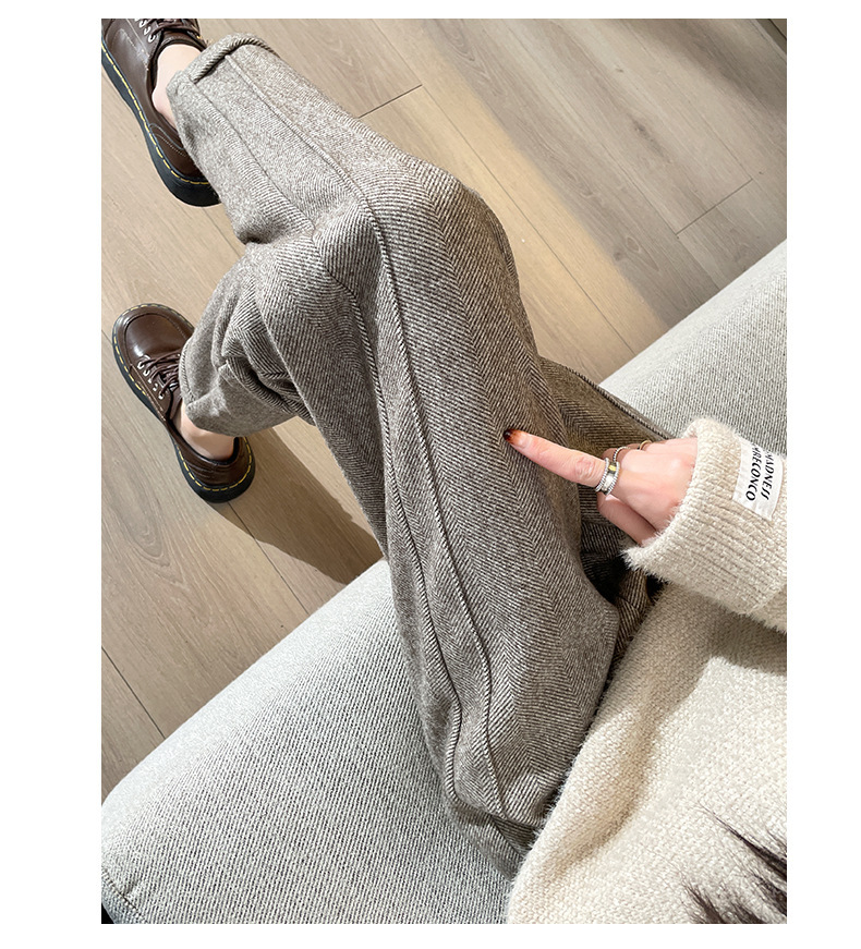 다크 브라운 모직 스트레이트 바지 여성용 가을과 겨울 새로운 높은 허리 느슨한 슬리밍 스티칭 여성용 두꺼운 자른 파이프 바지스토어 가기