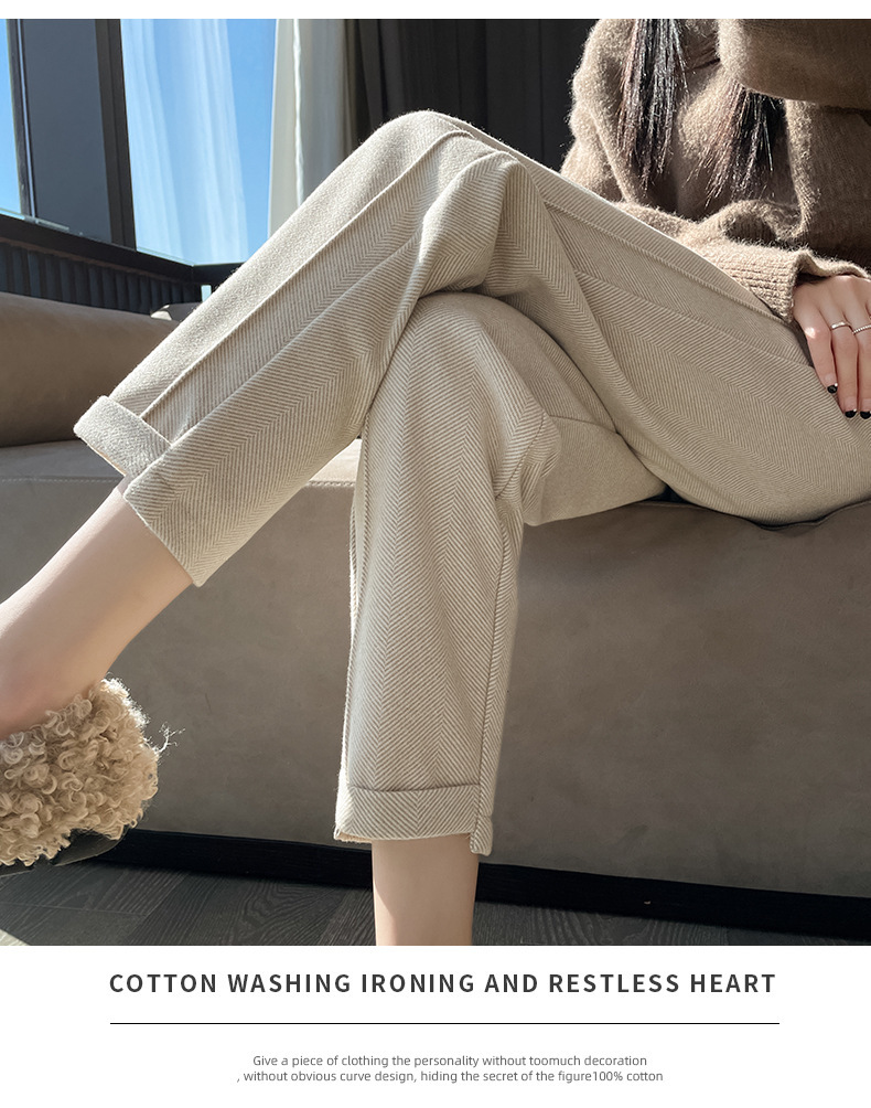 다크 브라운 모직 스트레이트 바지 여성용 가을과 겨울 새로운 높은 허리 느슨한 슬리밍 스티칭 여성용 두꺼운 자른 파이프 바지