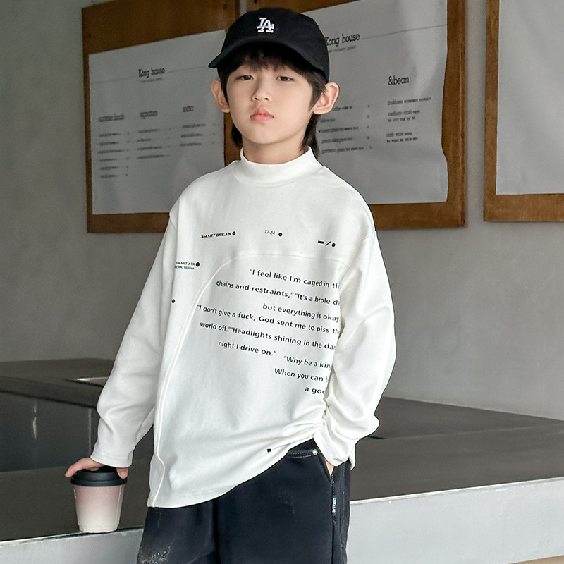 남아용 베이스 레이어 가을 겨울 2025 신상 겨울 아동복 반하이넥 독일산 벨벳 긴팔 티셔츠 남아 겨울복 T