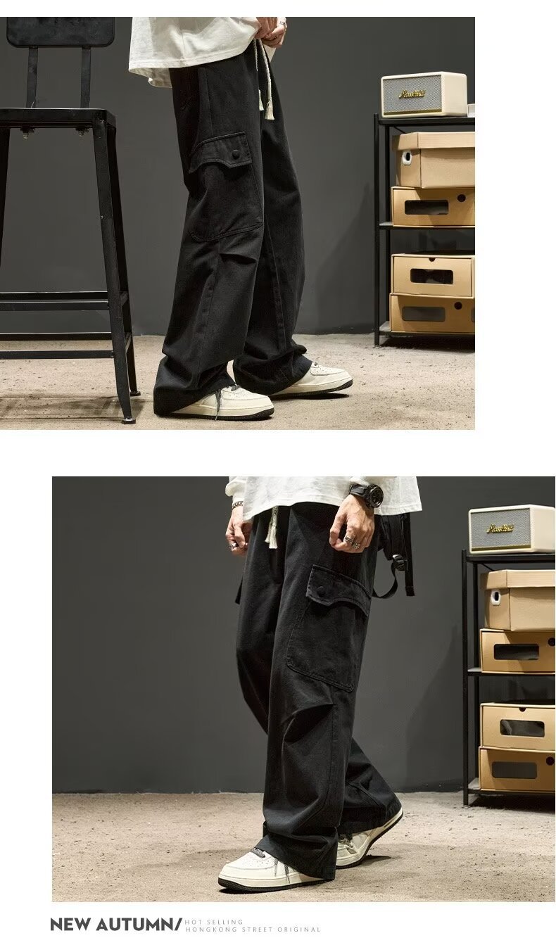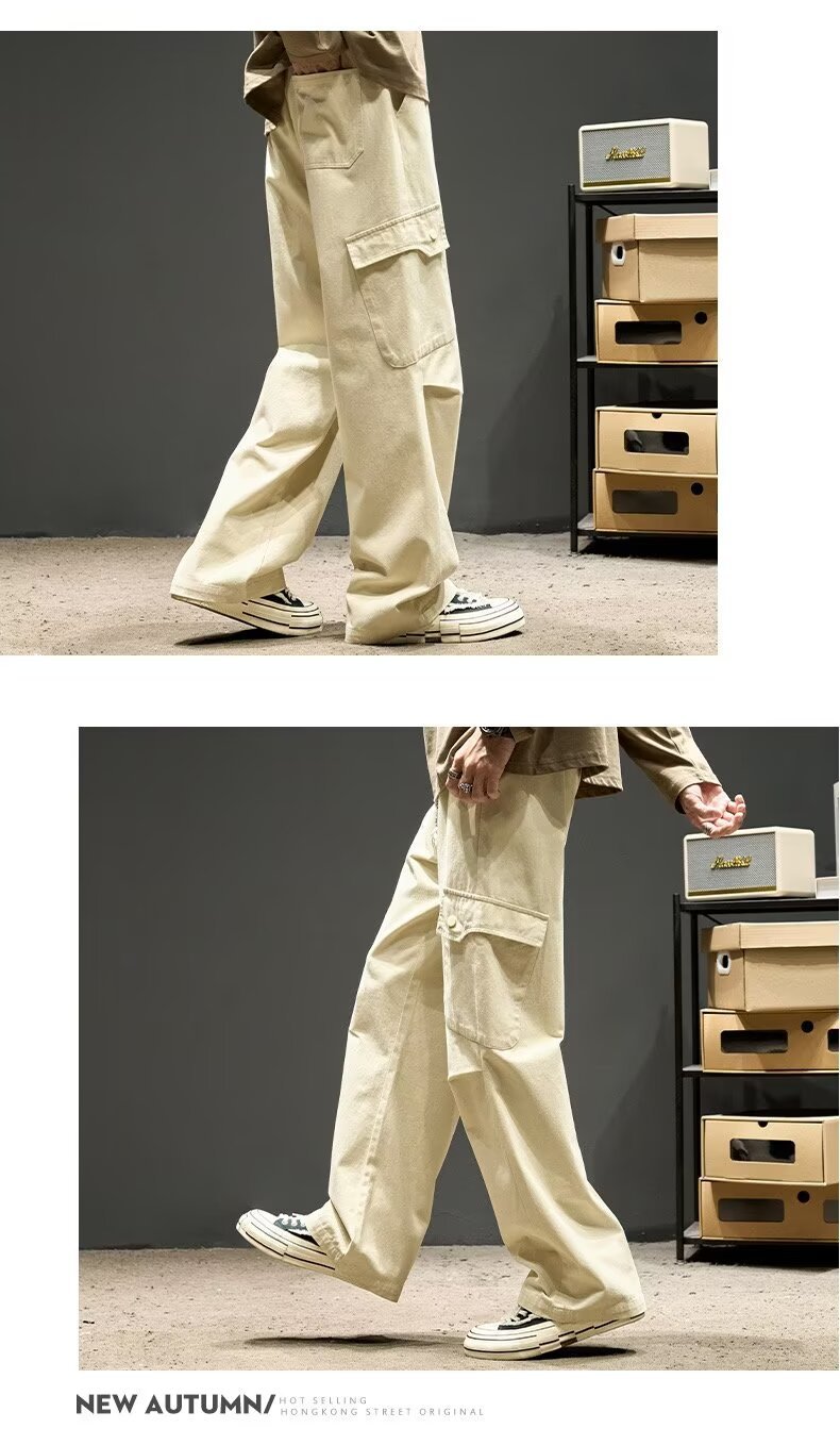 바지 크레인 바지 남자 봄과 가을 느슨한 스트레이트 레그 낙하산 바지 유행 정사이즈 십대 매일 느슨한 허리 스트레이트 레그 바지스토어 가기