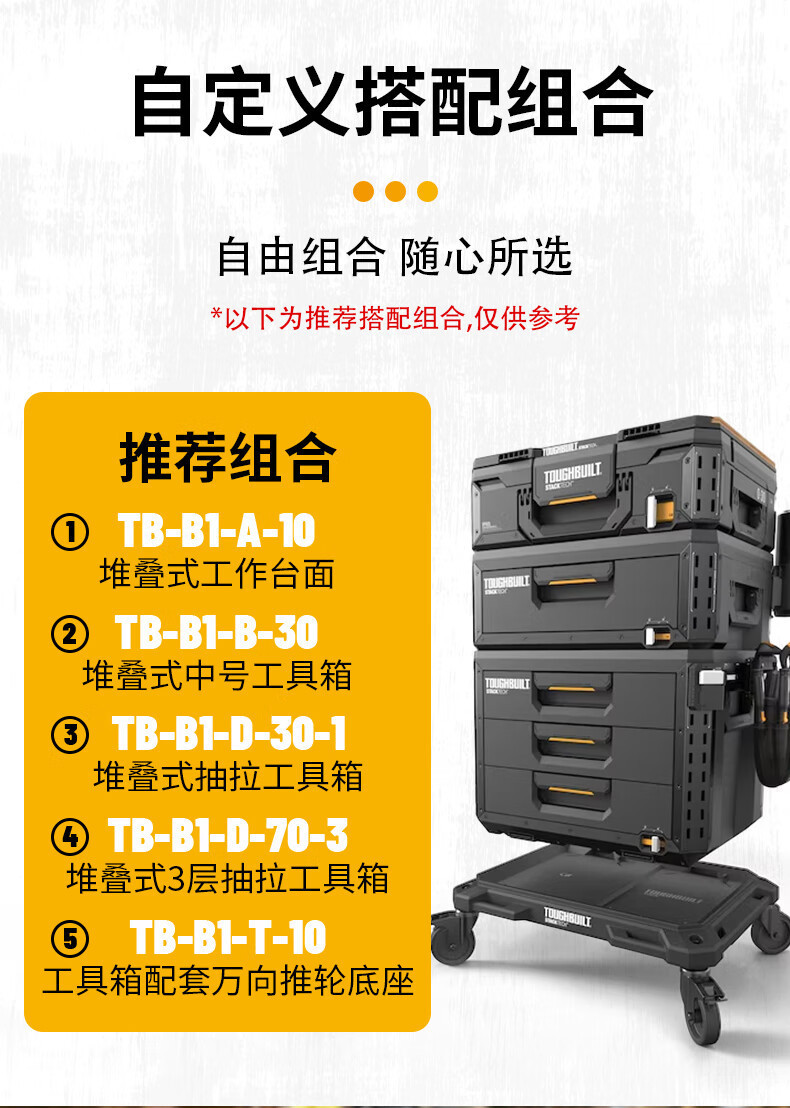 TOUGHBUBILT 토퍼 도구 상자 결합 된 중간 저장 상자 차 휴대용 TB-B1-O-10