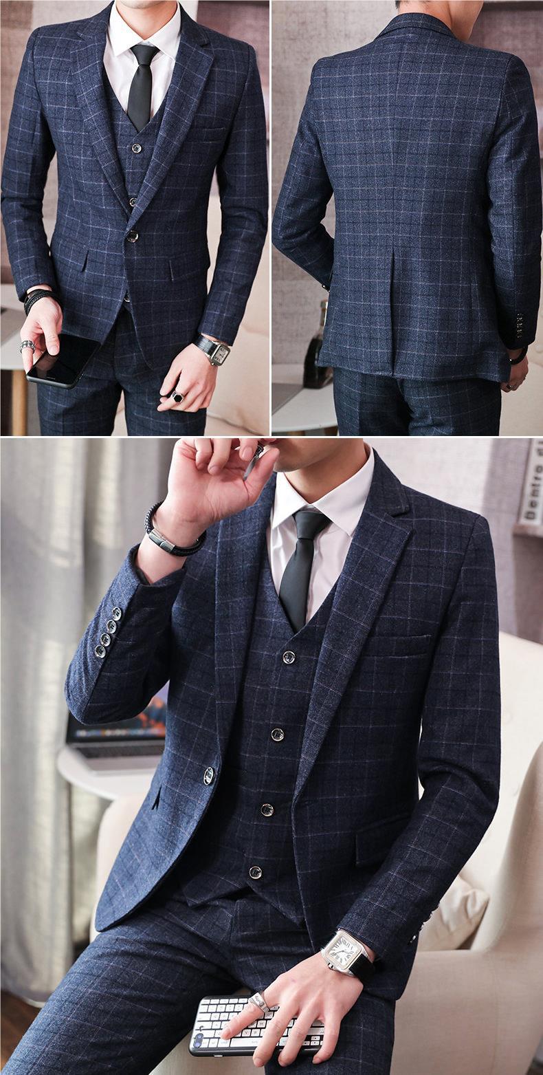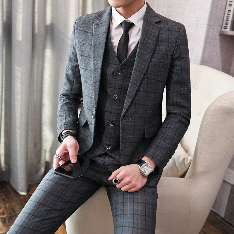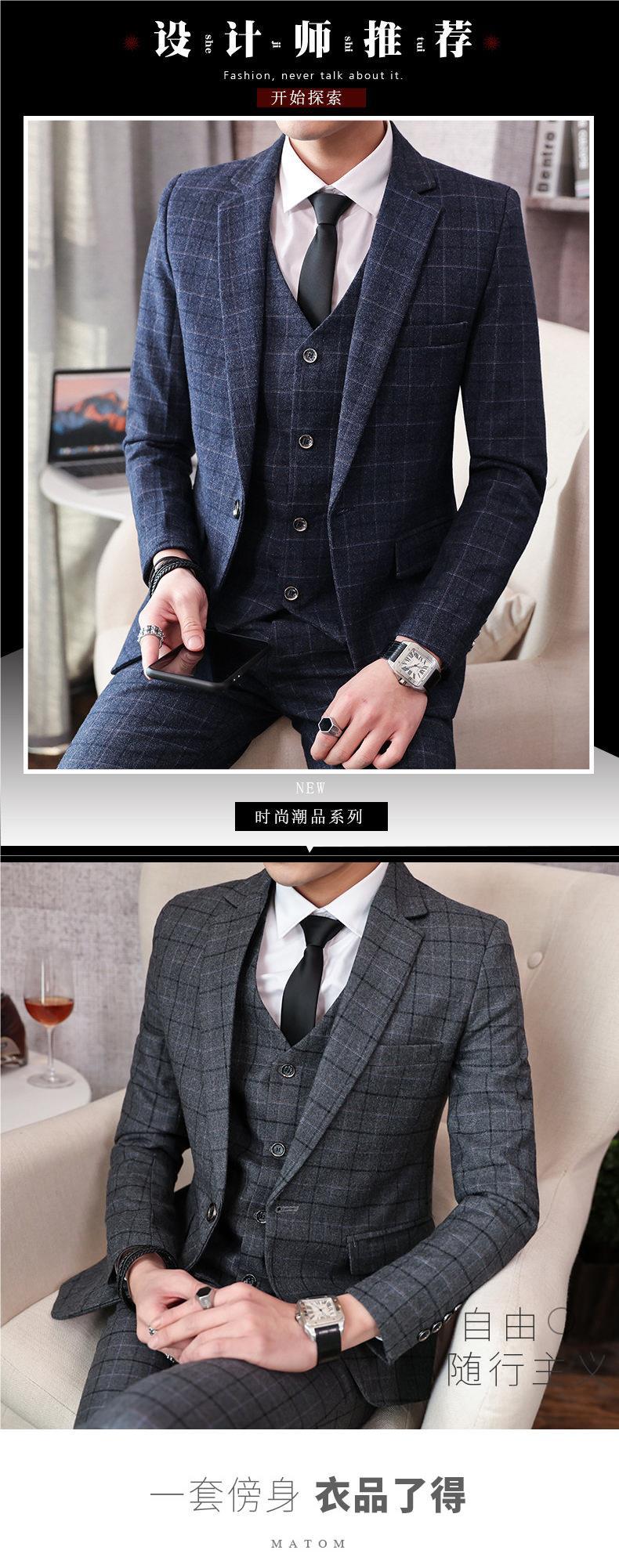 가을과 겨울 캐주얼 세트 재킷 남자 세트 하이 엔드 터피드 잘 생긴 한국 버전 유행 모직 작은 세트 재킷스토어 가기
