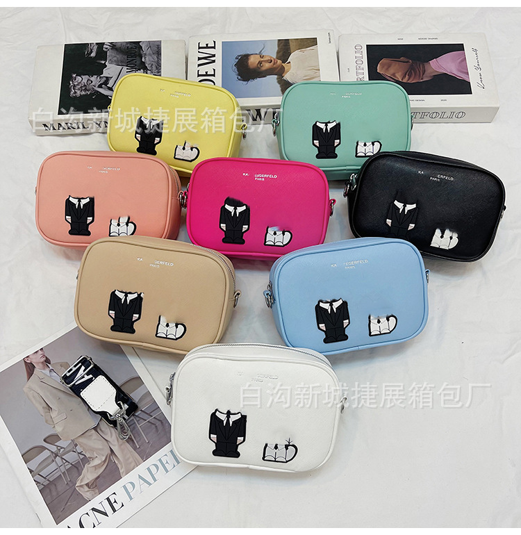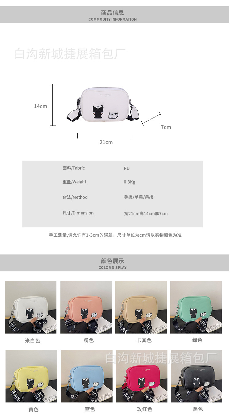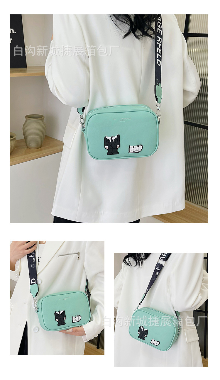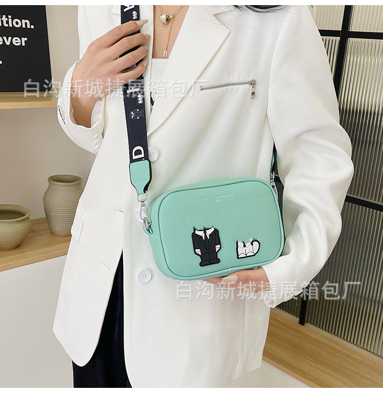 가벼운 고급 품질의 만화 카메라 가방 여성의 2024 국경 새로운 캔디 컬러 와이드 어깨 스트랩 크로스 바디 작은 사각형 가방
